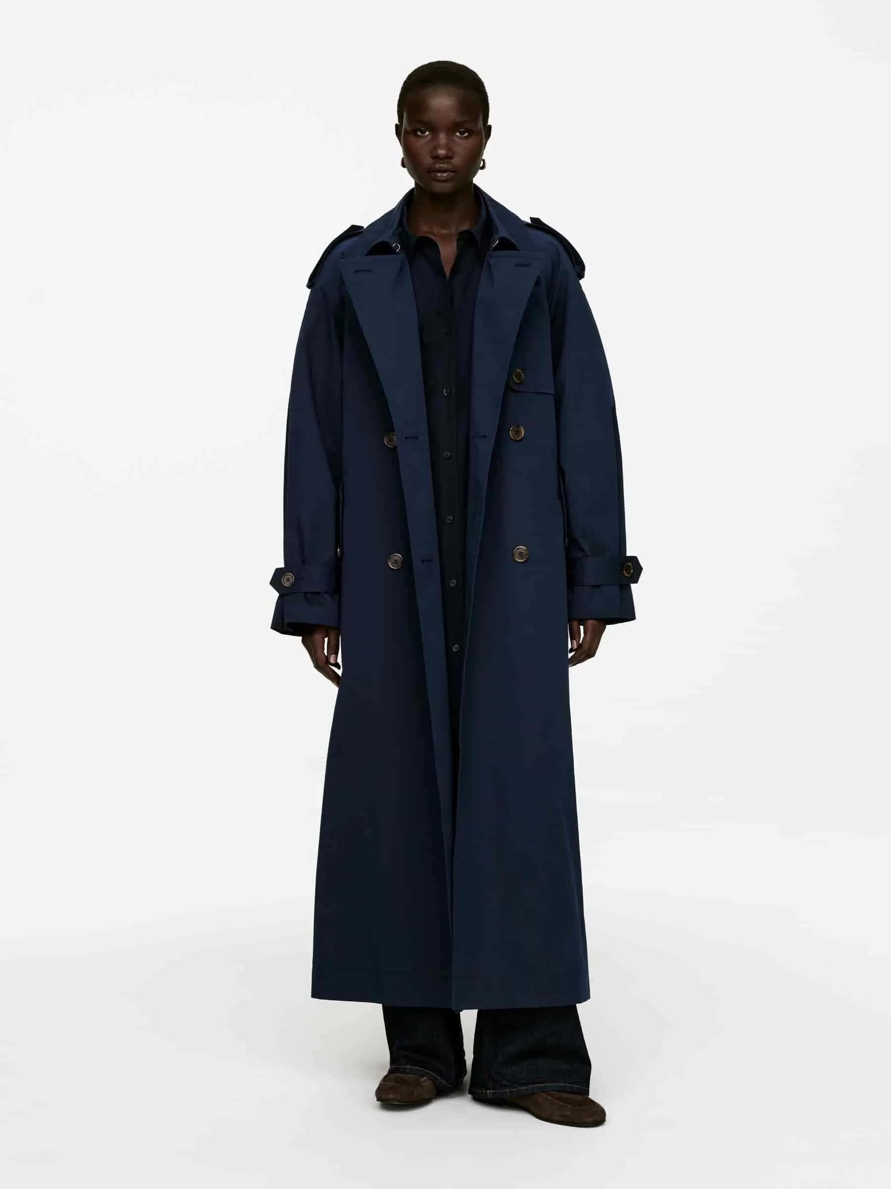 Klassischer Trenchcoat aus einer Baumwollmischung. Ein übergroßes Modell mit Gürtel mit Ösen und Futter an den Ärmeln. Diese Jacke ist Teil der ARKET 2-in-1 Series™, einem System aus funktionellen Außenschichten und isolierenden Innenschichten, die entweder als einzelne Kleidungsstücke oder ineinander befestigt getragen werden können.