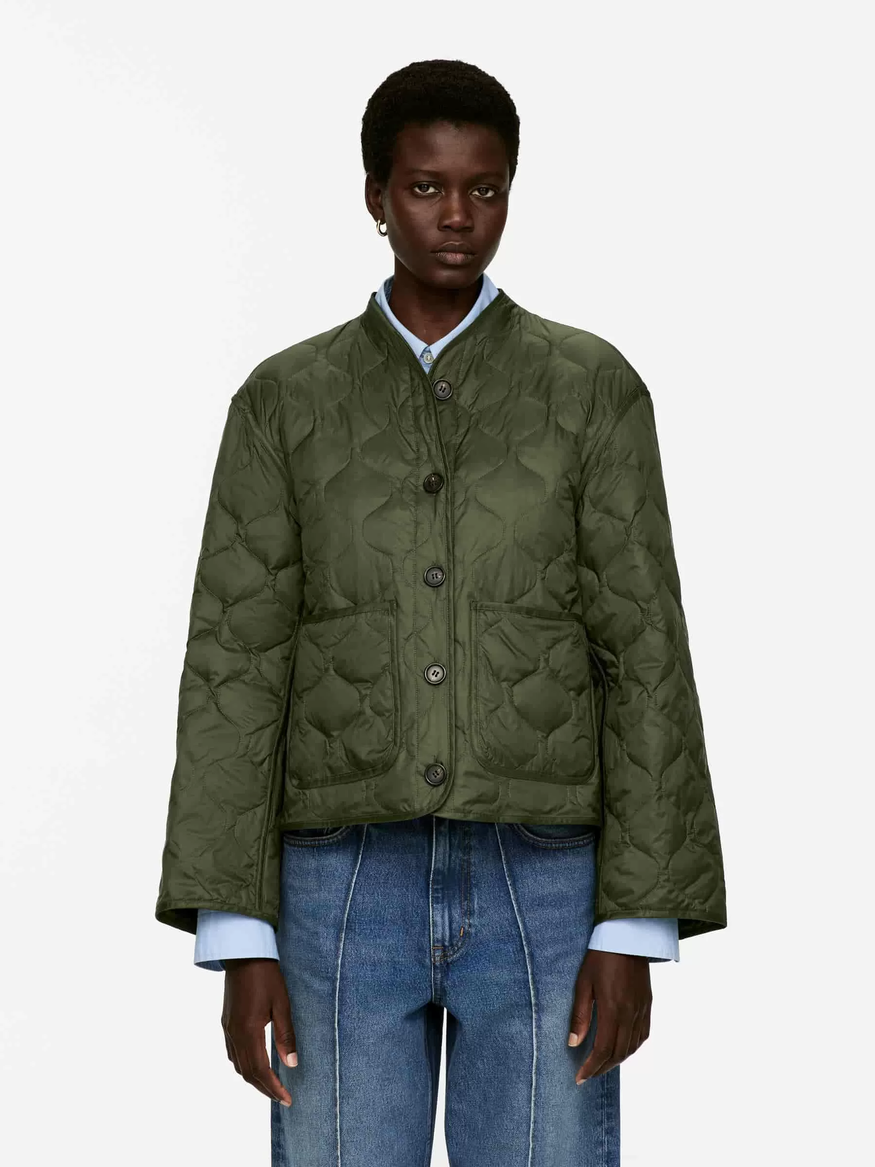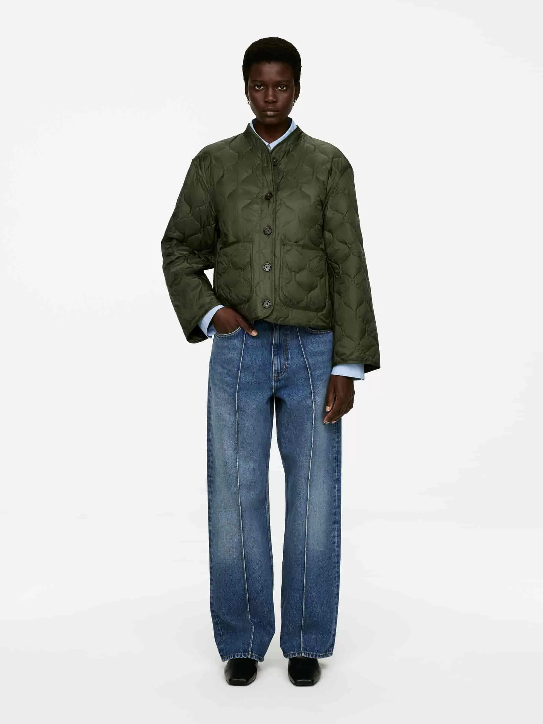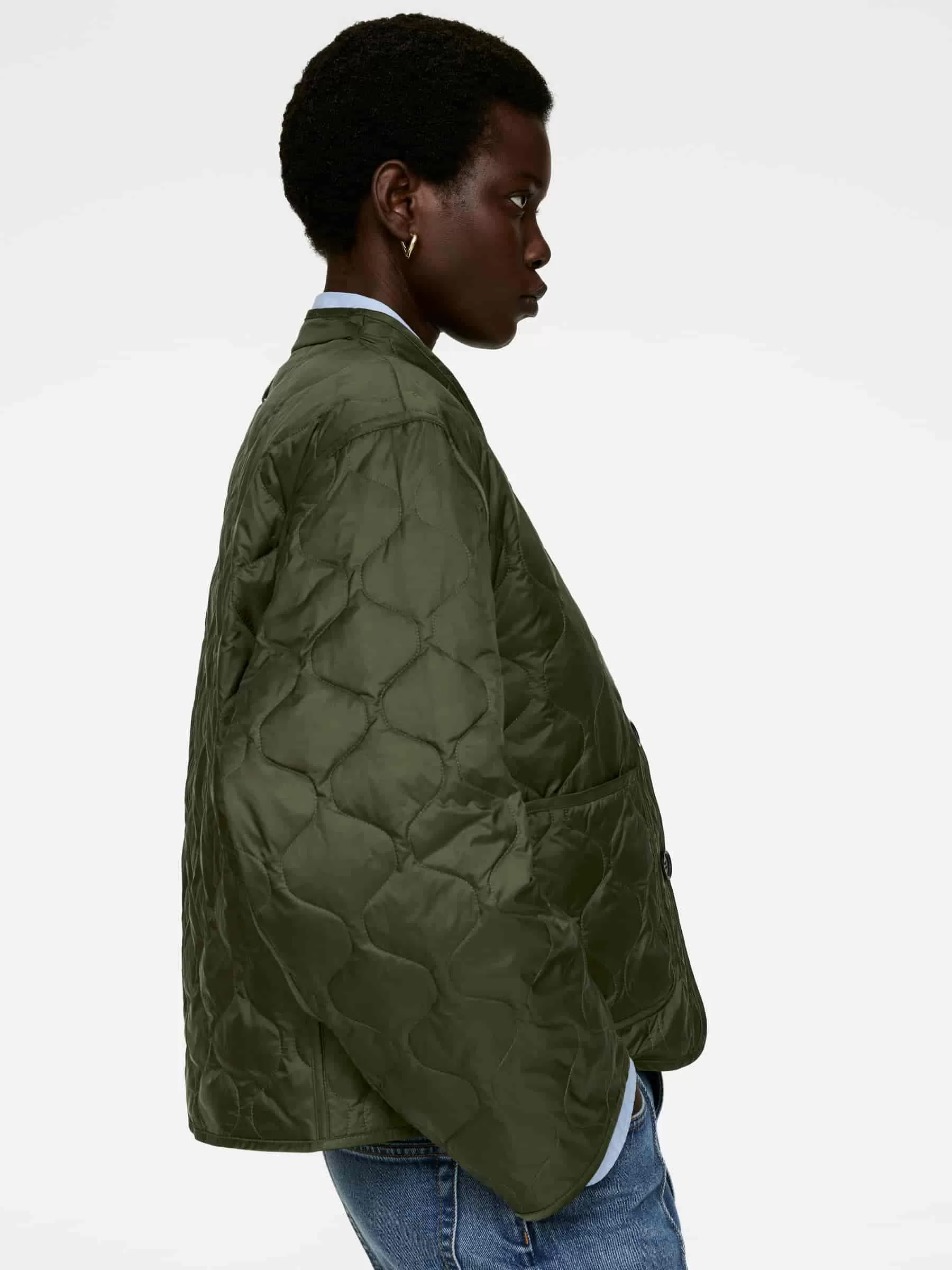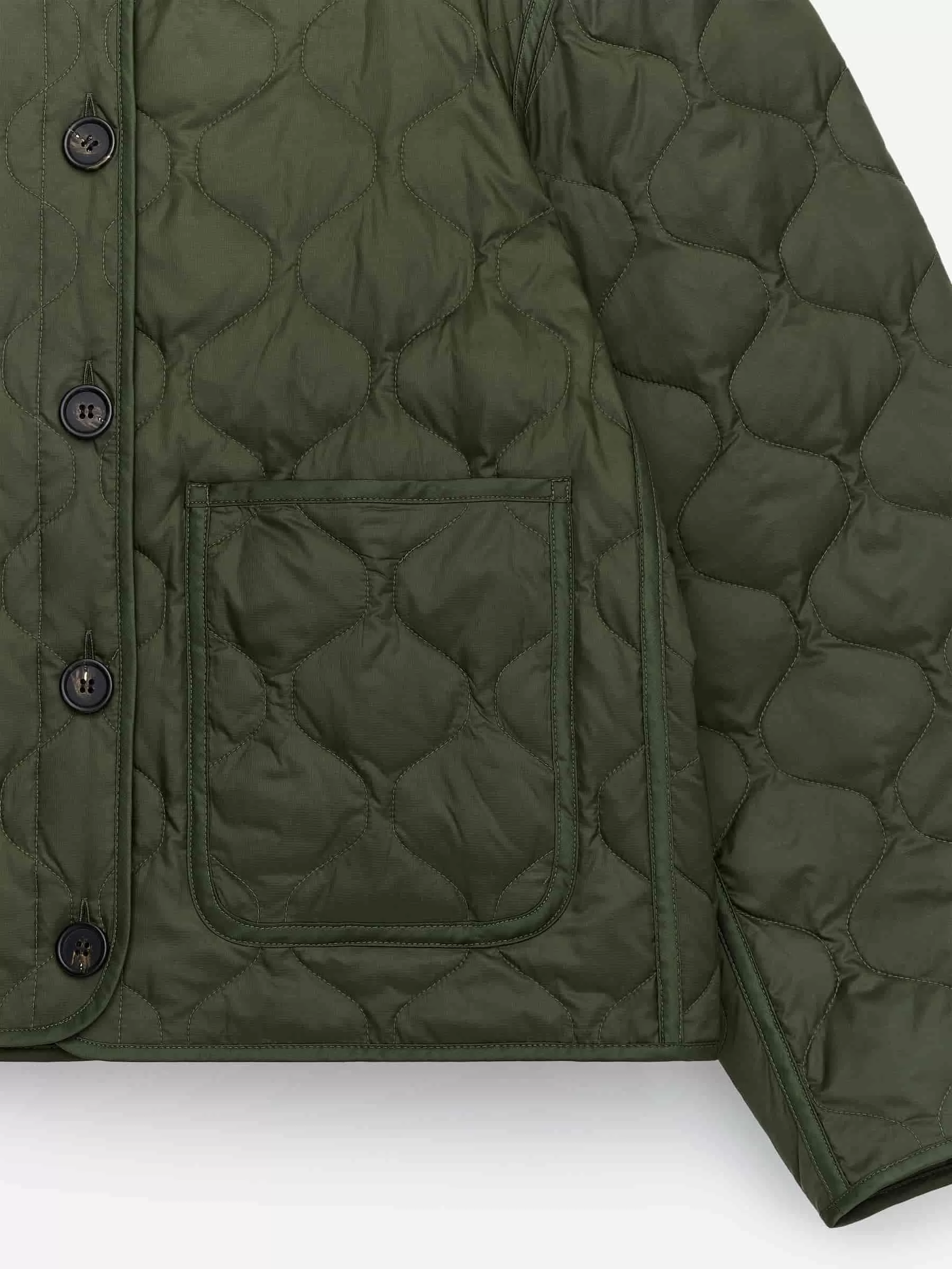 Gesteppte Innenjacke, gefüllt mit einer Mischung aus Daunen und Federn. Aufgesetzte Taschen vorne und Knopfverschluss. Teil der 2-in-1-Serie, einem modularen Oberbekleidungssystem, das Schalen und isolierende Innenfutter umfasst, die speziell dafür entwickelt wurden, zusammengesteckt zu werden und einen vollständig gepolsterten Mantel zu bilden. Die Upcycled Down-Produkte sind mit recycelten Daunen und Federn von Re:Down® gefüllt. Diese aus gebrauchten Textilien gesammelten Materialien werden bei hohen Temperaturen ohne den Einsatz von Chemikalien gewaschen und sterilisiert.