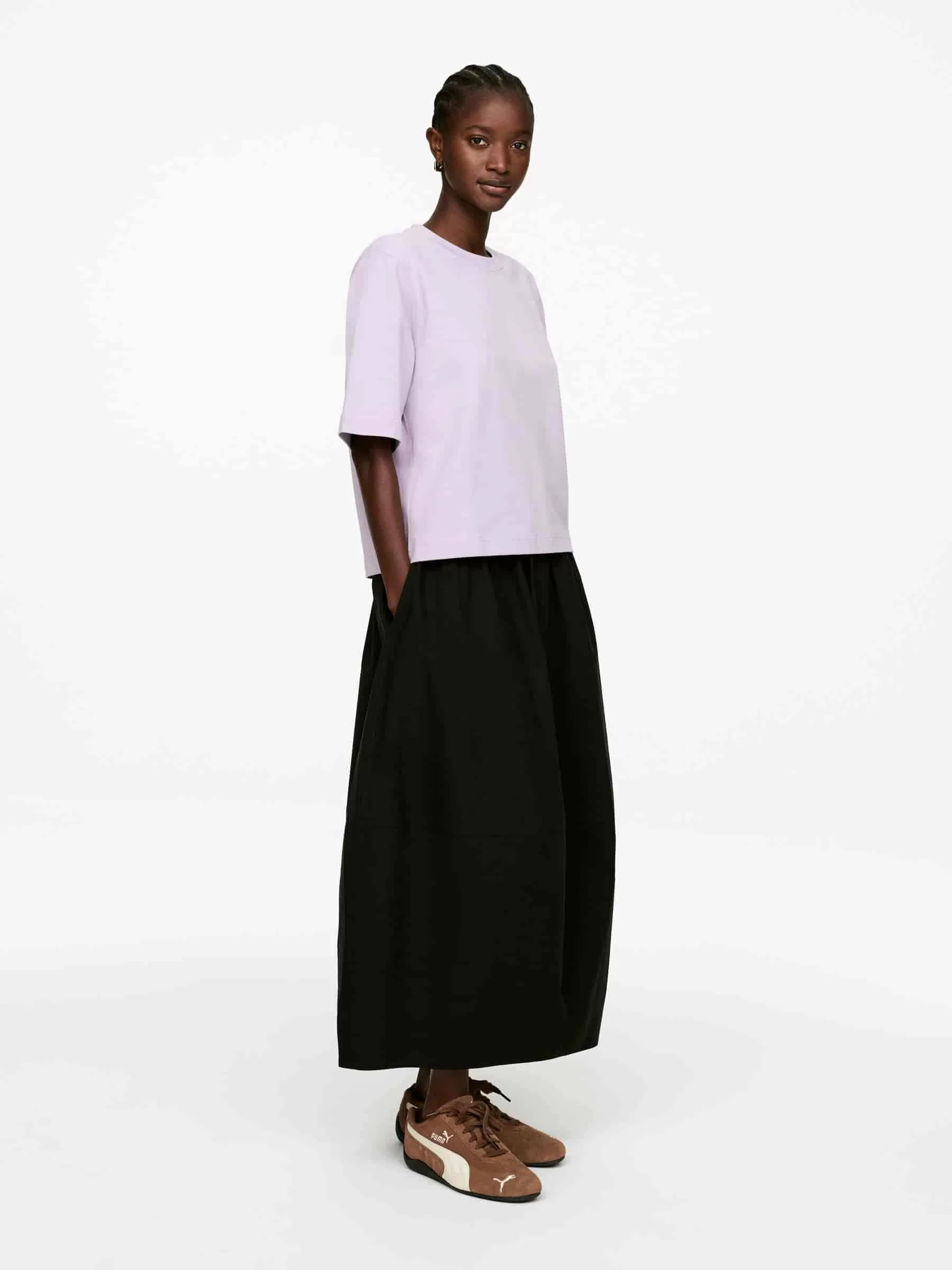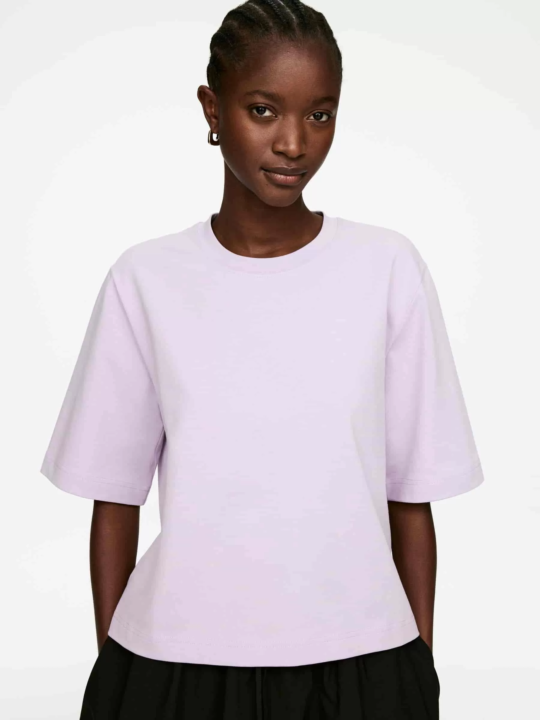T-Shirt aus robustem Baumwoll-Single-Jersey. Ein kurzärmliges Modell mit kastenförmiger Passform und leicht verkürztem Körper.