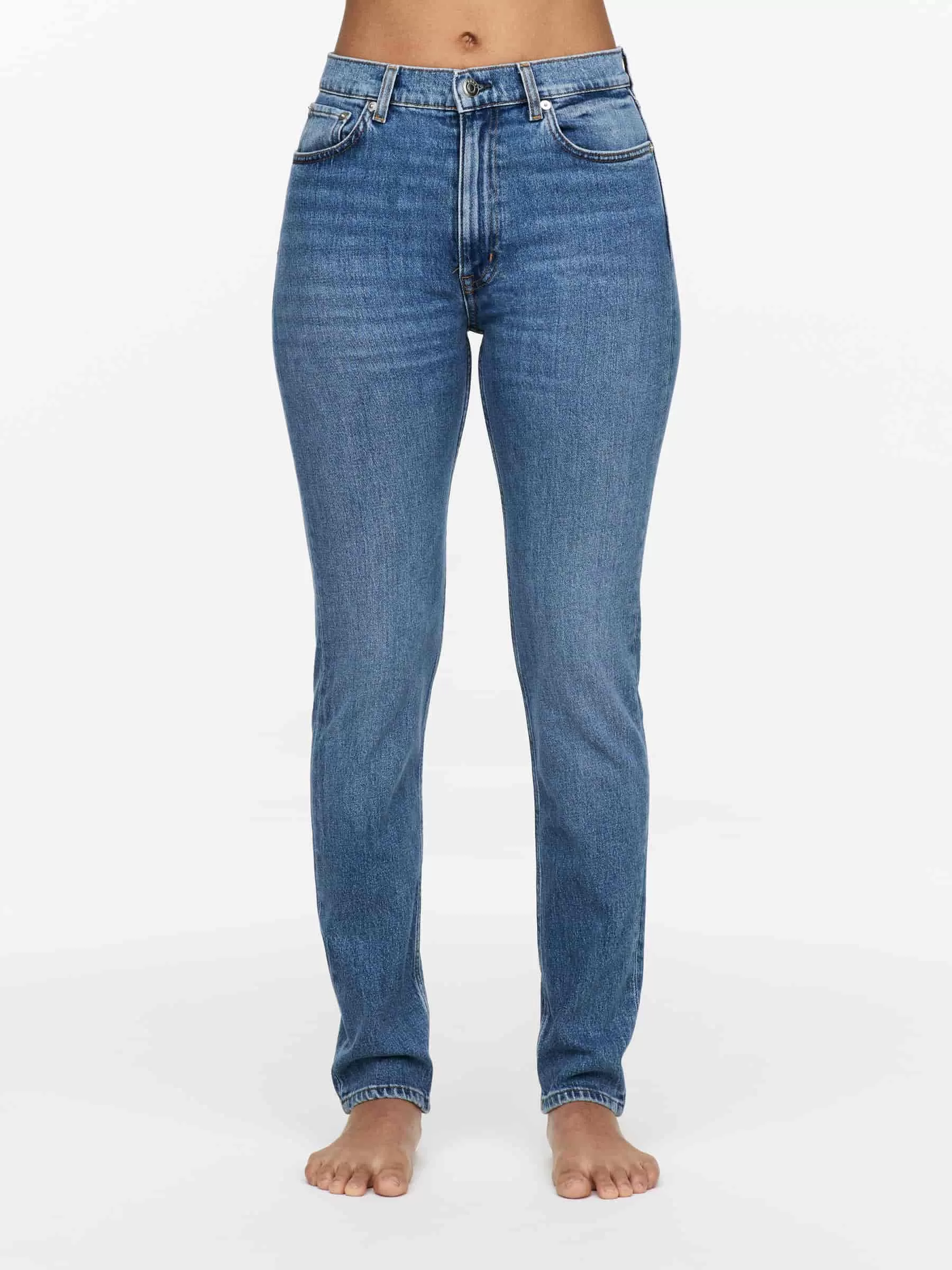 AZALEA ist aus Stretch-Denim gefertigt und hat eine hohe Taille, eine schmale Passform und schmale Beine.