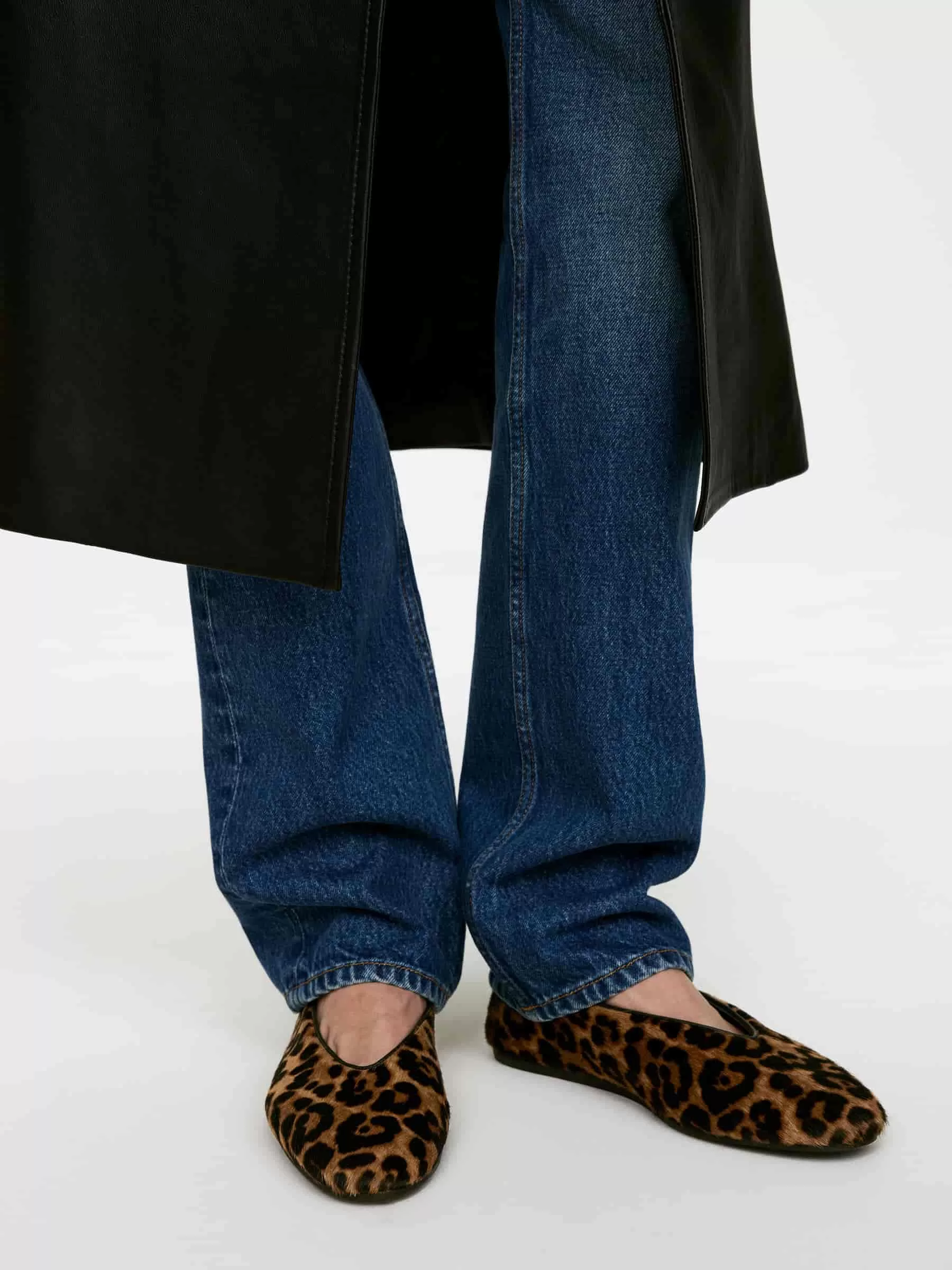 Lederballerinas mit haariger Textur. Mit V-förmiger Oberlinie und abgerundeter Spitze. Gummisohle.