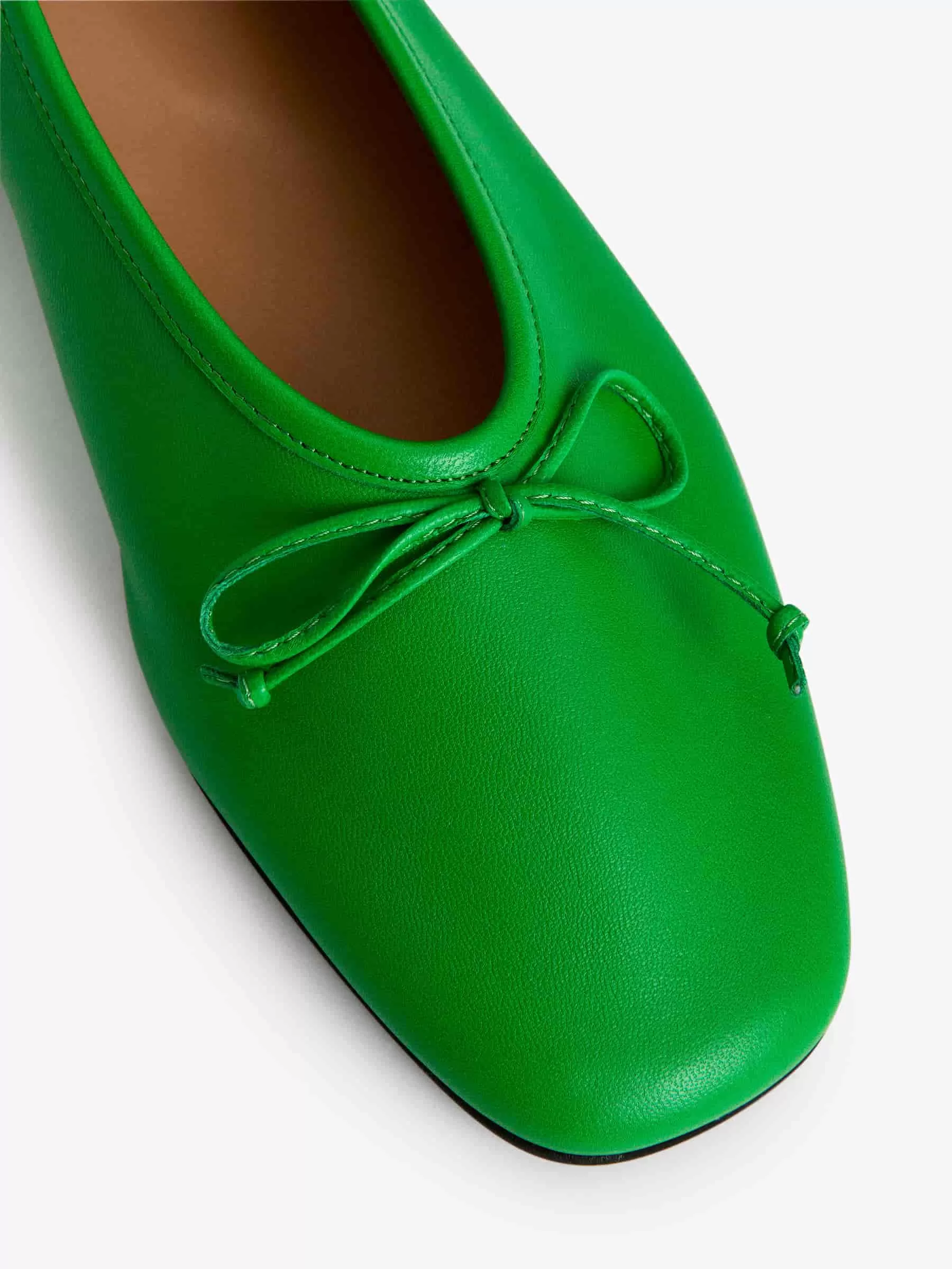Ballerina aus weichem Leder, das einem metallfreien Gerbungsprozess unterzogen wurde. Mit hohem Oberteil und Lederschleifendetail. Lederfutter und Ledersohle.