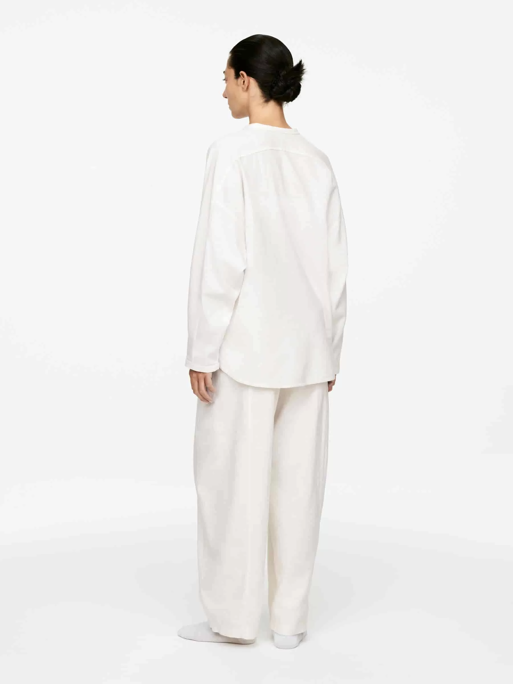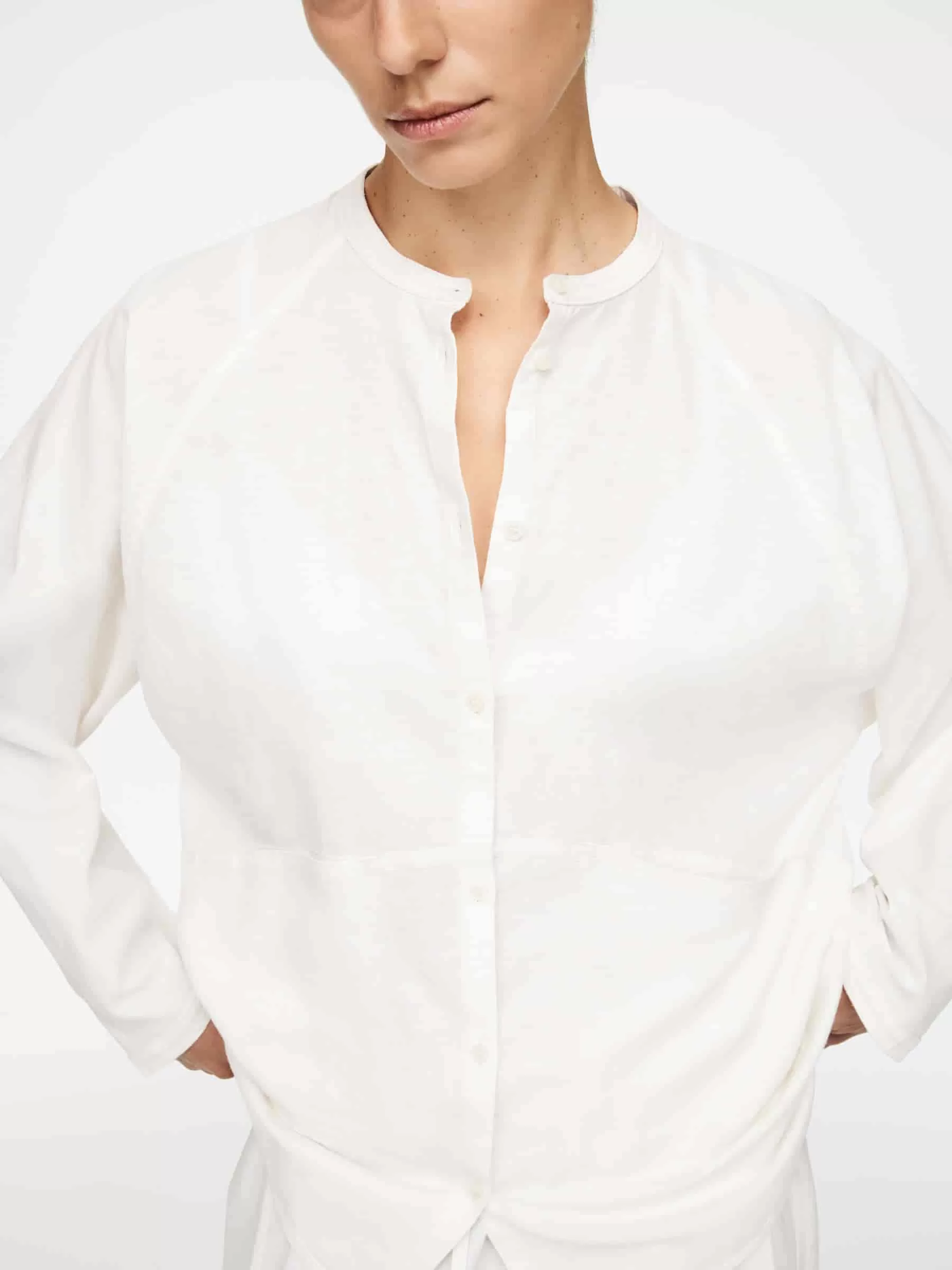 Lounge-Hemd aus einer weichen Baumwoll-Leinen-Mischung mit verwaschener Optik. Detailliert mit Taschen und Nähten mit Faltendetails vorne und hinten.