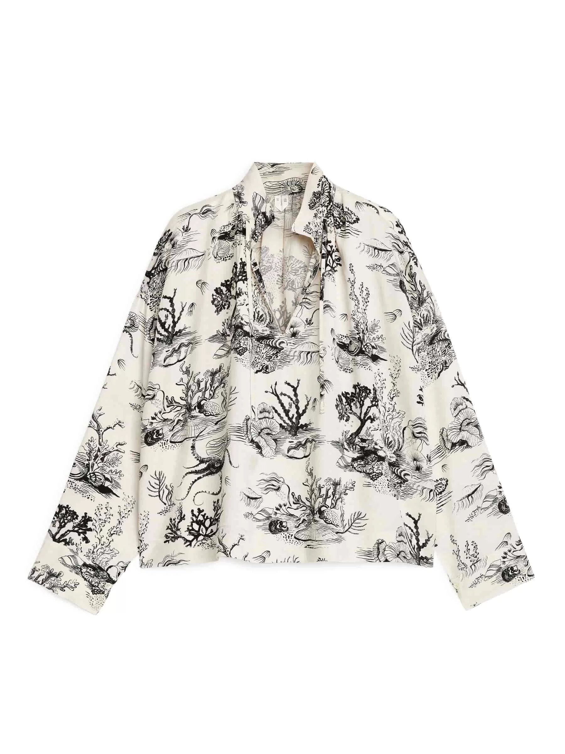 ARKE Damen Bedruckte Bluse mit Kordelzug Gebrochenes Weiß/Schwarz
