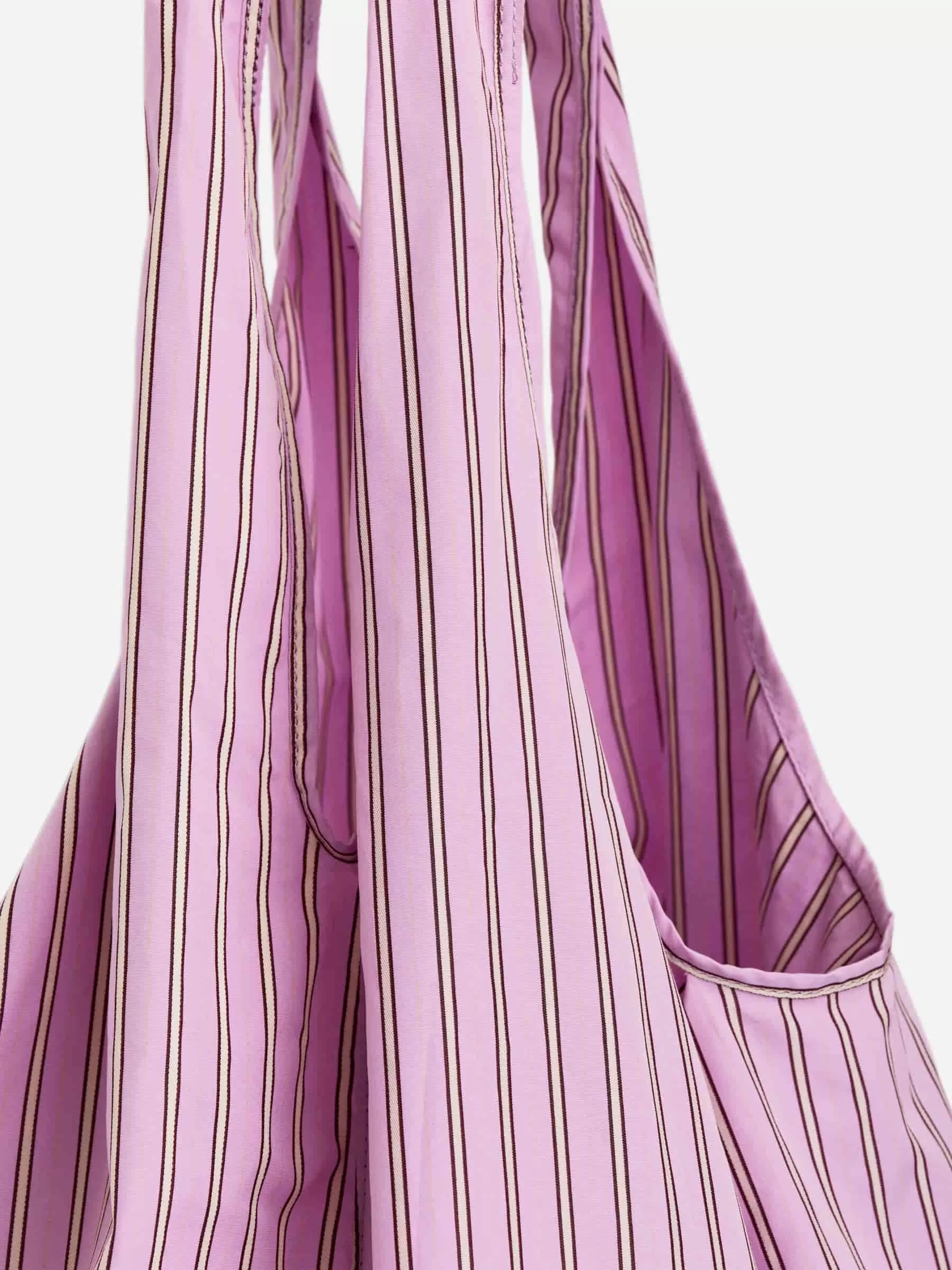 Abgerundete Tragetasche aus Nylon mit einer Innentasche zum Verstauen der Tasche. Körpermaße: Breite 54 cm, Höhe 31 cm. Grifftiefe 17 cm.