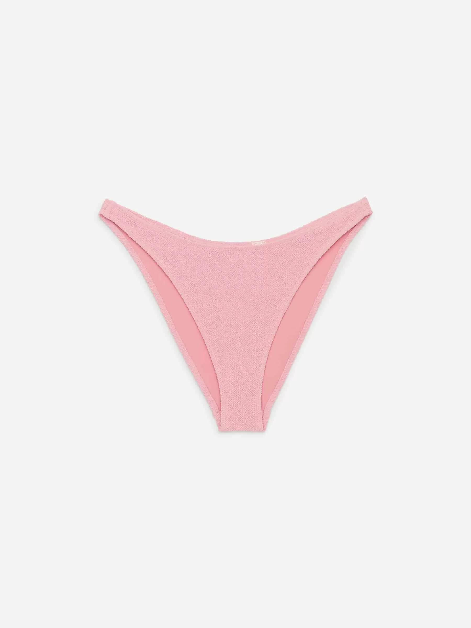 Bikini-Slip mit strukturierter, dehnbarer Textur. Dies ist ein von den 90ern inspiriertes Modell mit mittlerer Taille und hoher Beinöffnung. Vorne gefüttert.