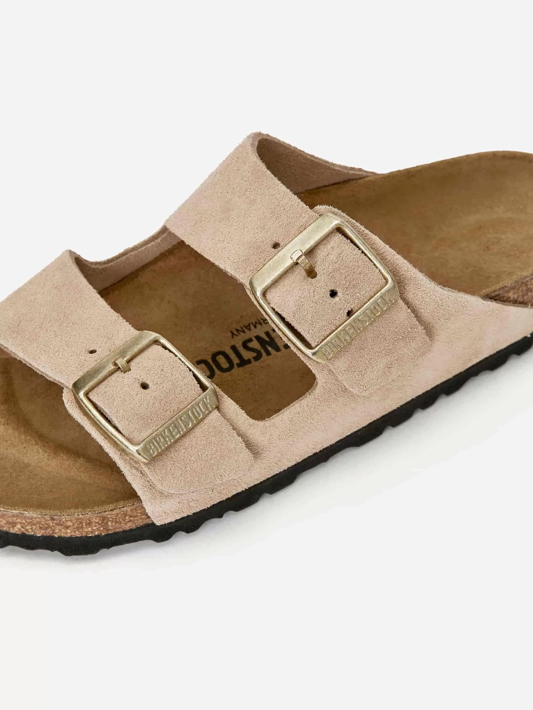 Der Birkenstock Arizona ist mit seinem zeitlosen Design ein echter Klassiker. Mit einem anatomisch geformten Fußbett aus Kork-Latex und einem Obermaterial aus hochwertigem Wildleder bieten die Sandalen einen natürlichen Tragekomfort. Die Doppelgurte sind mit Metallschnallen verstellbar. Futter aus Wildleder. Außensohle aus EVA.