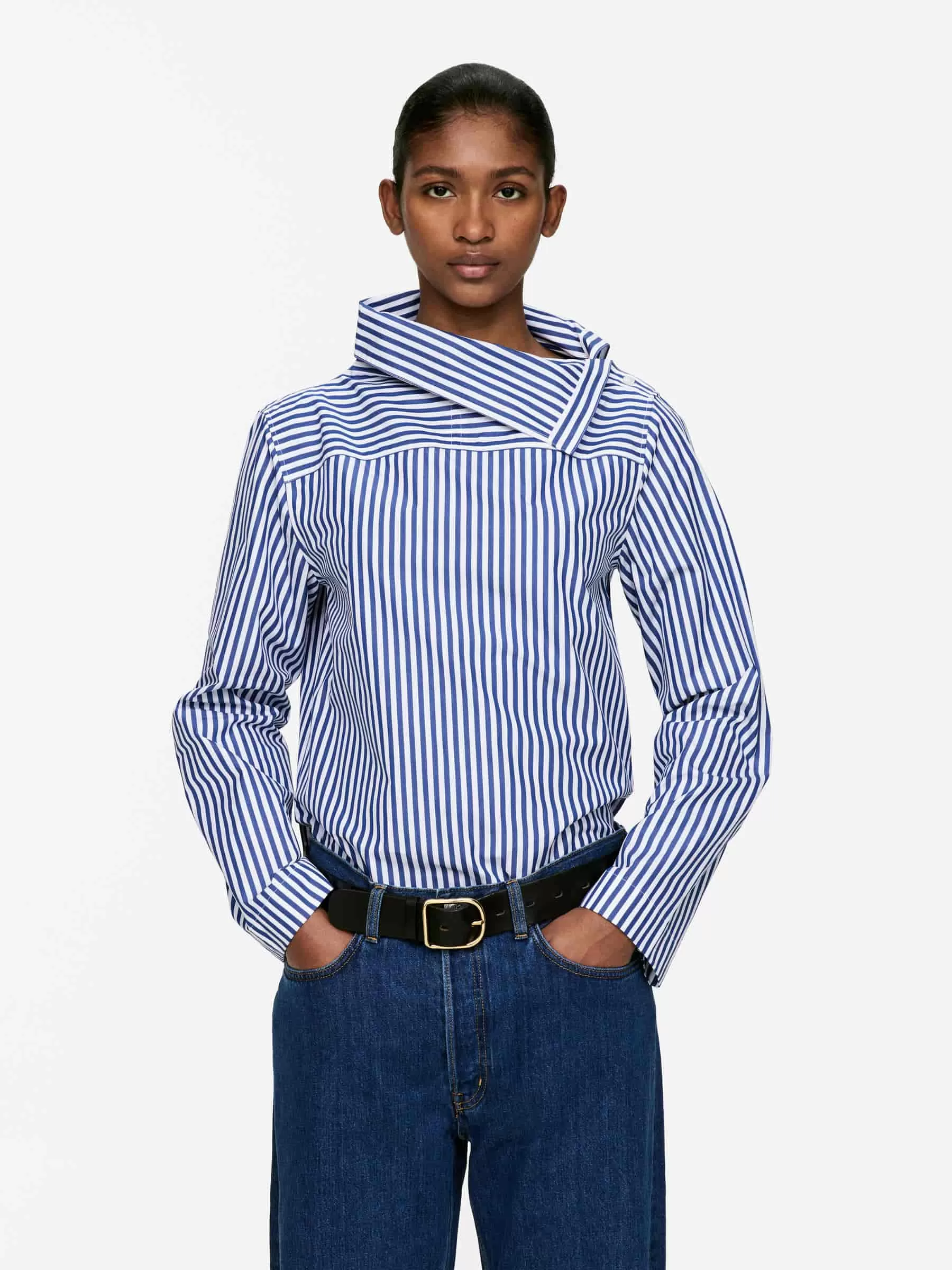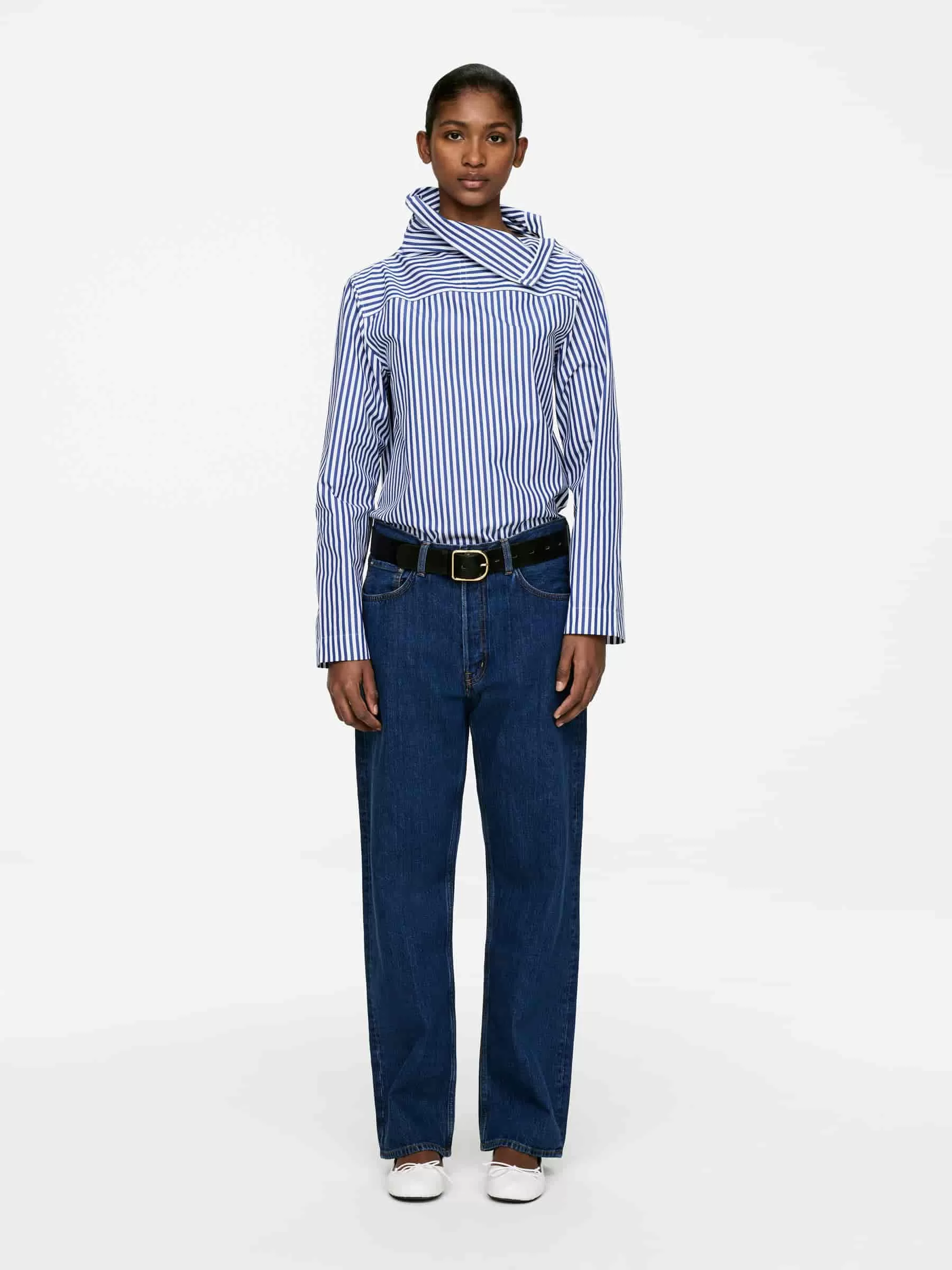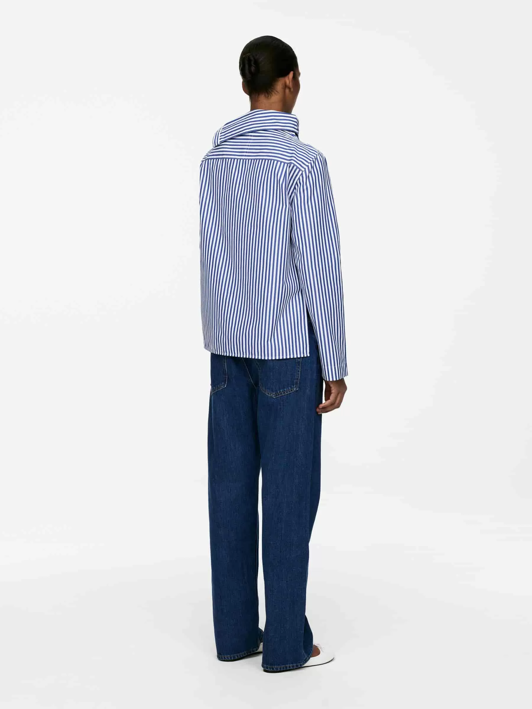 Langärmlige Baumwollbluse mit umgeschlagenem Kragen und Knopfverschluss. Normale Passform.