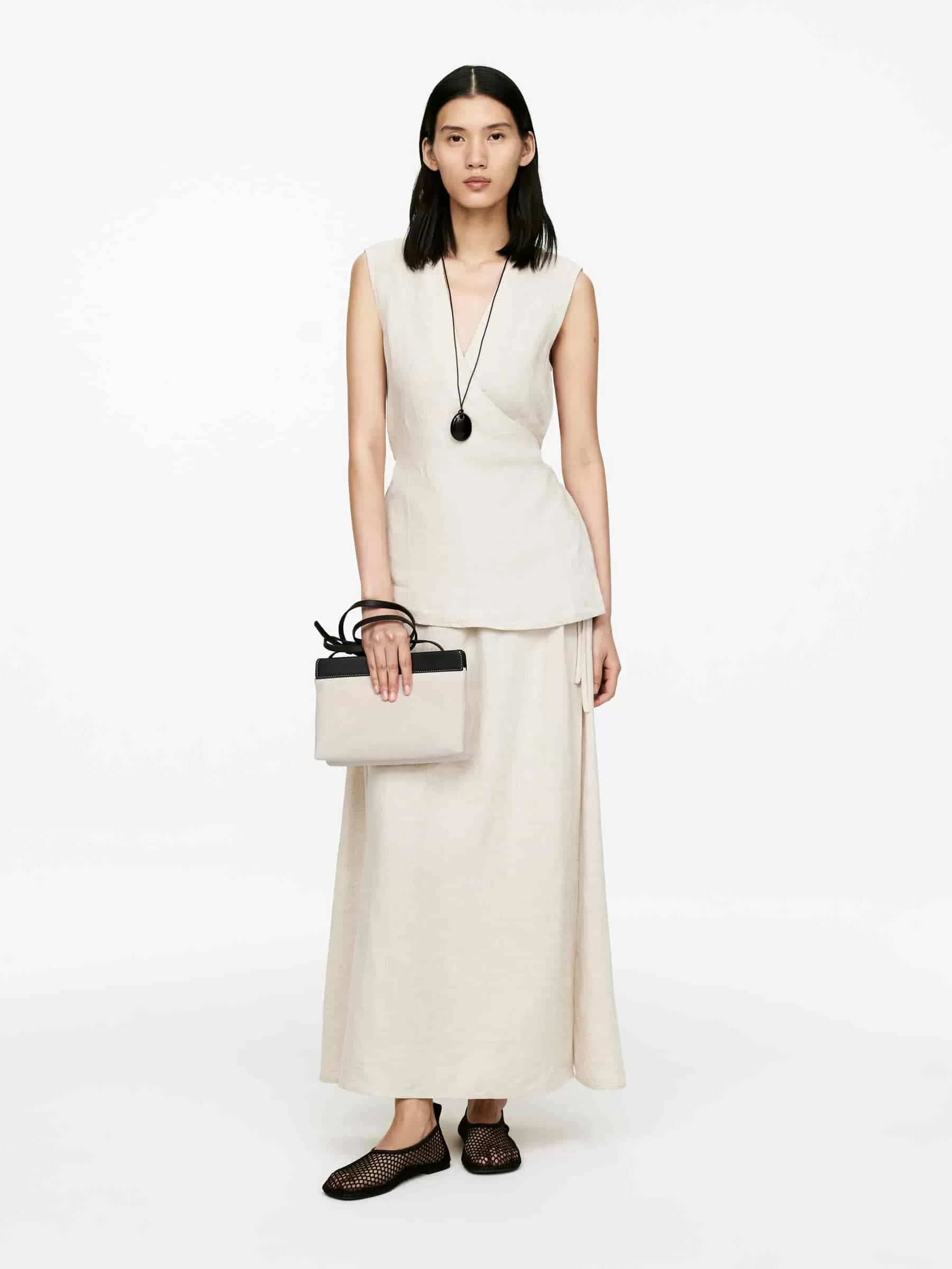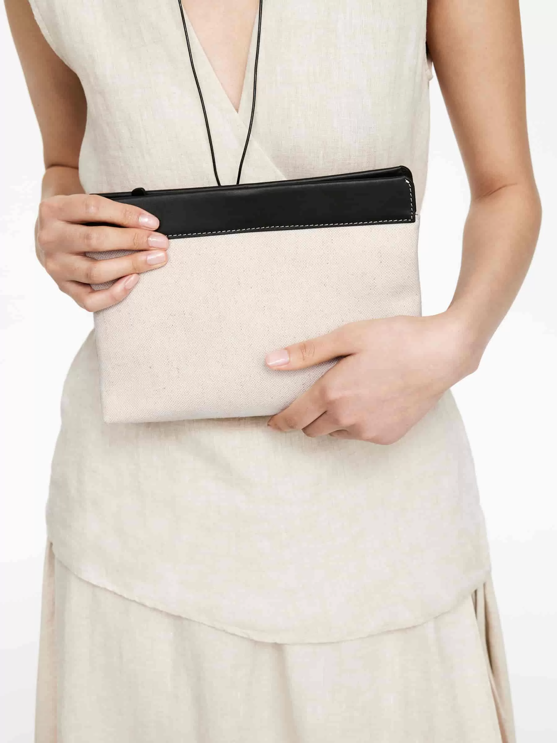 ARKE Damen Canvas-Ledertasche Beige/Schwarz