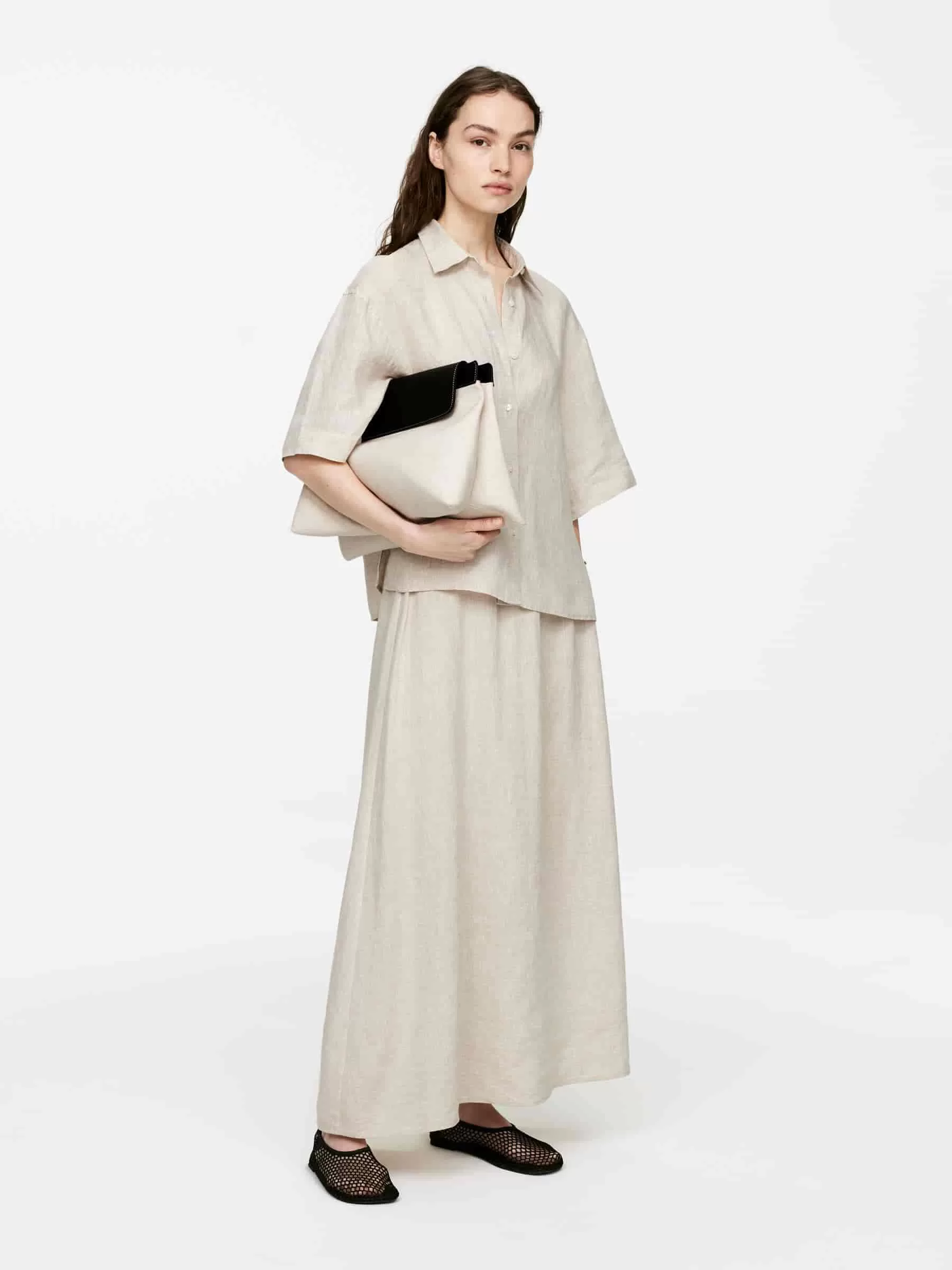 ARKE Damen Canvas-Ledertasche Hellbeige