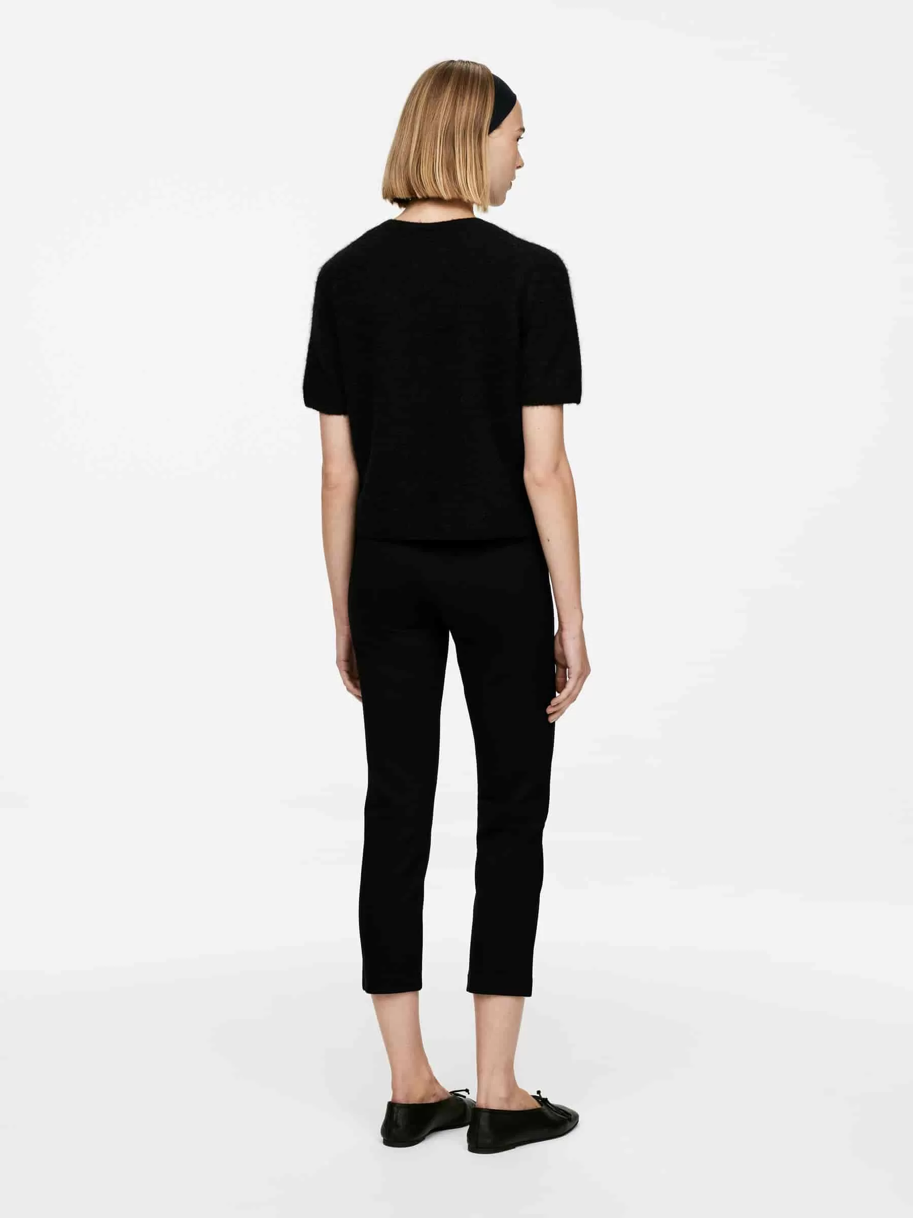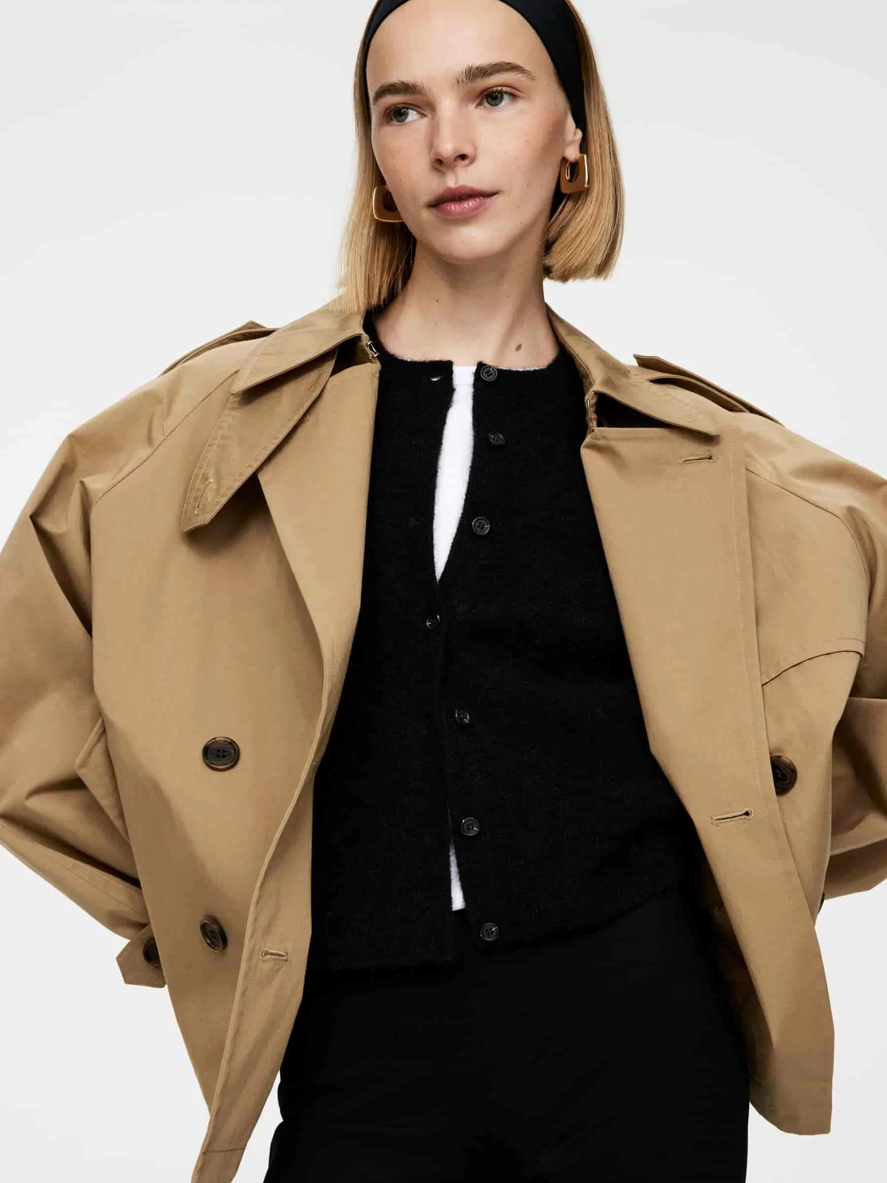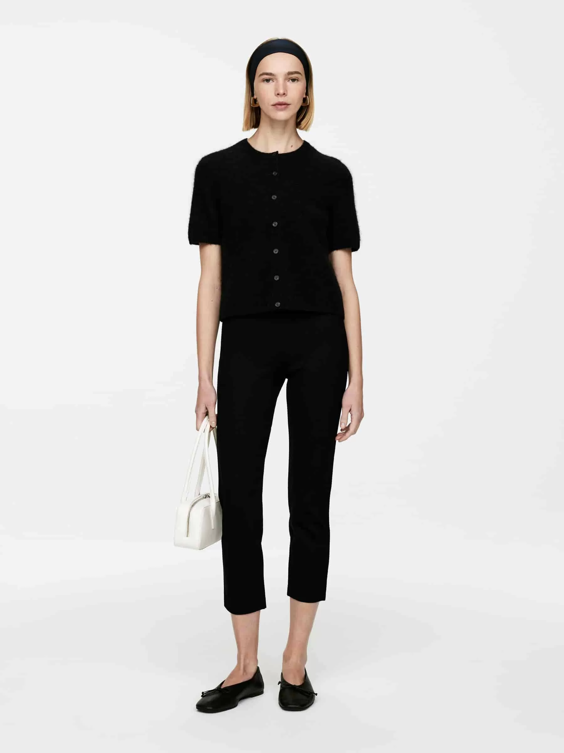 Kurzärmeliger Cardigan, gestrickt aus einer Woll-Alpaka-Mischung. Mit Knopfverschluss und normaler Passform. Dieser Stil enthält 31 % RAS-Alpaka und 31 % RWS-Wolle (TE-00047206). Produkte, die nach dem Responsible Wool Standard (RWS) und dem Responsible Alpaca Standard (RAS) zertifiziert sind, enthalten Wolle und Alpakafasern von Farmen, die unabhängig nach Tierschutz- und Landmanagementanforderungen zertifiziert sind.