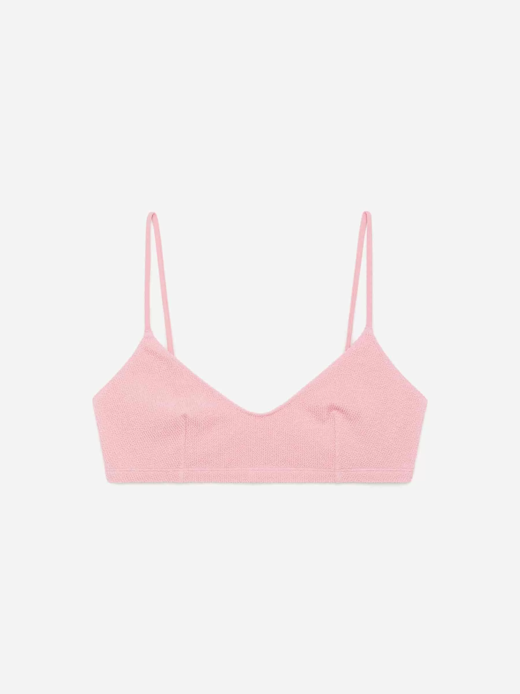 Bikinioberteil mit gekräuselter Oberfläche aus dehnbarem Jerseystoff. Ein weicher, ungepolsterter Stil mit schmalen, verstellbaren Trägern. Genähte Abnäher an den Körbchen sorgen für eine gute Form. Leichte Unterstützung. Vorne gefüttert.