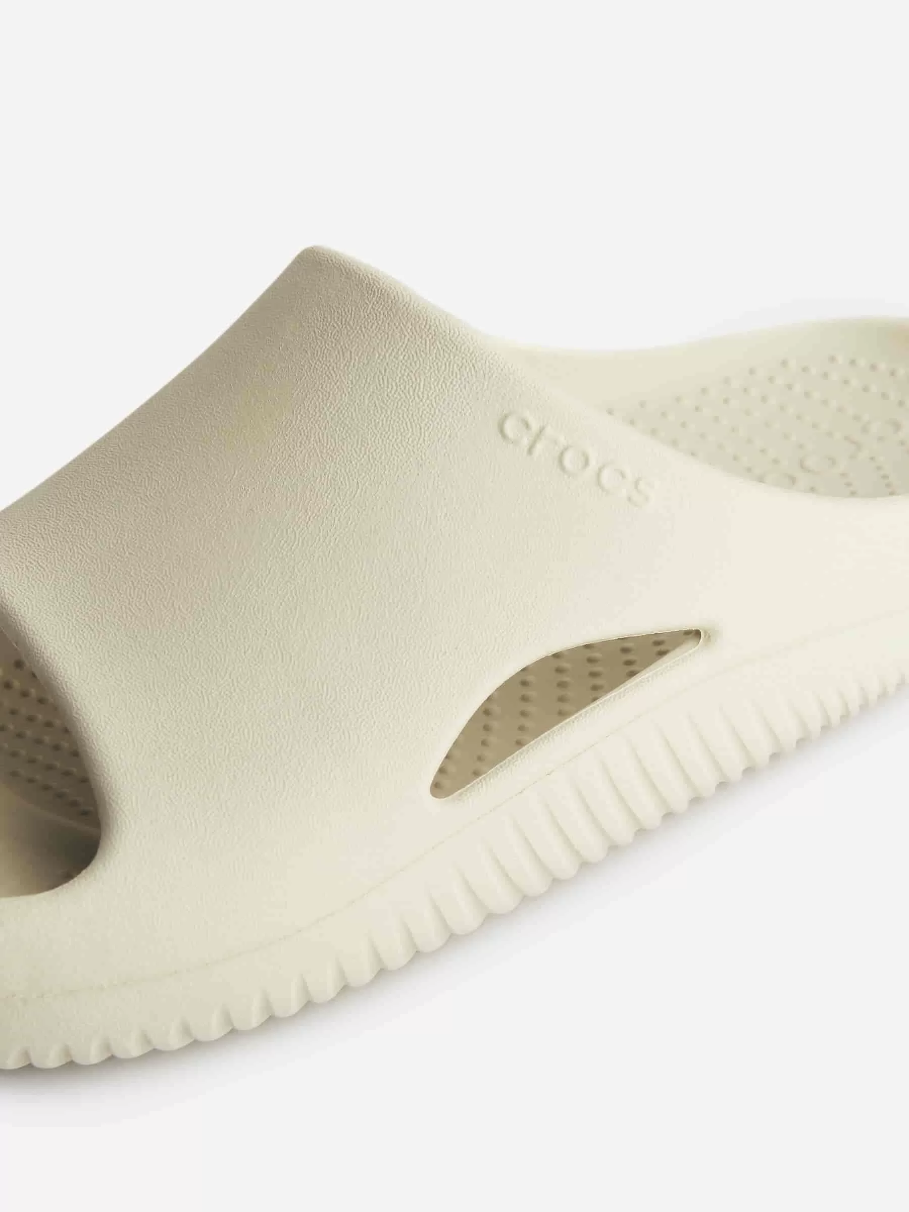 Der Mellow Recovery Slide von Crocs verfügt über weichen, einsinkenden LiteRide™-Schaum, tiefe, gewölbte Fußbetten und obere Fenster für erhöhte Atmungsaktivität. Geräumige Passform, wir empfehlen, die Größe kleiner zu wählen.