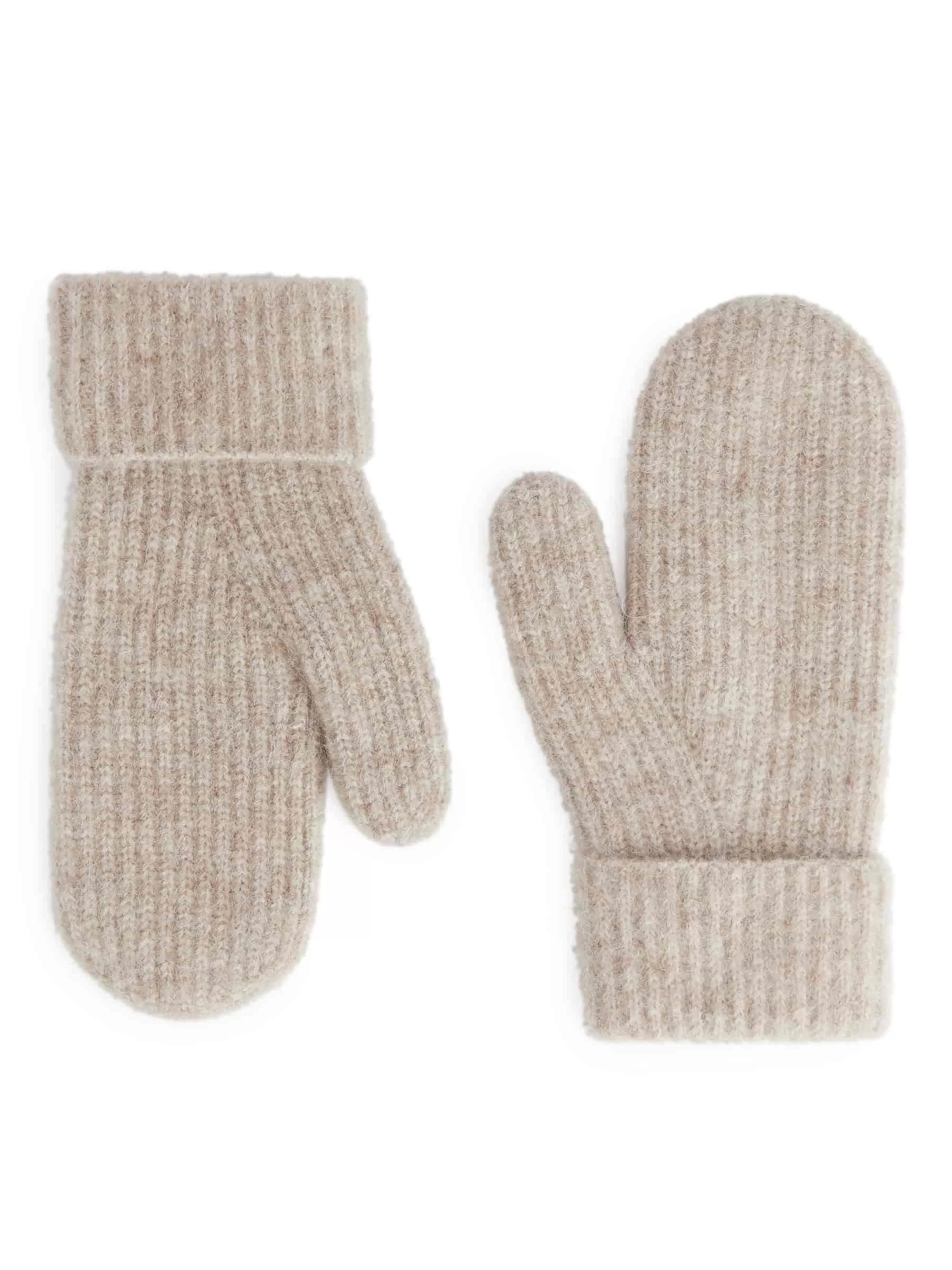 Fäustlinge in haariger Qualität, gestrickt aus einer Mischung aus Alpaka und Wolle. Gefaltete Manschetten. Dieser Stil enthält 28 % RAS-Alpaka und 30 % RWS-Wolle (TE-00047206). Produkte, die nach dem Responsible Wool Standard (RWS) und dem Responsible Alpaca Standard (RAS) zertifiziert sind, enthalten Wolle und Alpakafasern von Farmen, die unabhängig nach Tierschutz- und Landmanagementanforderungen zertifiziert sind.