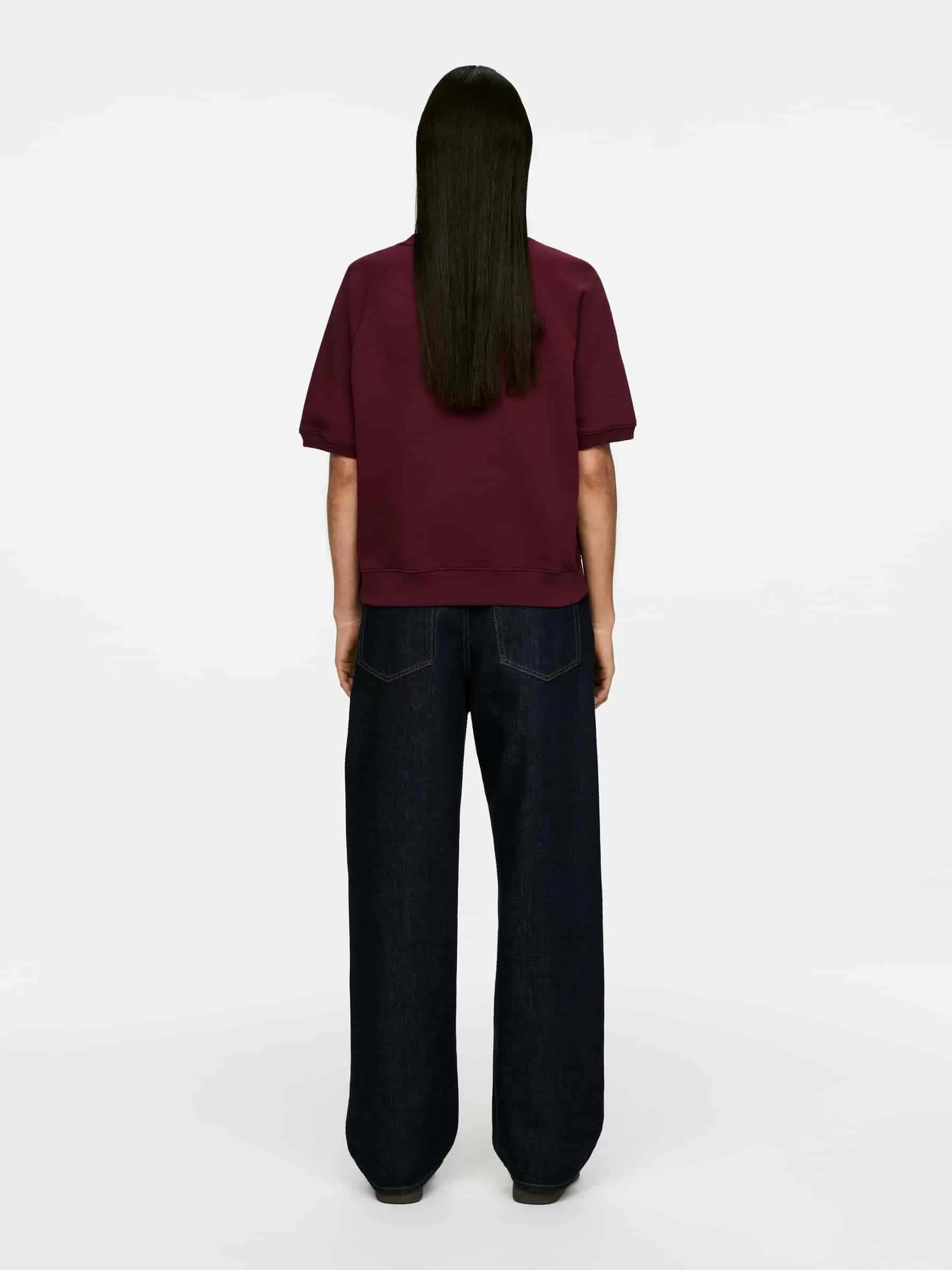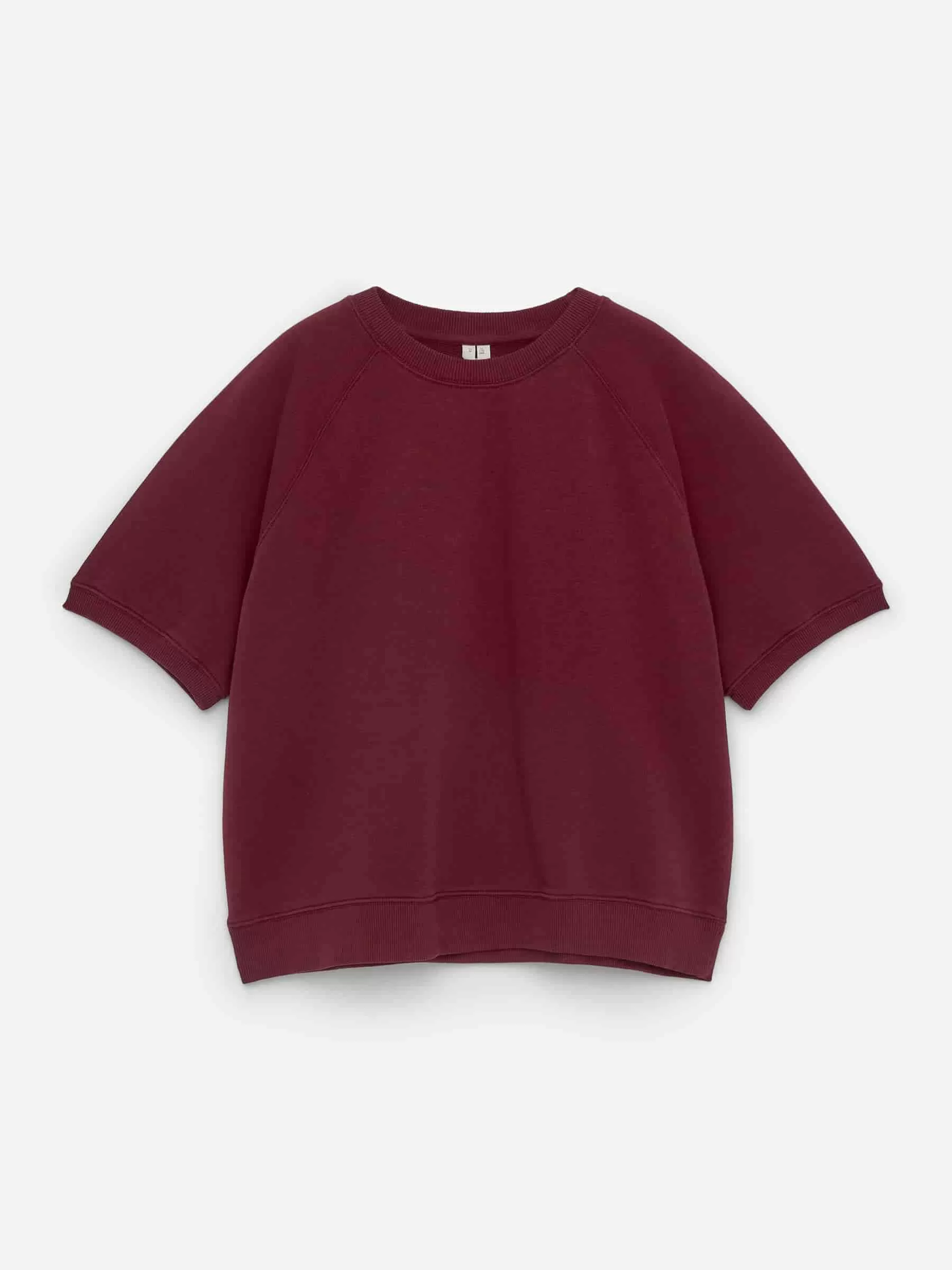 Kurzärmeliges Sweatshirt aus Baumwolle mit einer French-Terry-Unterseite für feuchtigkeitsableitende Eigenschaften. Ein Rundhalsausschnitt mit Raglanärmeln und Rippstrickbesätzen. Normale Passform.