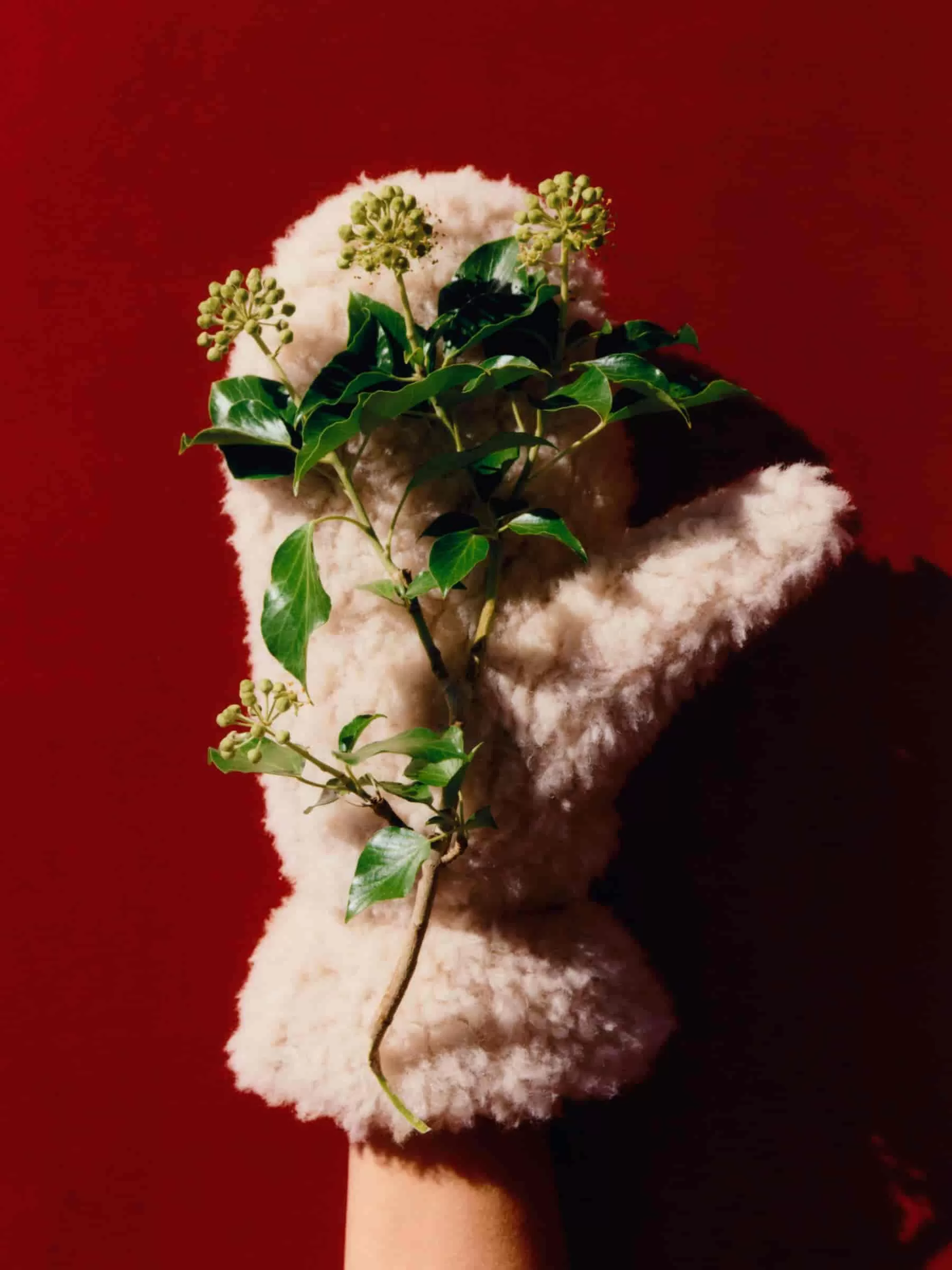 Gepolsterte Fäustlinge, gestrickt aus einem wärmenden Wollmischflorstoff. Gummizüge an den Bündchen.