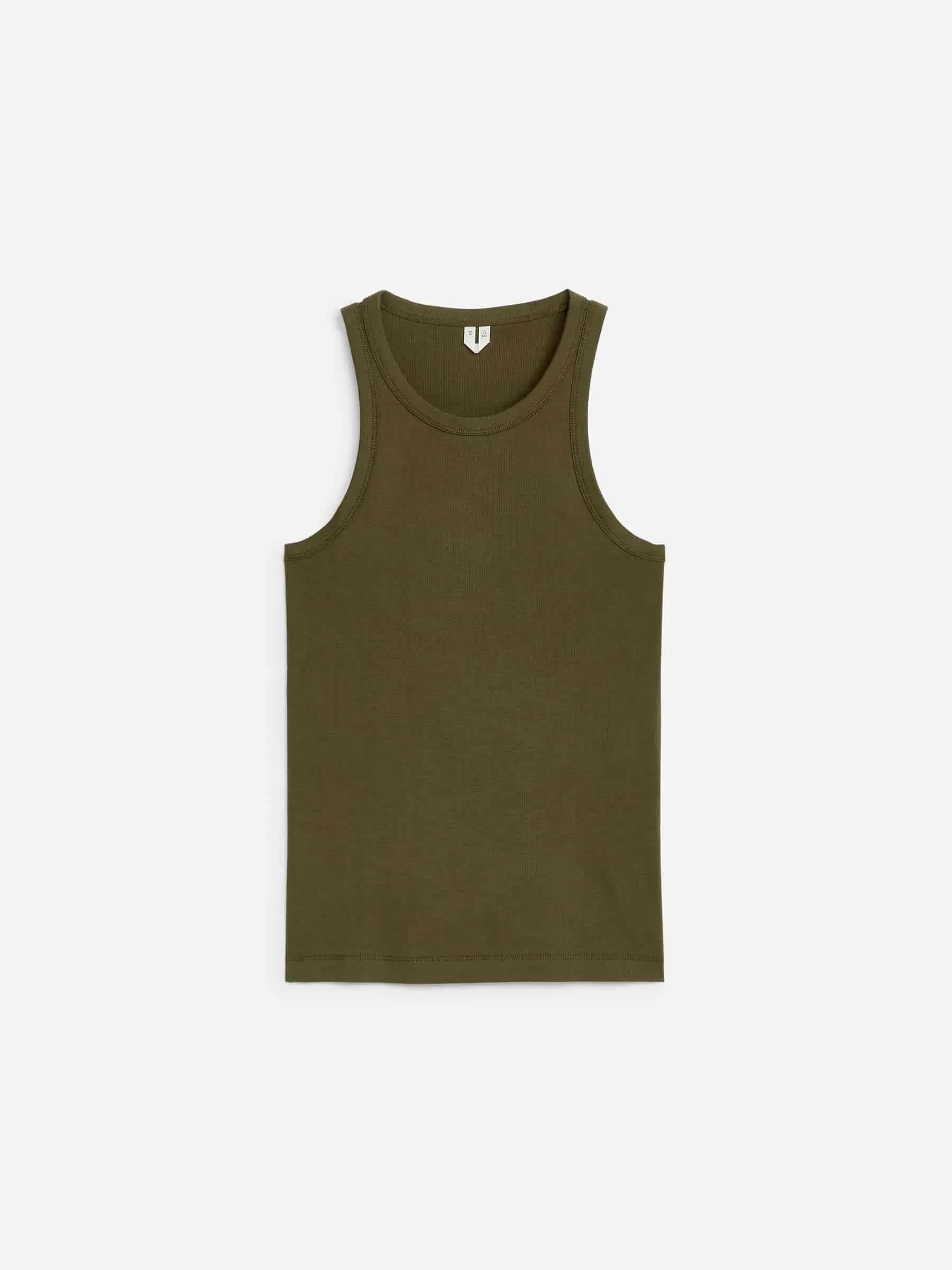 ARKE Damen Geripptes Racer-Tanktop Khakigrün