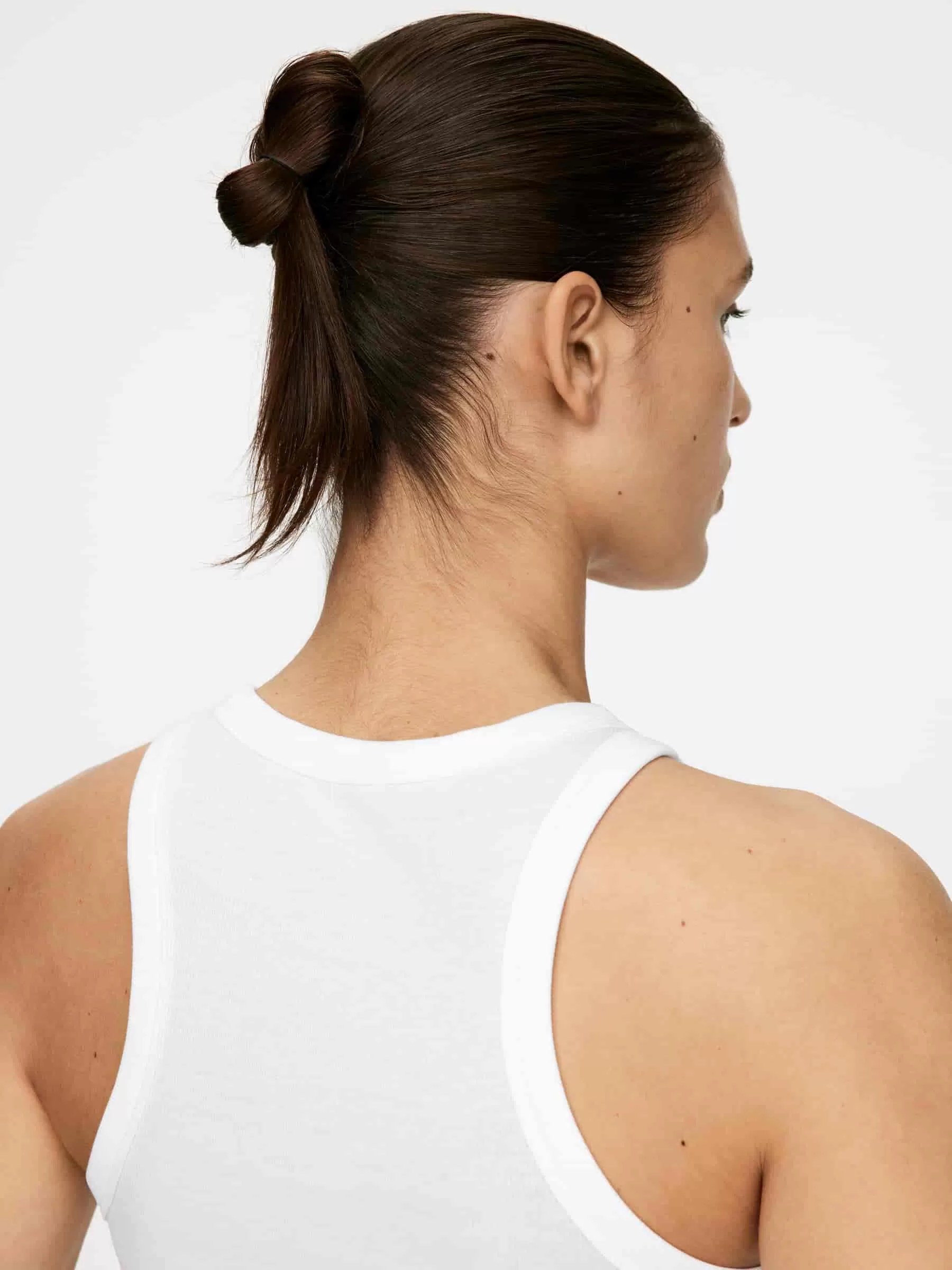 Slim-Fit-Tanktop aus weichem, geripptem Jerseystoff aus Baumwolle mit einem Hauch Elastan. Entworfen mit einem schmeichelnden Racer-förmigen Ausschnitt und Rücken.