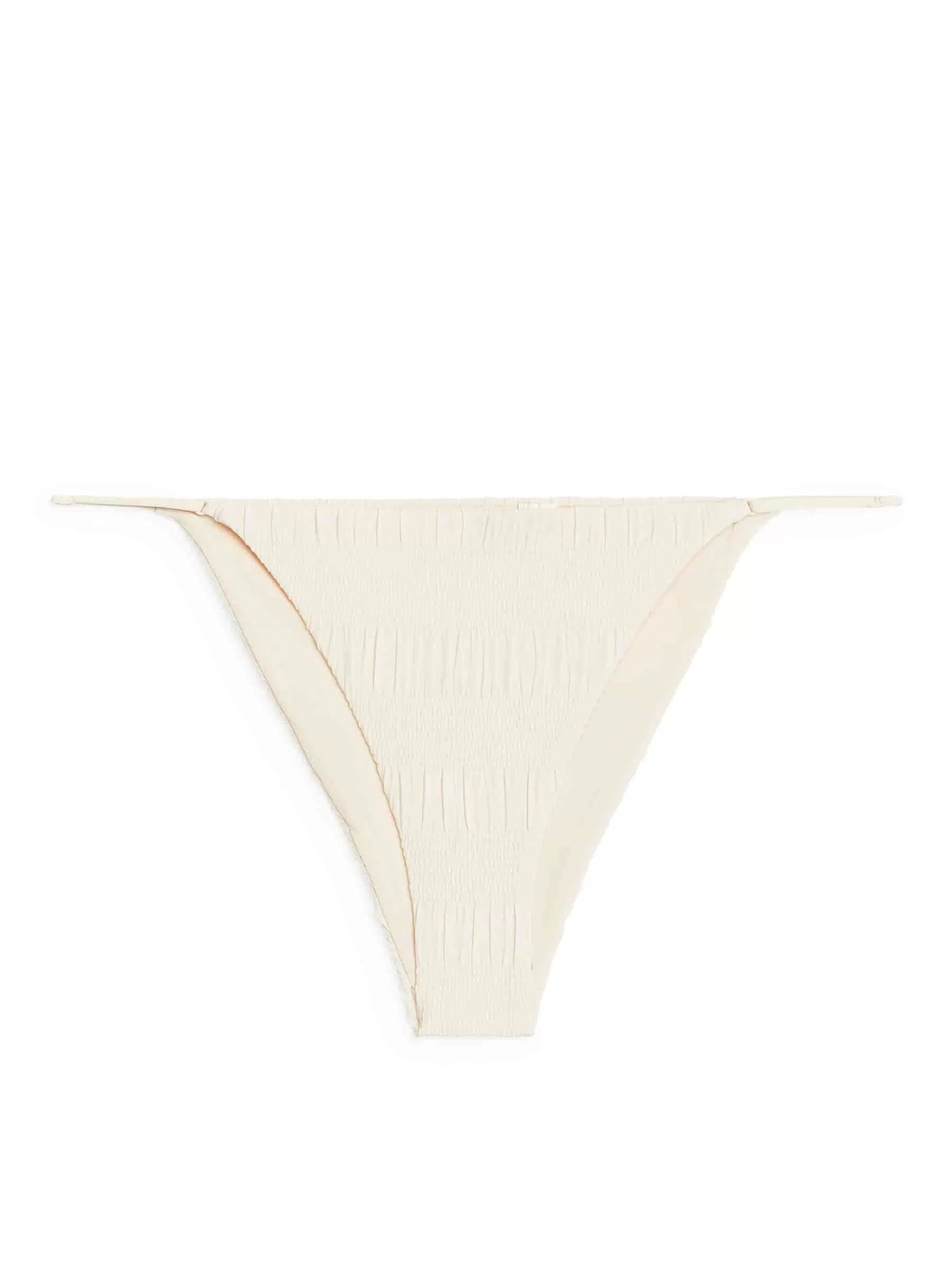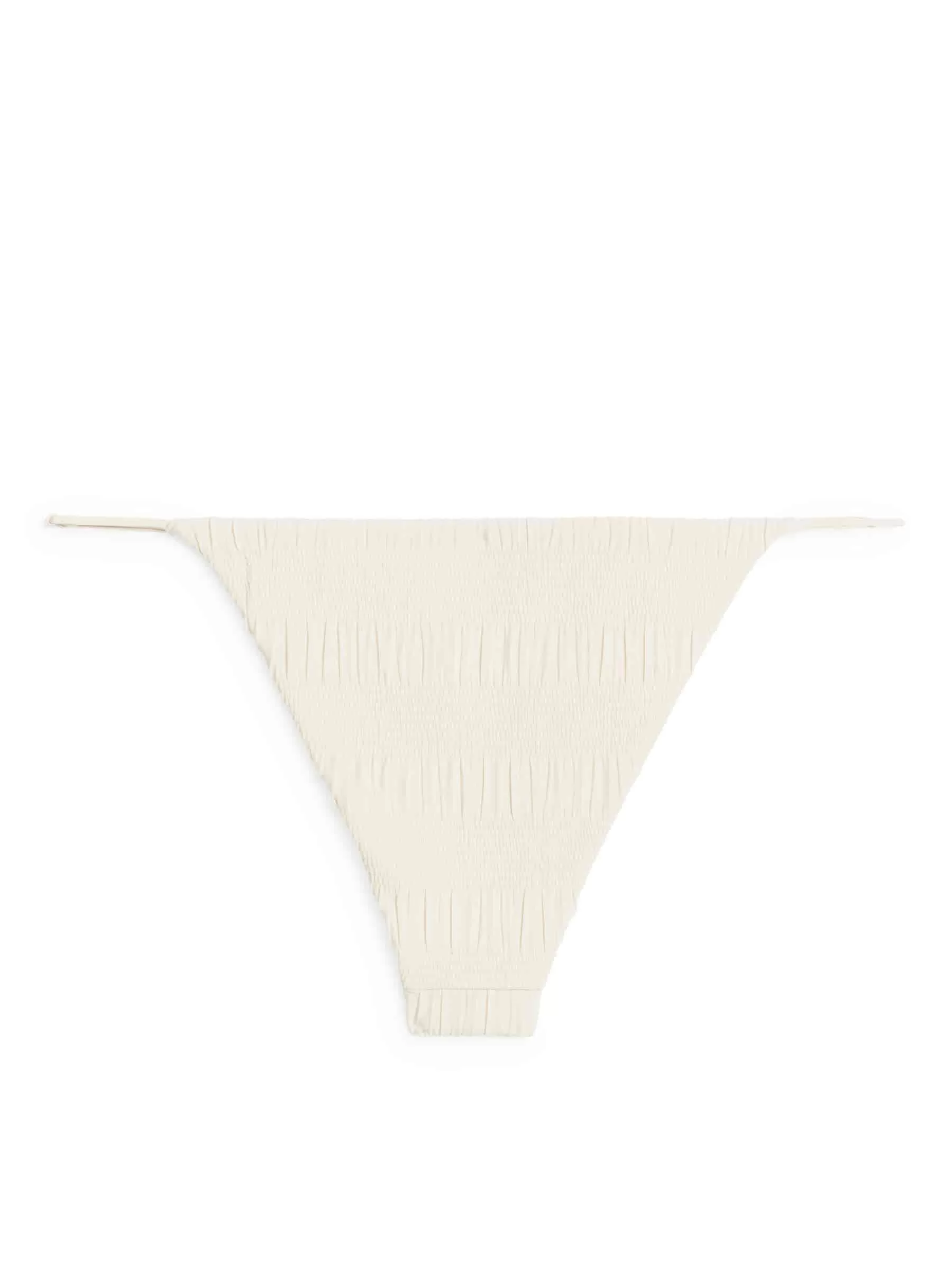 Bikinihose im Tanga-Stil mit hoher Beinöffnung und verstellbaren Schiebeträgern. Hergestellt aus dehnbarem Polyamid mit gesmokter Struktur.