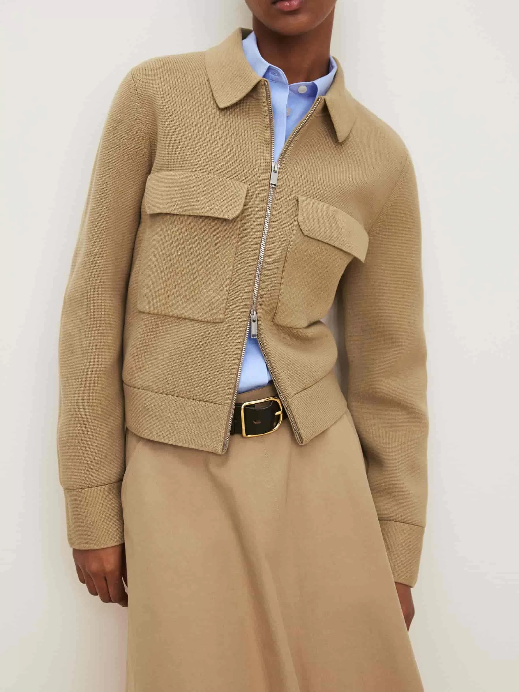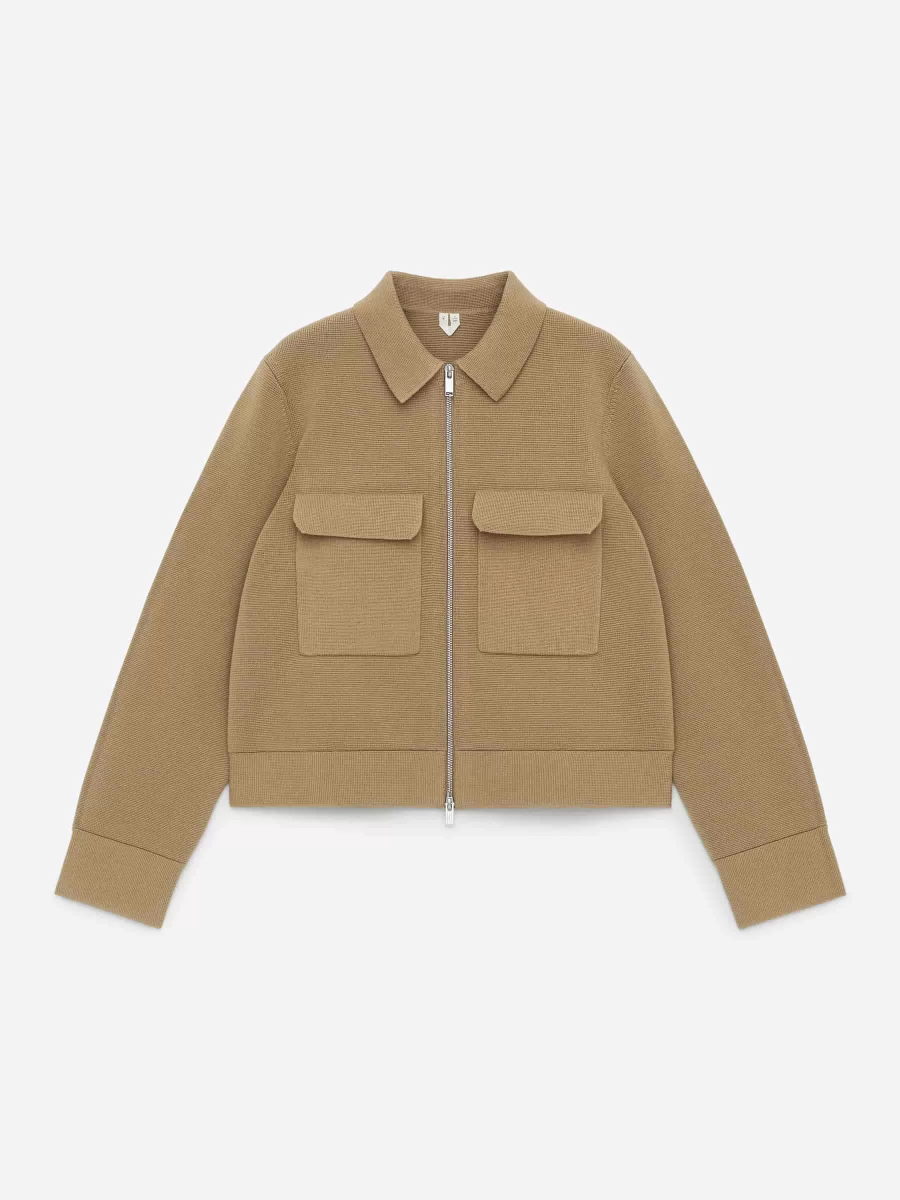 Strickjacke aus Baumwolle. Mit Hemdkragen, Zwei-Wege-Reißverschluss vorne und Brusttaschen mit Patte. Normale Passform.