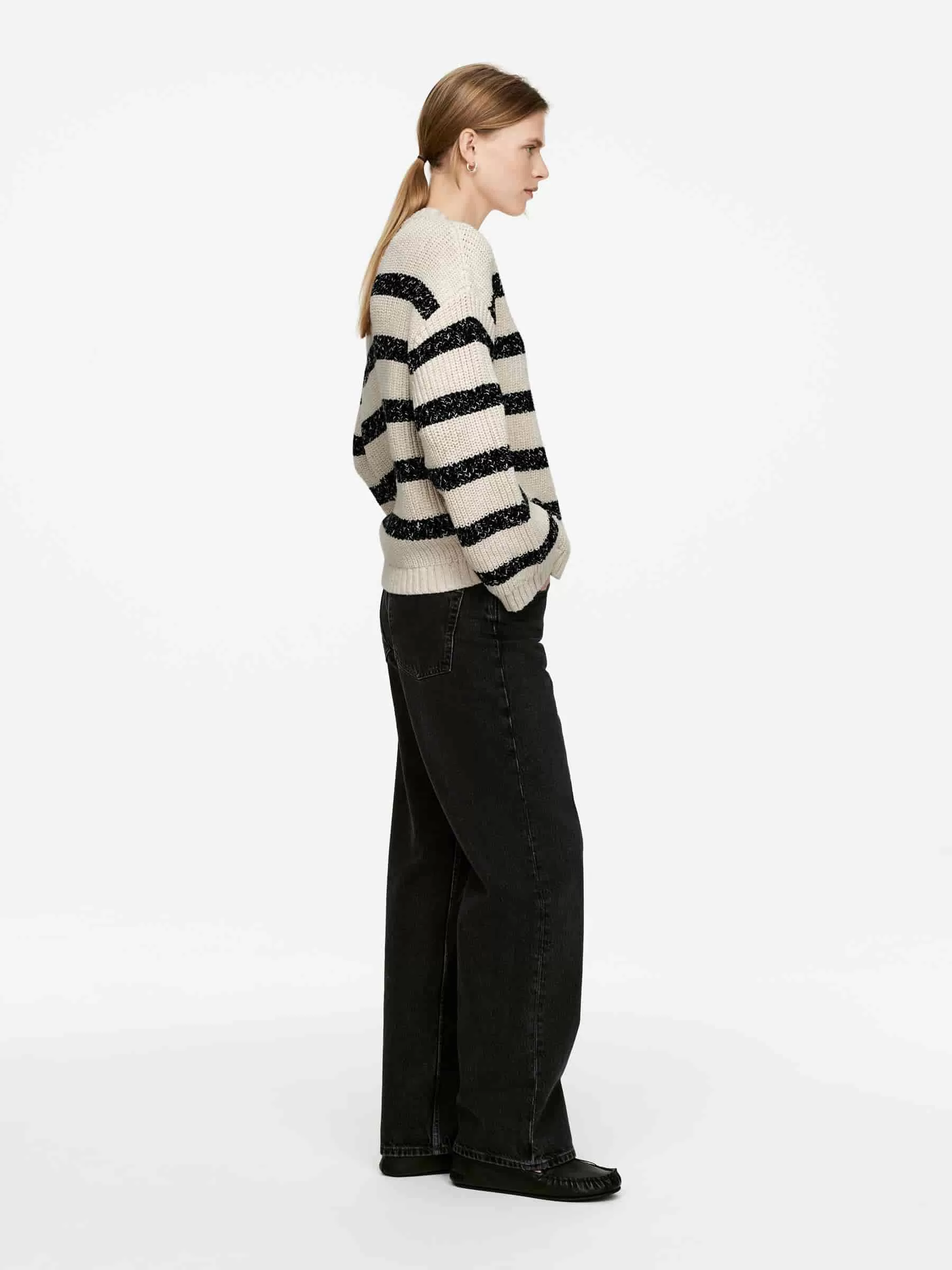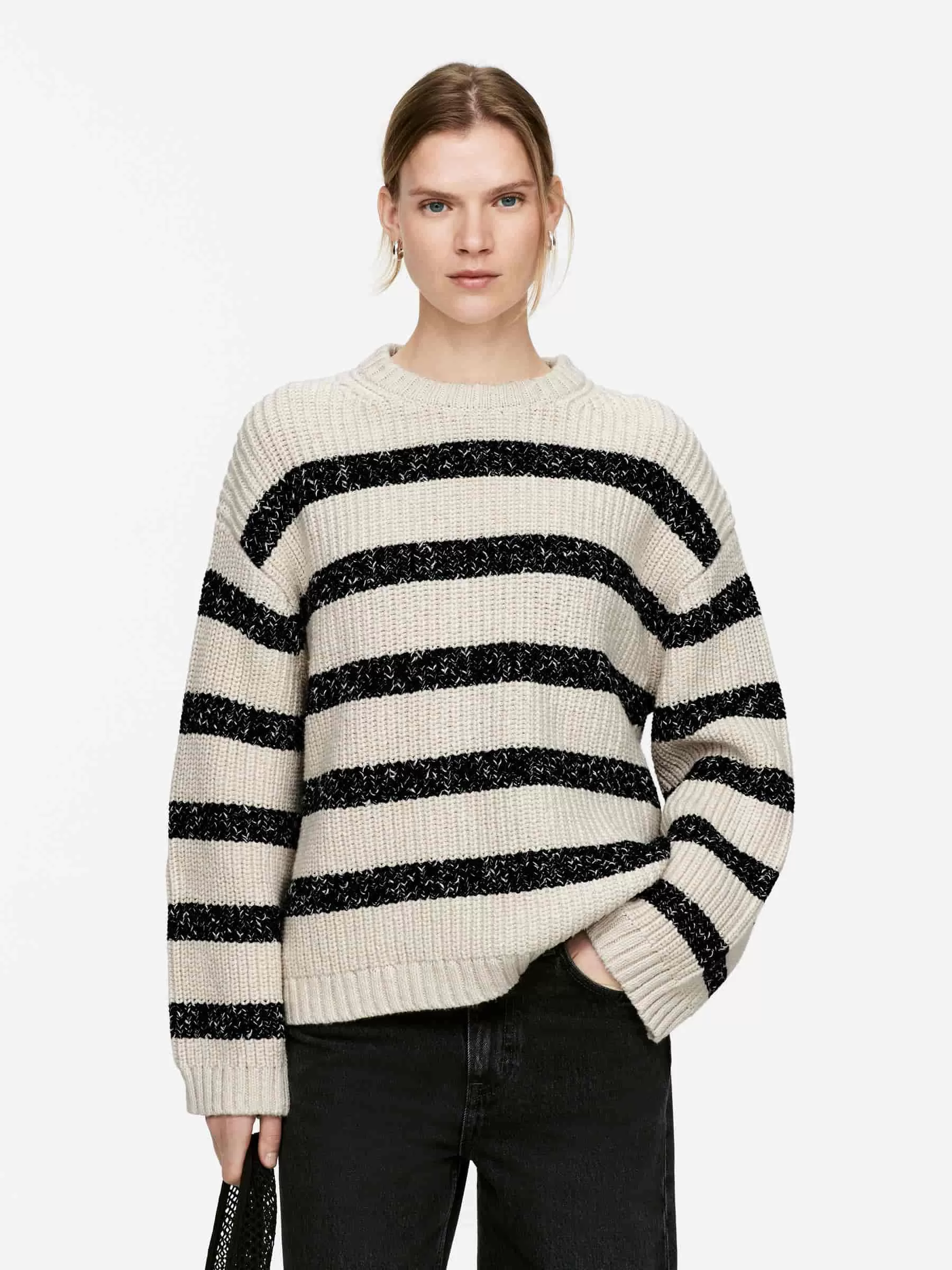 ARKE Damen Gestrickter Baumwollpullover Beige/Schwarz