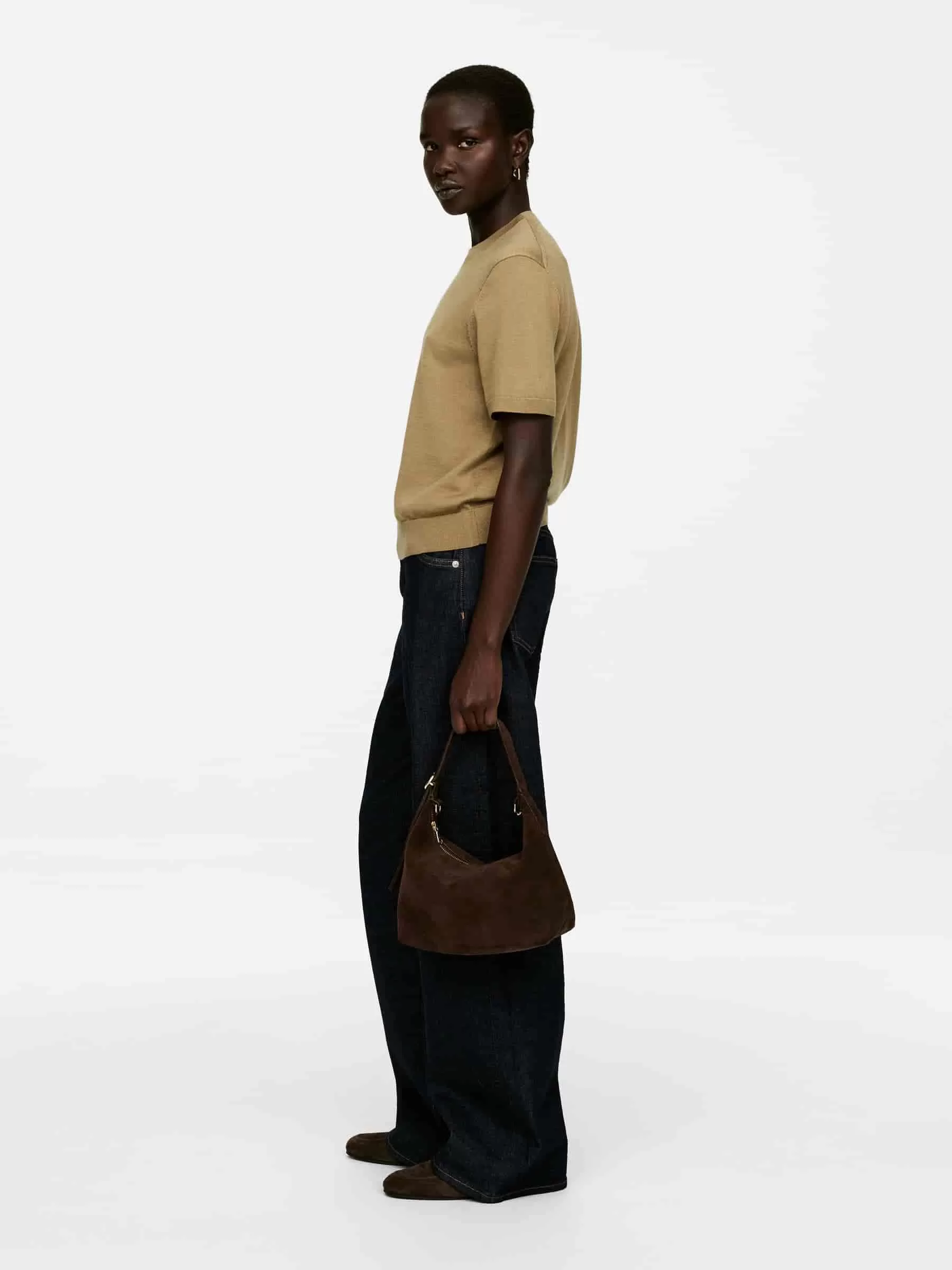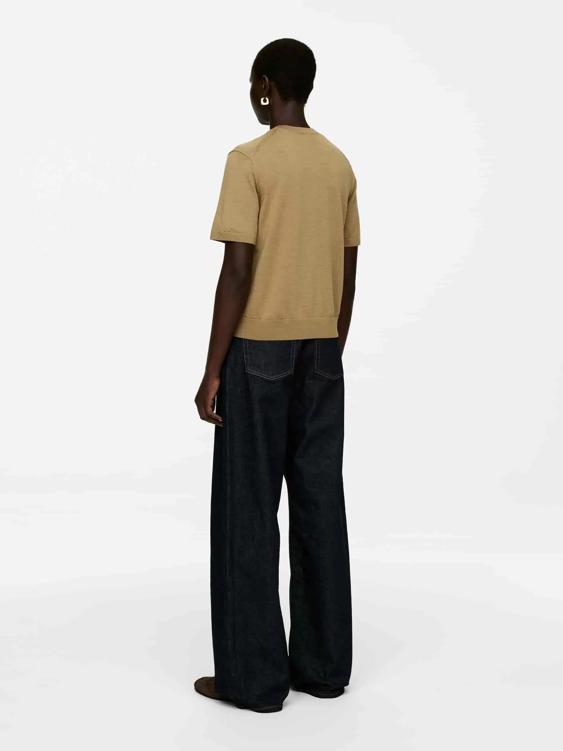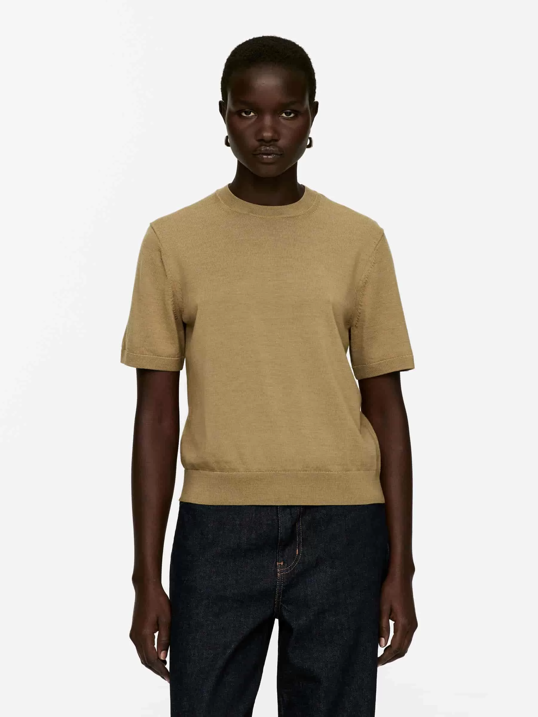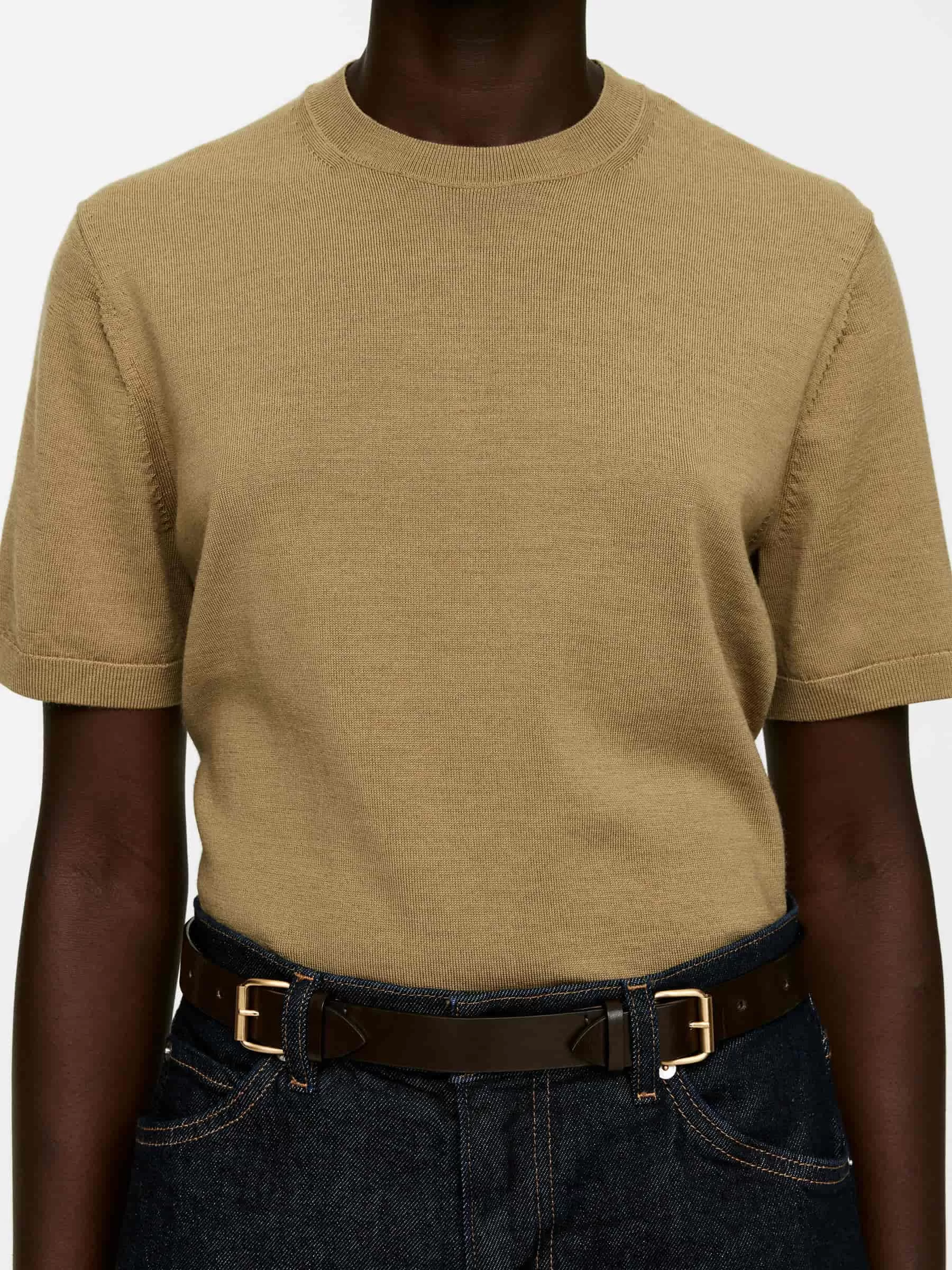 ARKE Damen Gestricktes T-Shirt aus Merinowolle Dunkelbeige