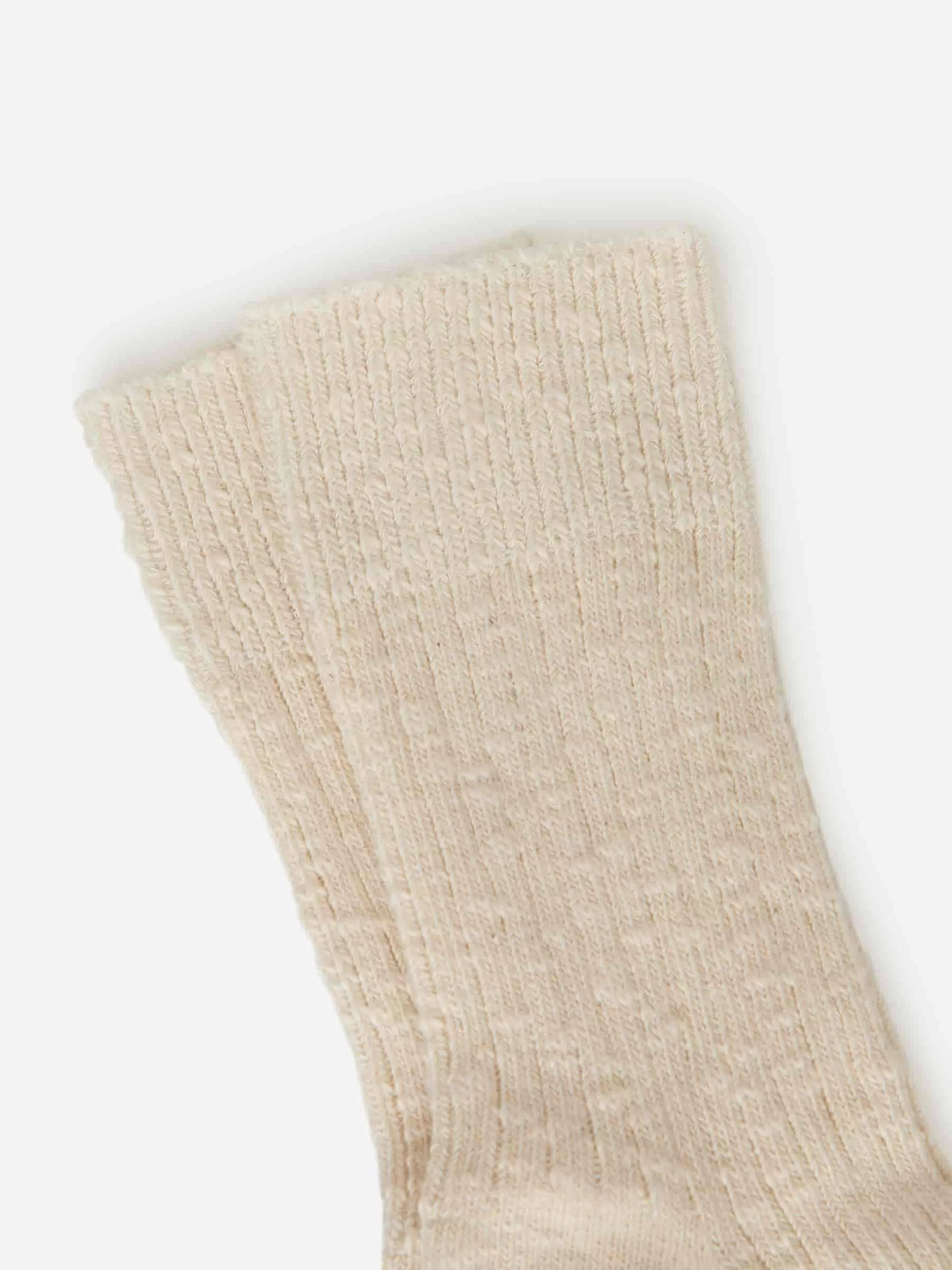 Klobige Socken im Rippenstrick aus einem unregelmäßigen Baumwollmischgarn.