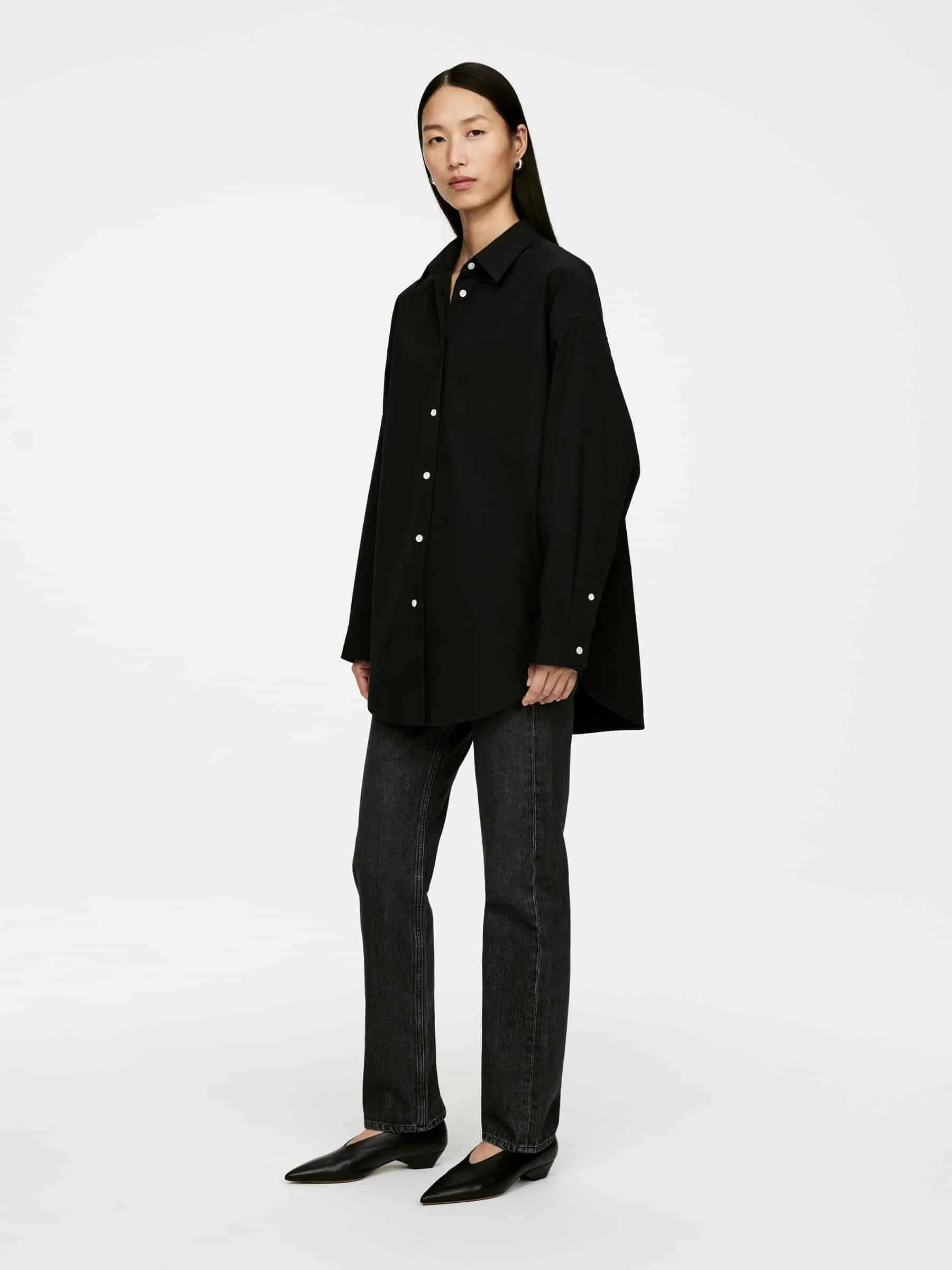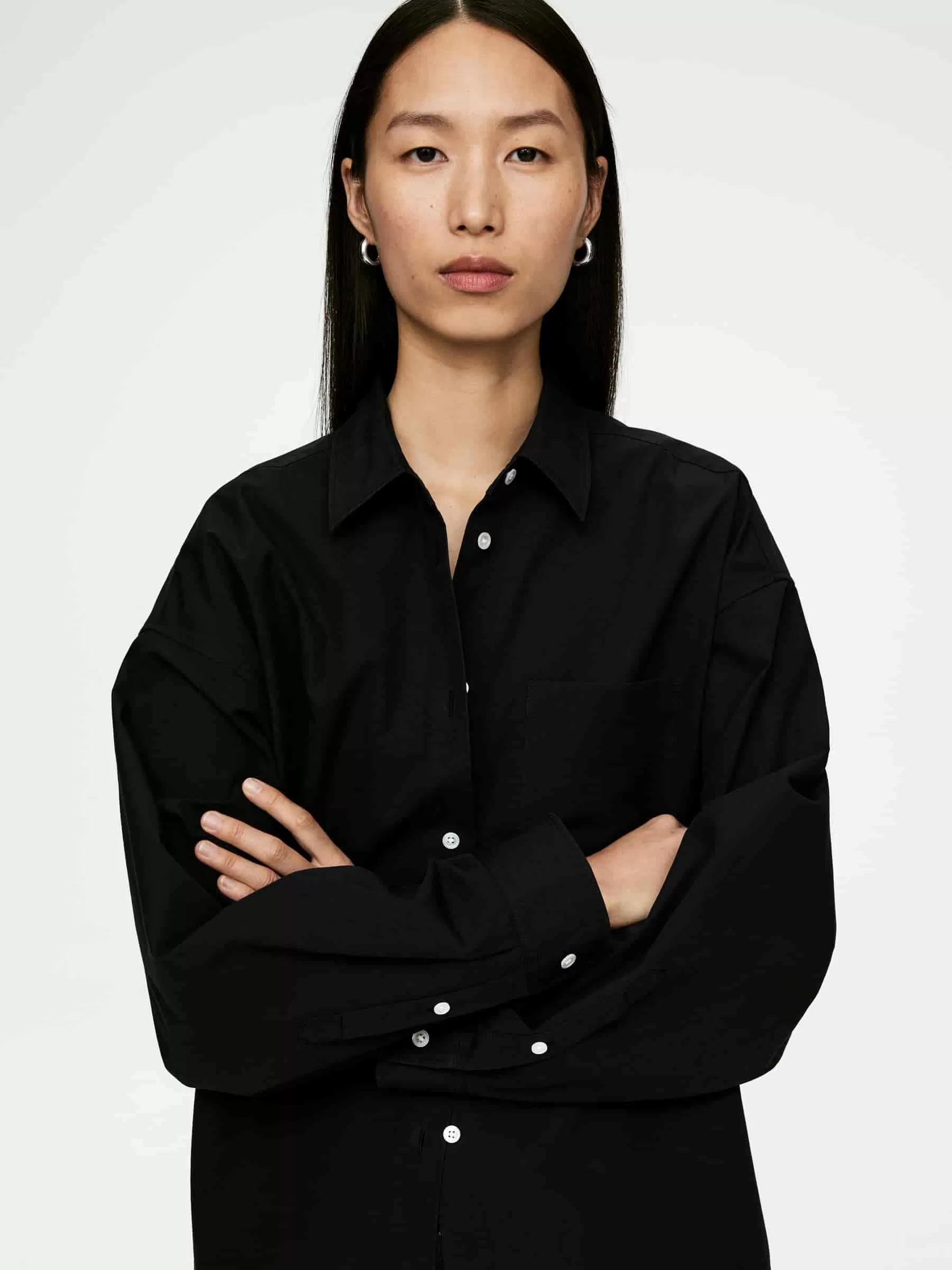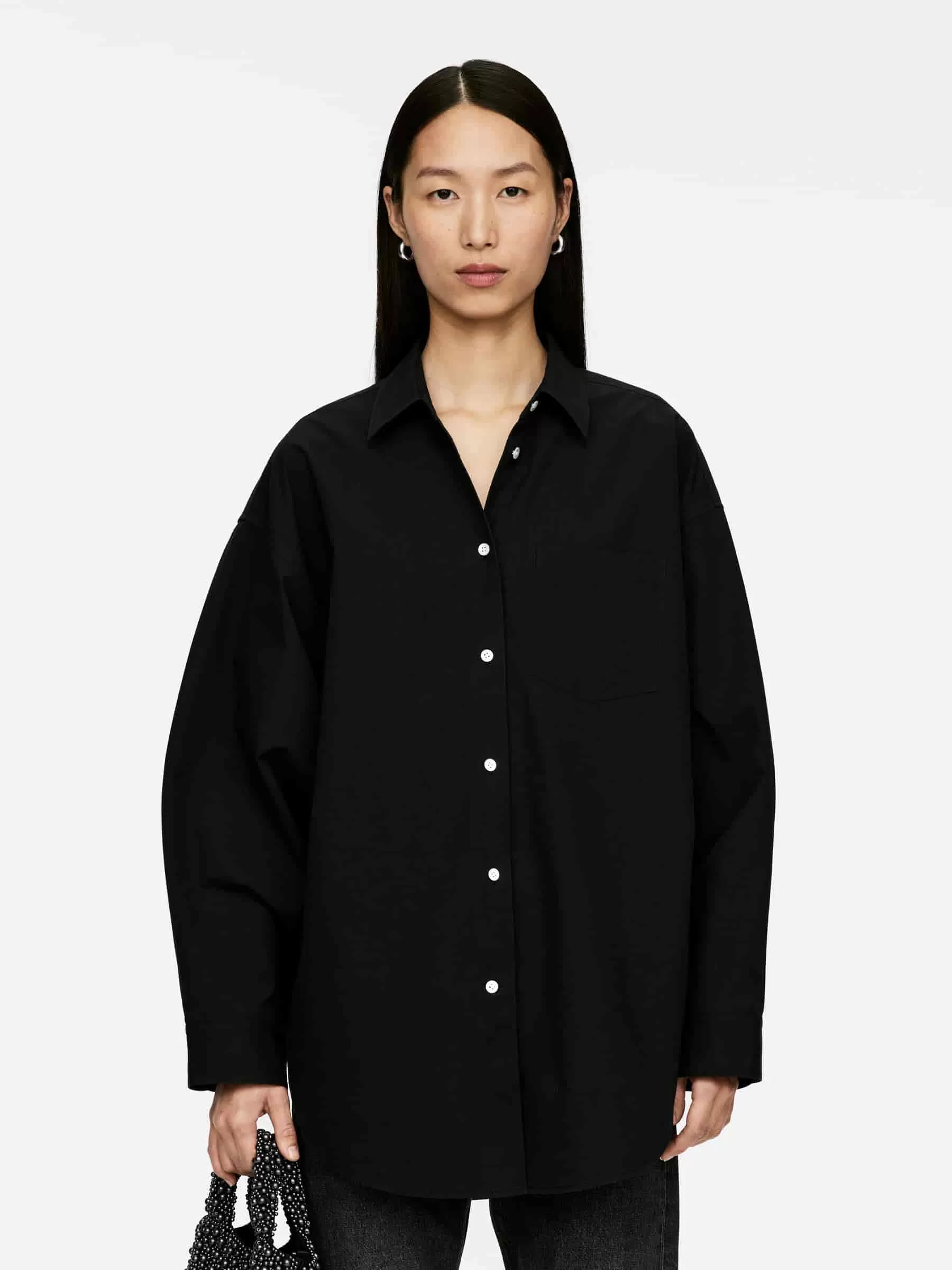 Übergroßes Hemd aus schwerer Pima-Baumwolle. Mit Fledermausärmeln und einer einzelnen Brusttasche.