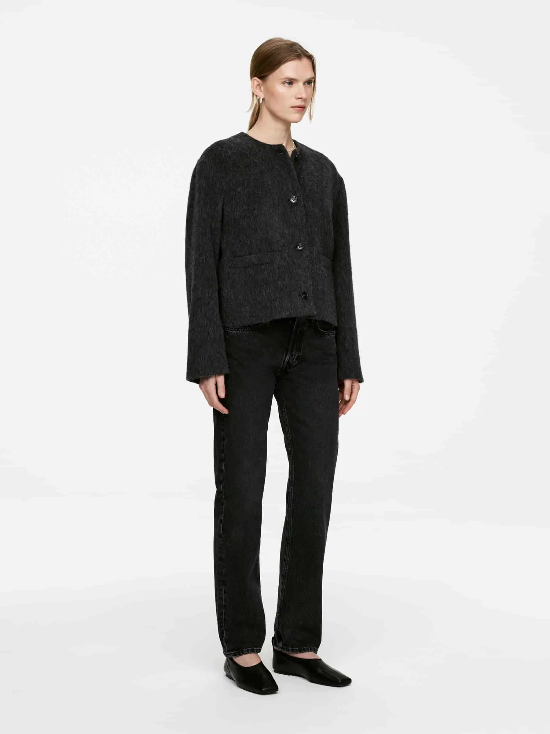 ARKE Damen Jacke aus gebürsteter Wollmischung Dunkelgrau