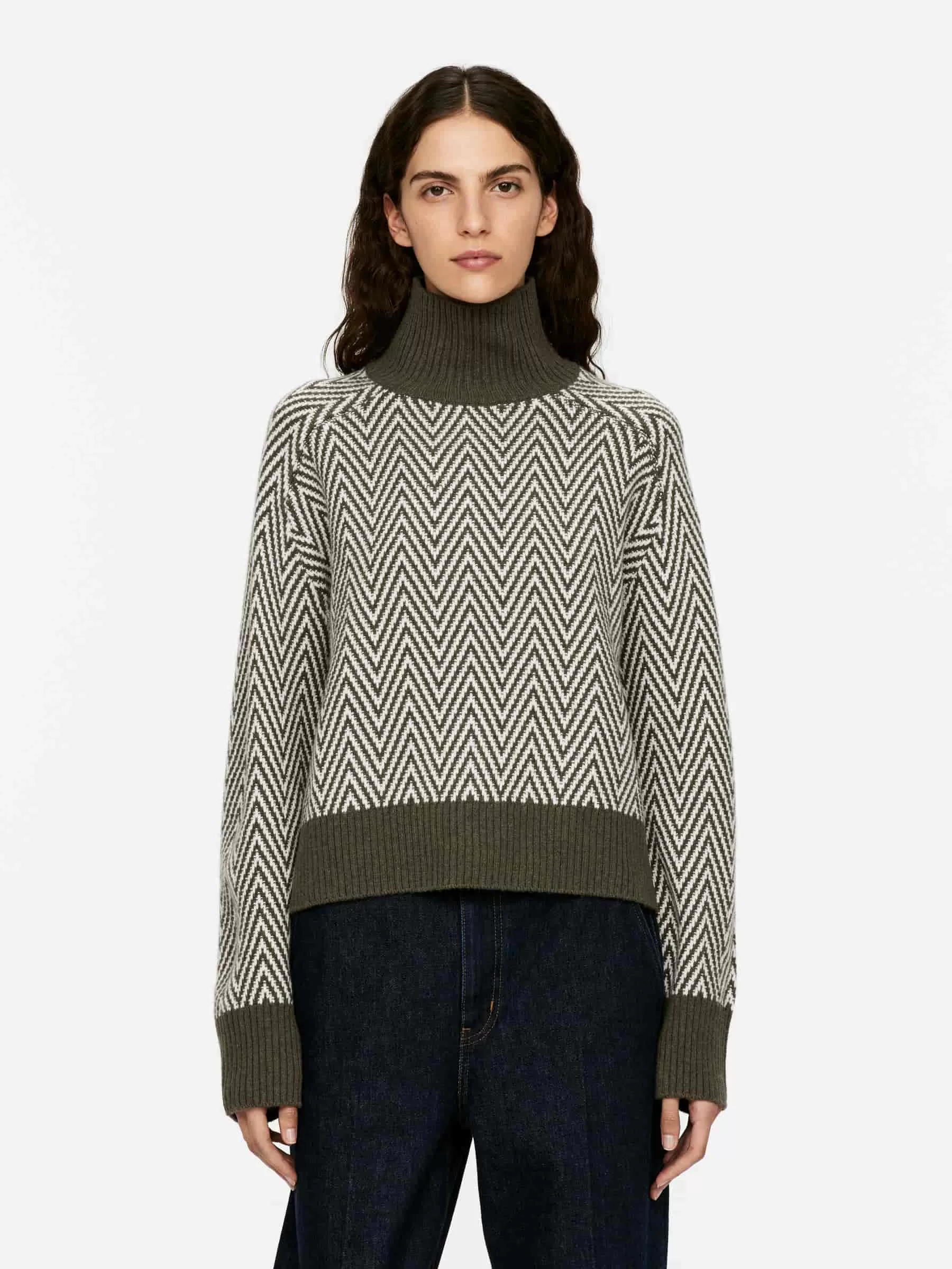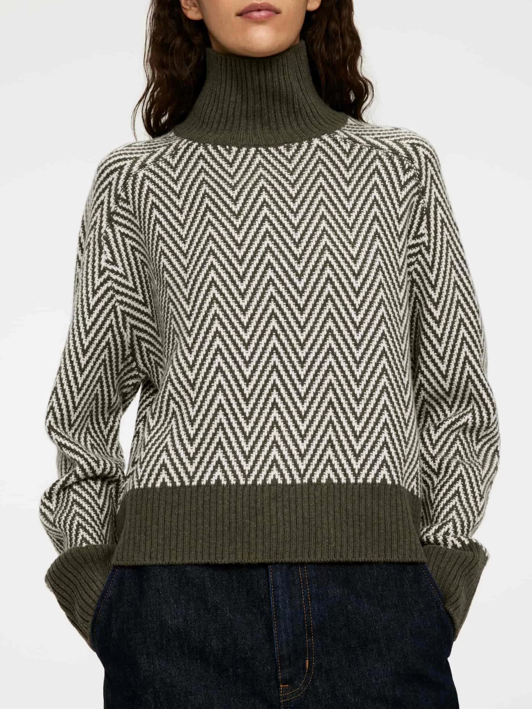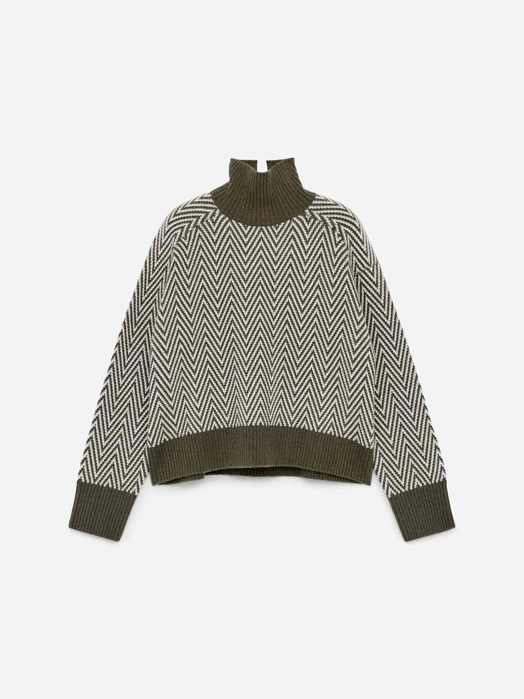ARKE Damen Jacquard-Strickpullover aus Wolle Khakigrün