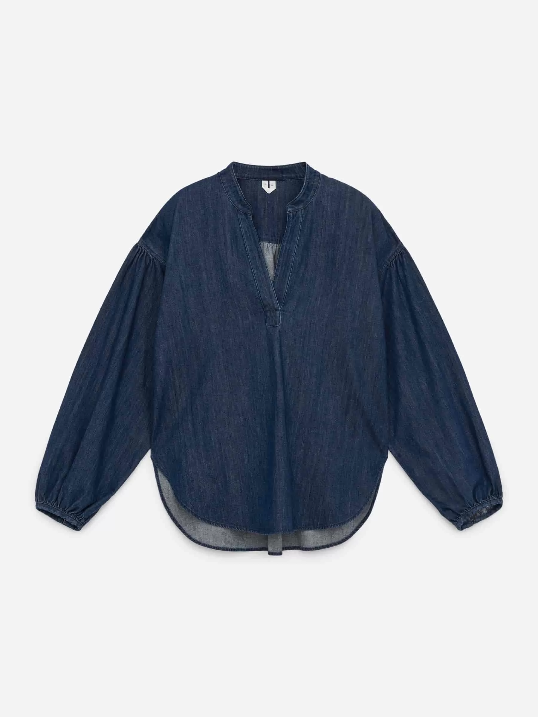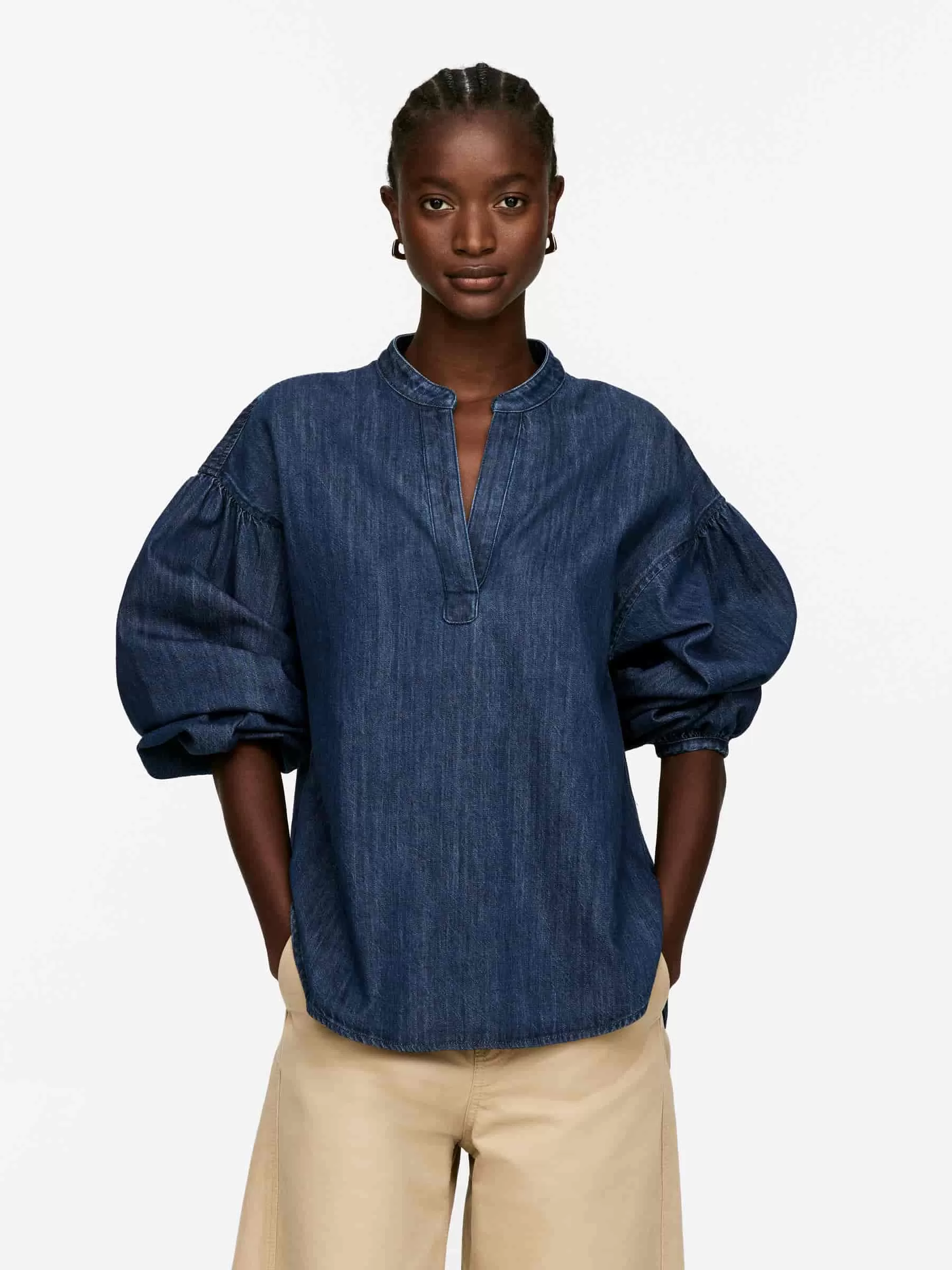 ARKE Damen Jeansbluse mit voluminösen Ärmeln Blau gewaschen