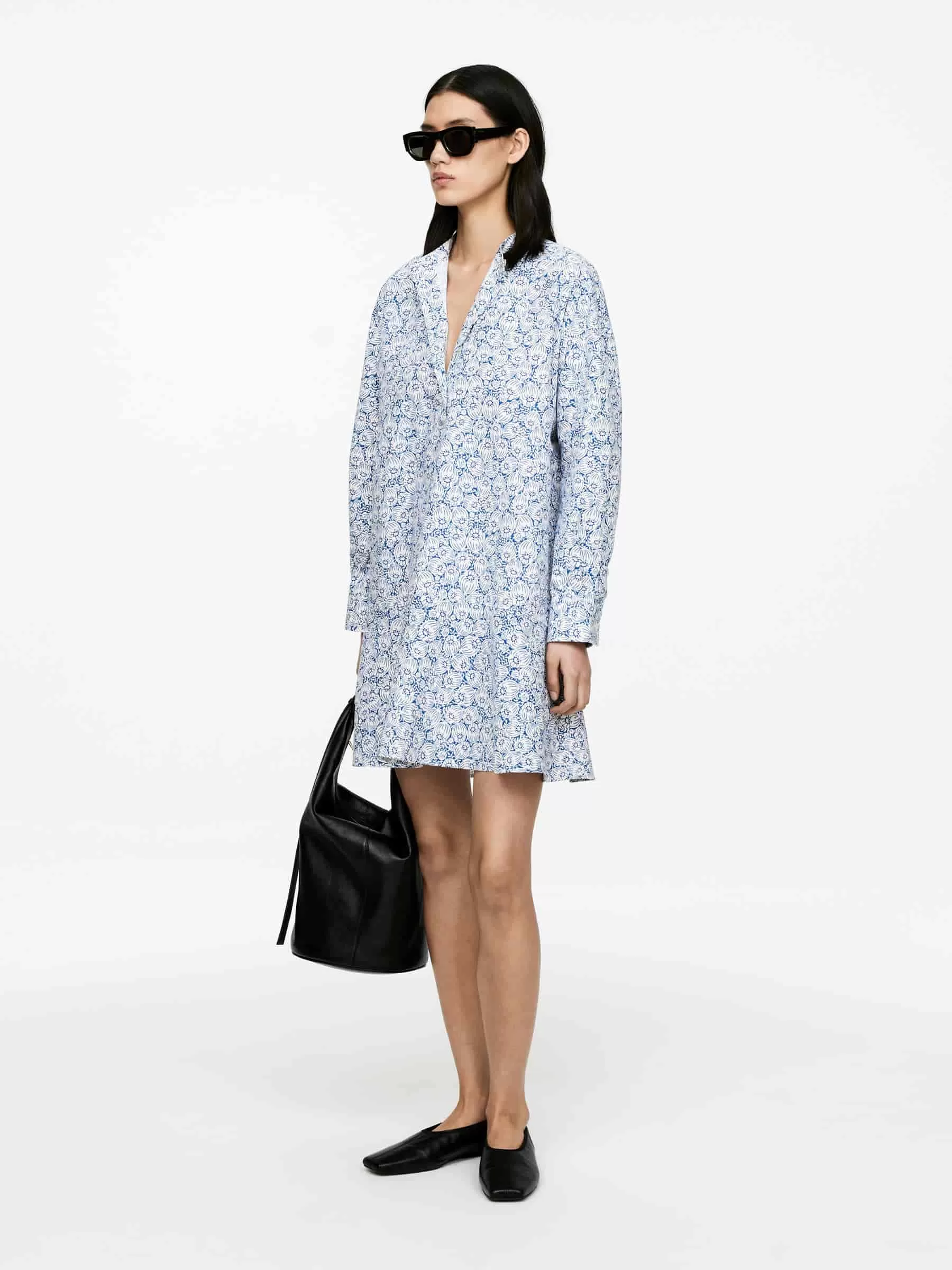 ARKE Damen Kleid mit Baumwolldruck Blau/Weiß