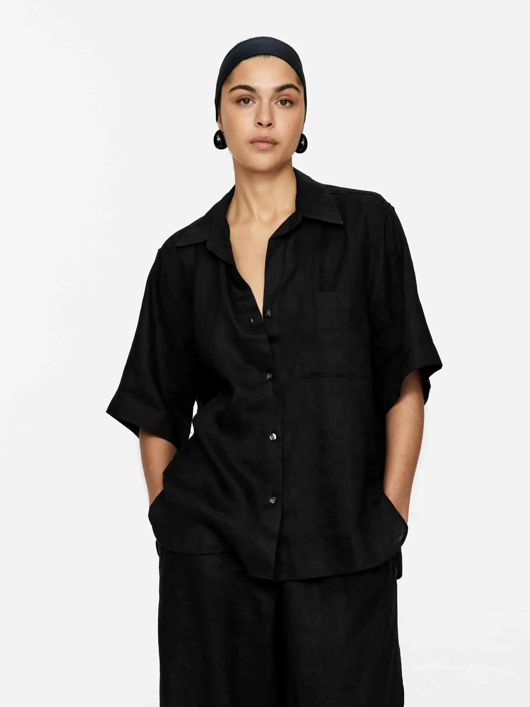 ARKE Damen Leinen-Resort-Hemd Schwarz