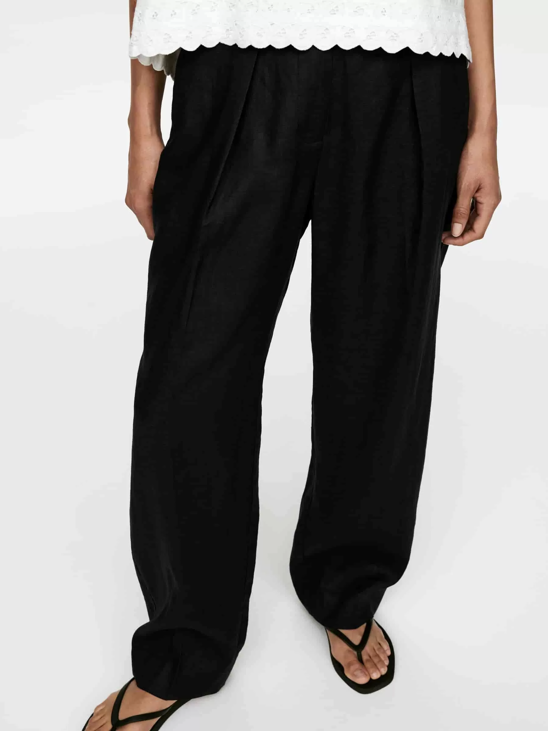 Diese lange Hose mit mittlerer Taille ist aus reinem Leinen gewebt. Eine gerade Passform mit Bügelfalten und Falten vorne, die dem Stil einen anmutigen Fall verleihen.