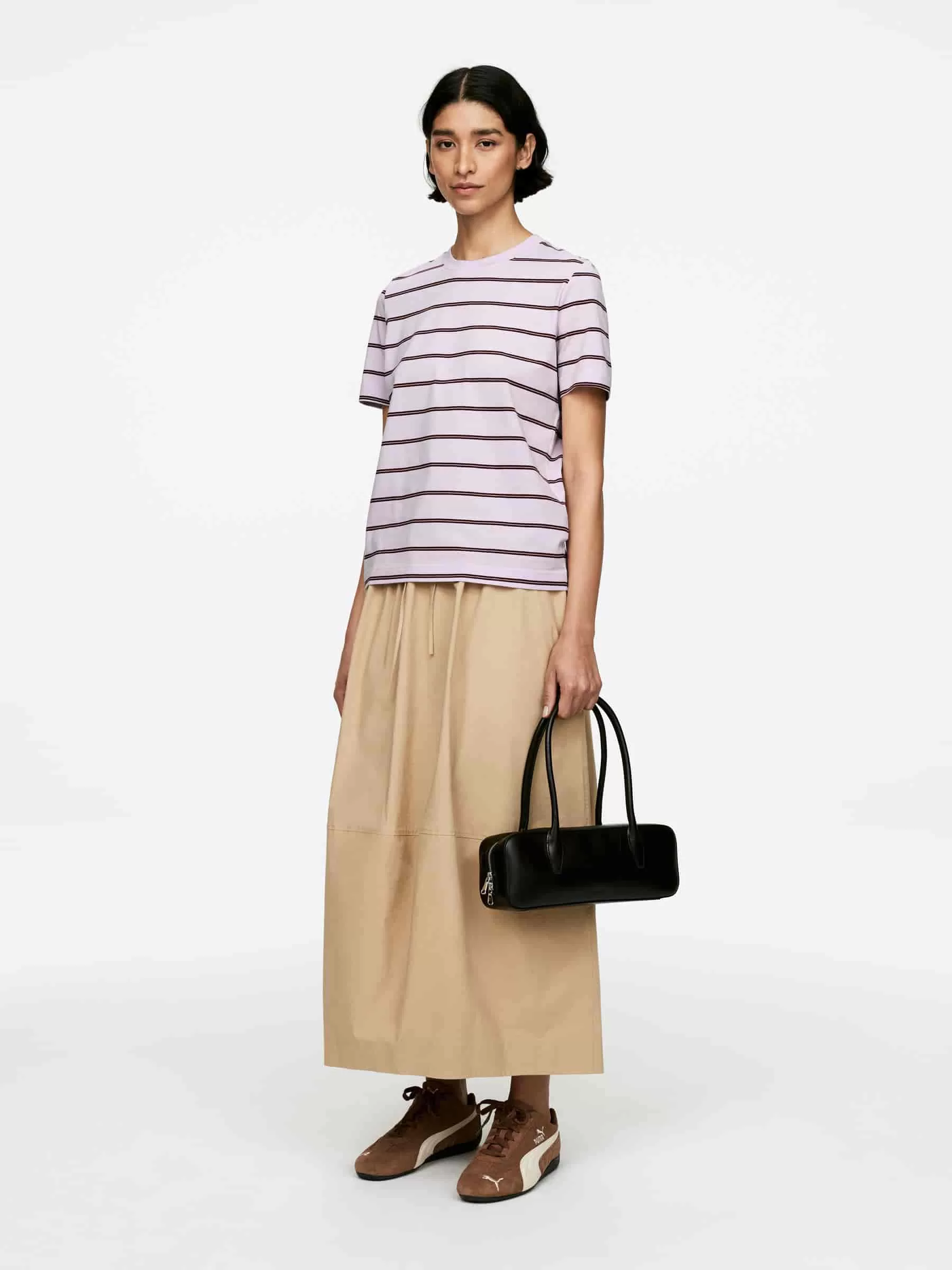 T-Shirt aus glatter, kompakter langstapeliger Baumwolle gestrickt. Entworfen mit einer regulären Passform aus Single-Jersey mit einer gerippten Paspelierung um den Rundhalsausschnitt.