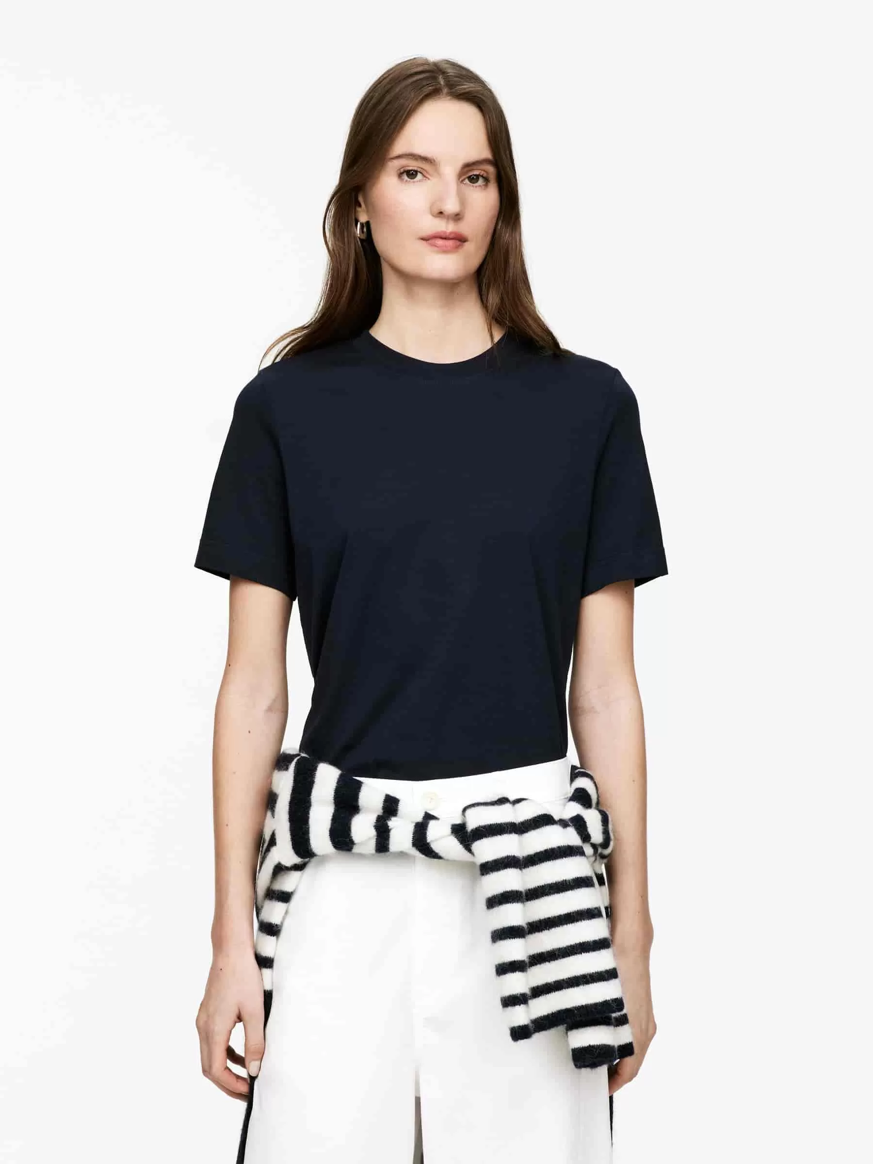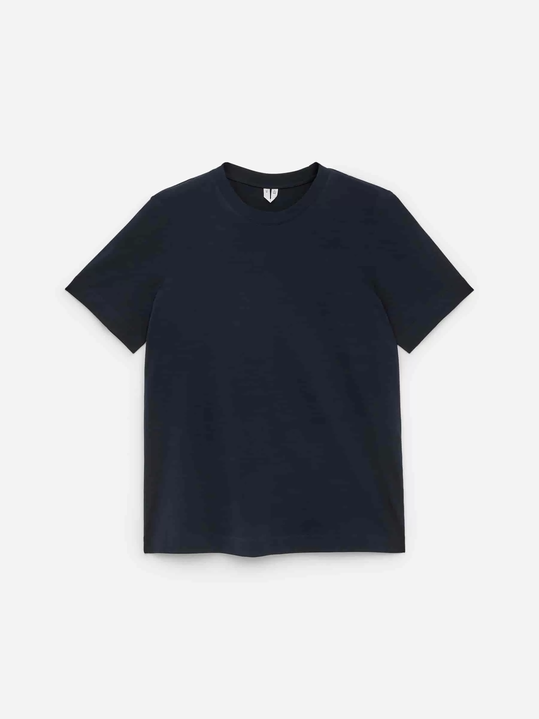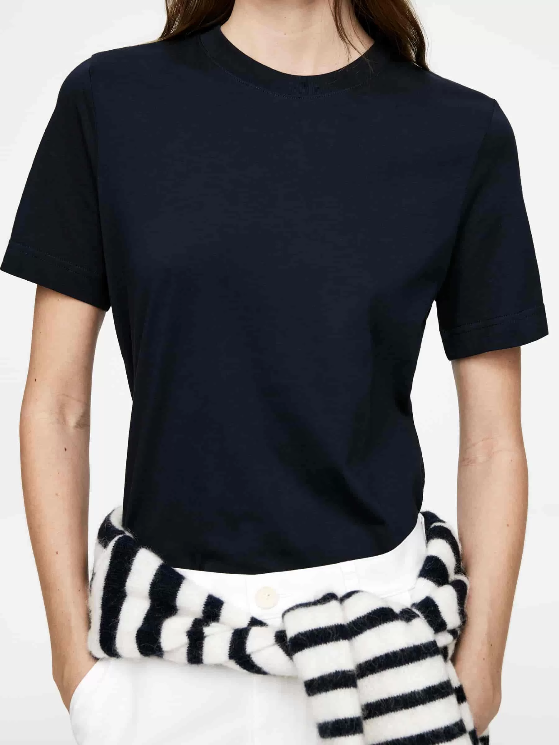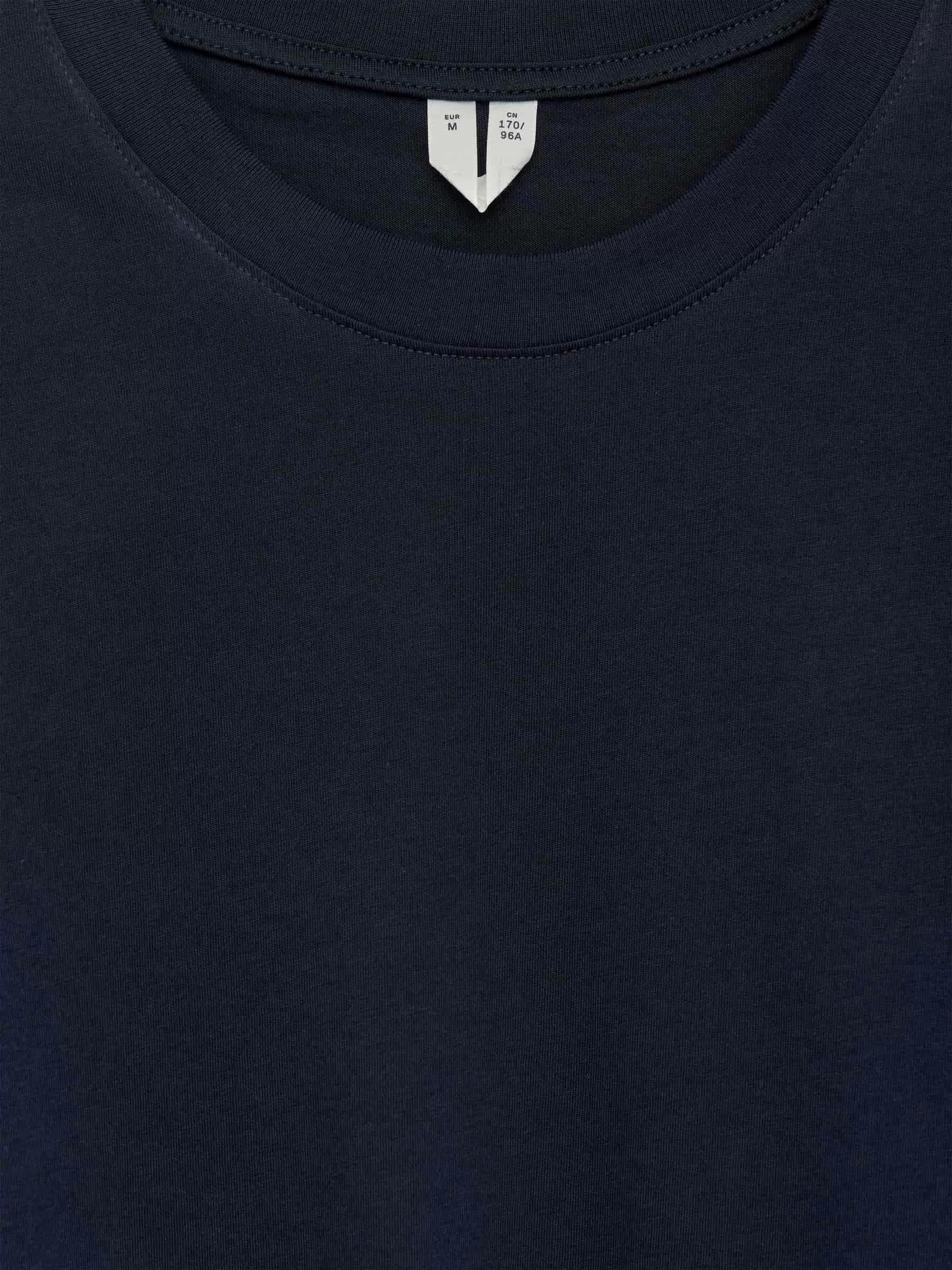T-Shirt aus glatter, kompakter langstapeliger Baumwolle gestrickt. Entworfen mit einer regulären Passform aus Single-Jersey mit einer gerippten Paspelierung um den Rundhalsausschnitt.