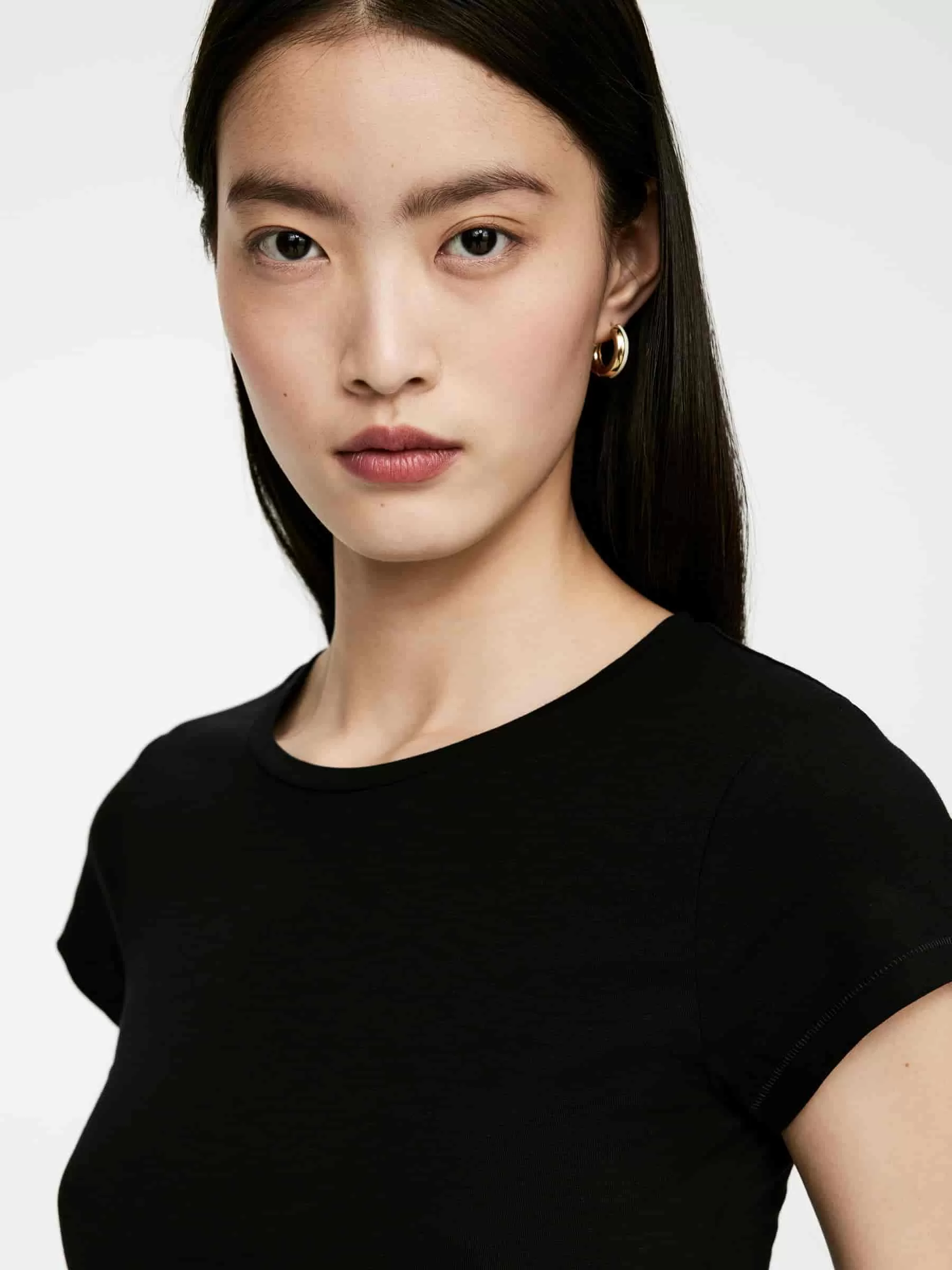 T-Shirt mit Flügelärmeln aus Jerseyqualität aus Supima-Baumwolle und einem Hauch Elasthan für Dehnbarkeit. Schlanke Passform.