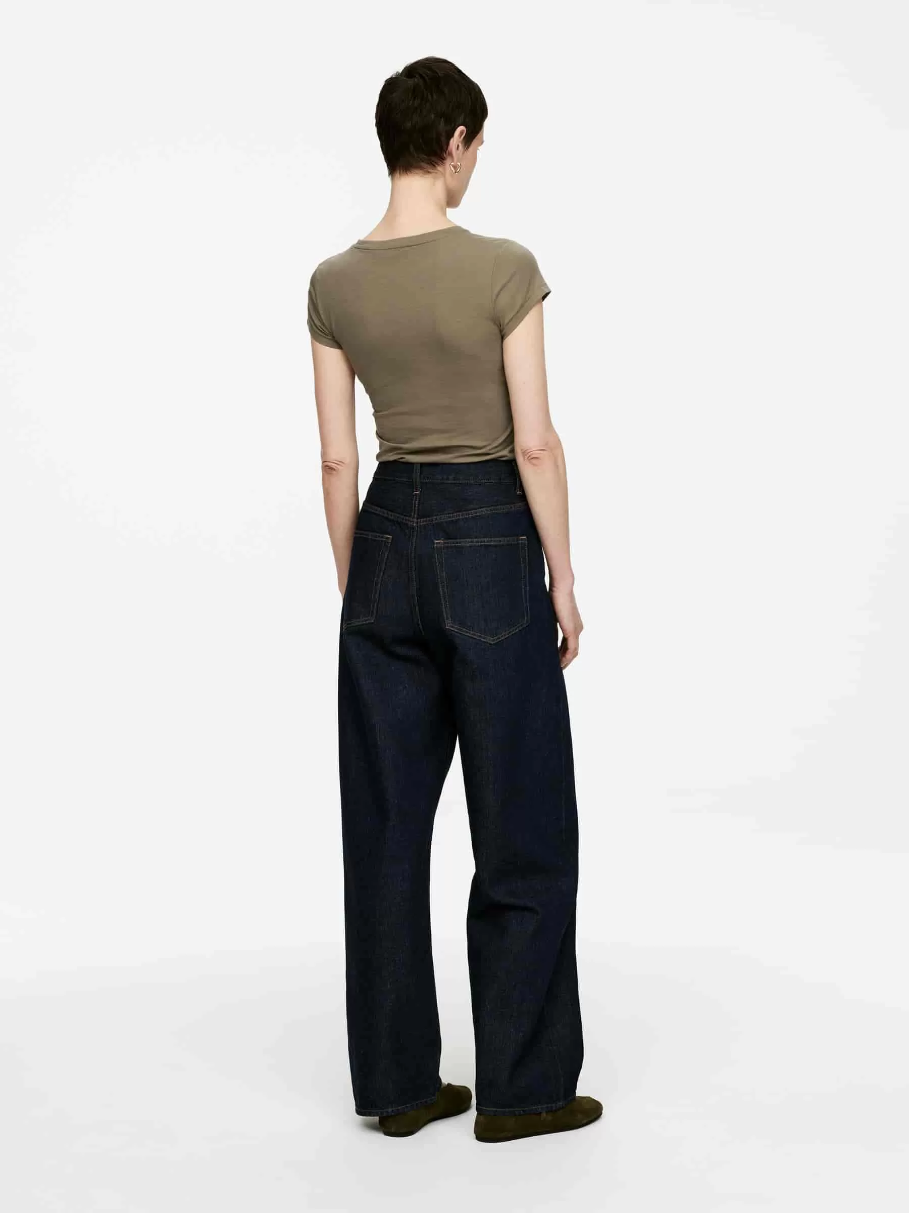 T-Shirt mit Flügelärmeln aus Jerseyqualität aus Supima-Baumwolle und einem Hauch Elasthan für Dehnbarkeit. Schlanke Passform.