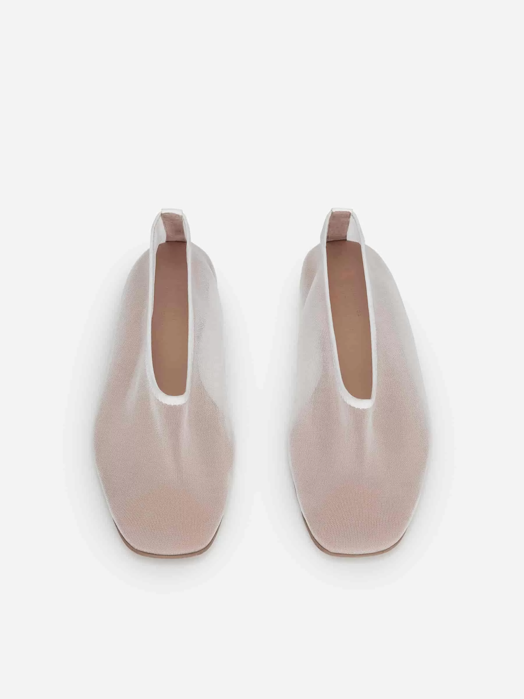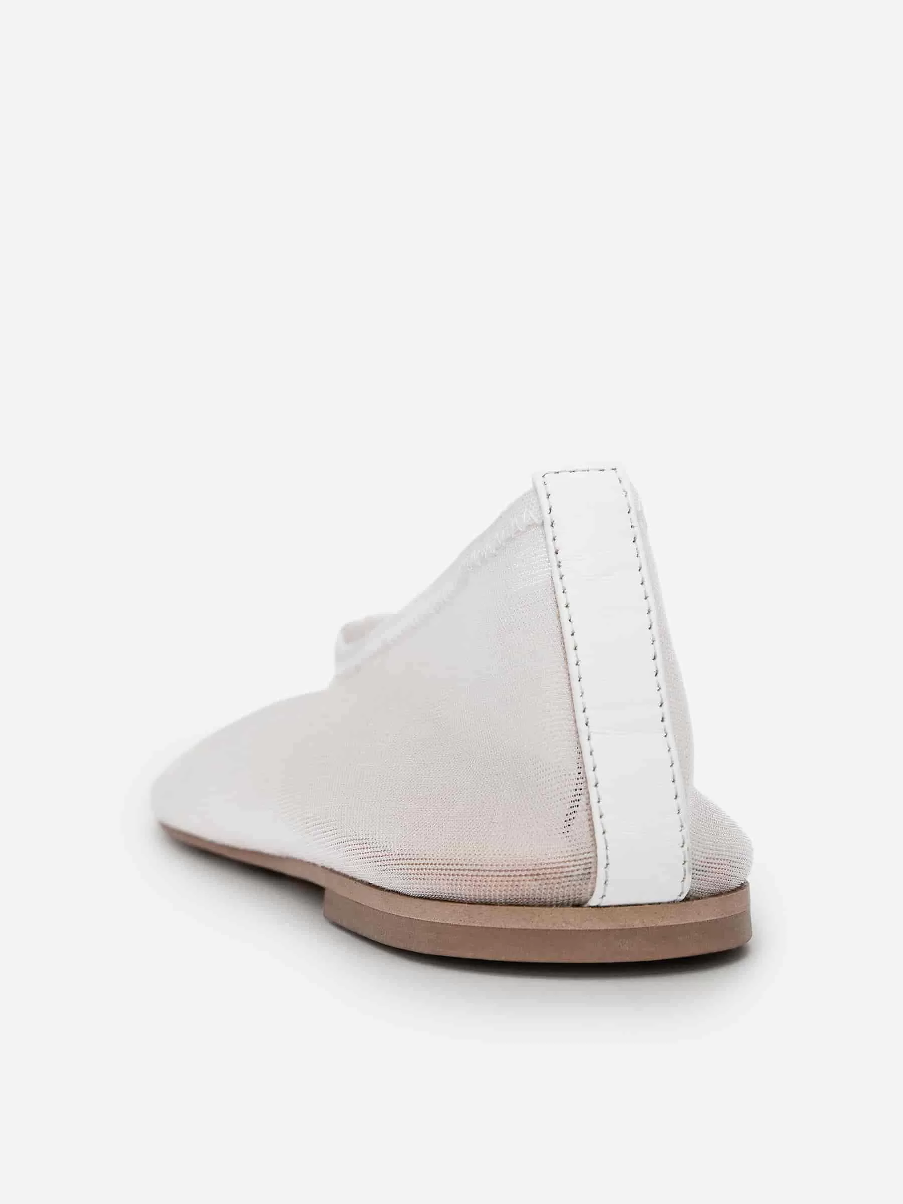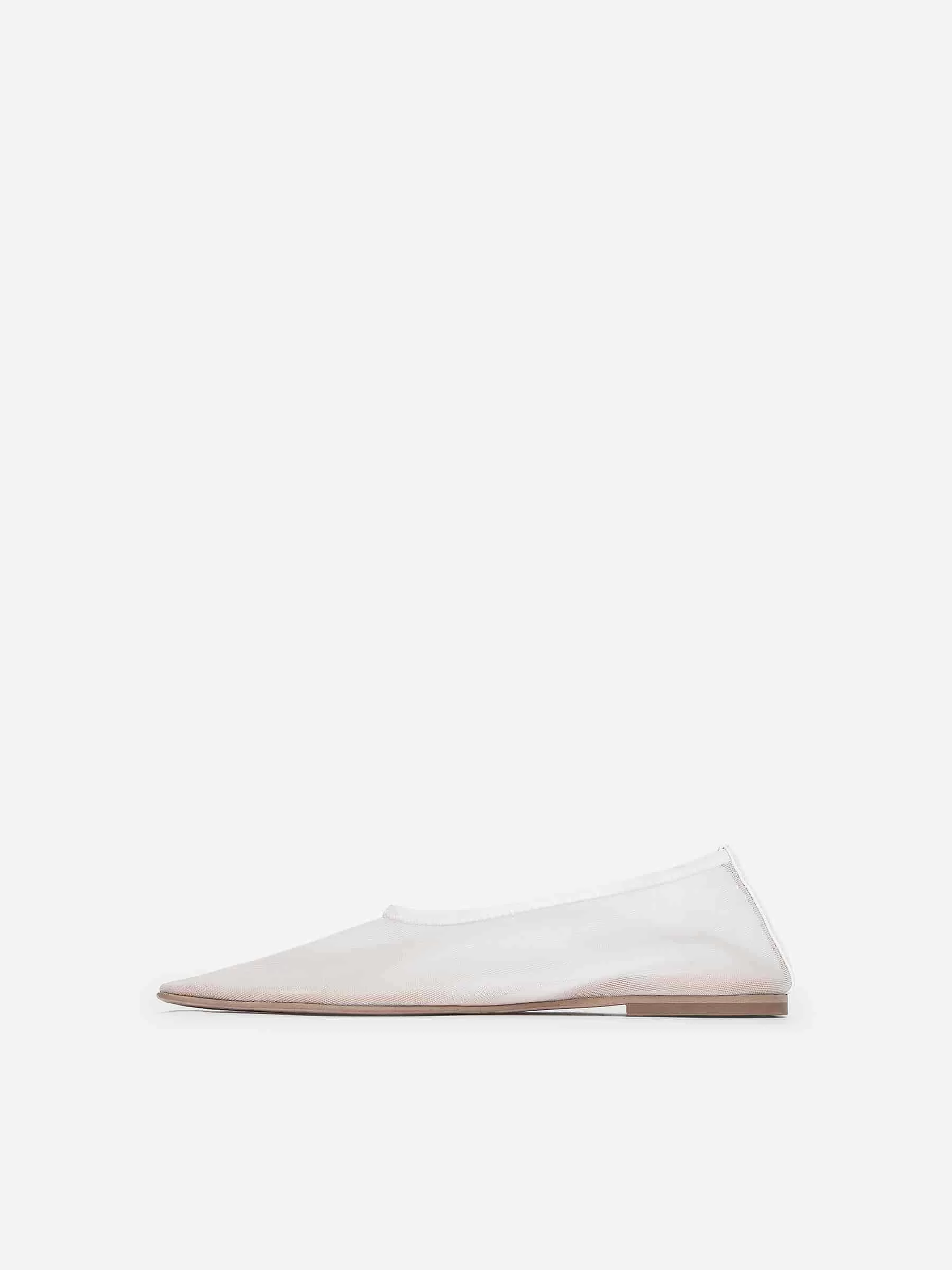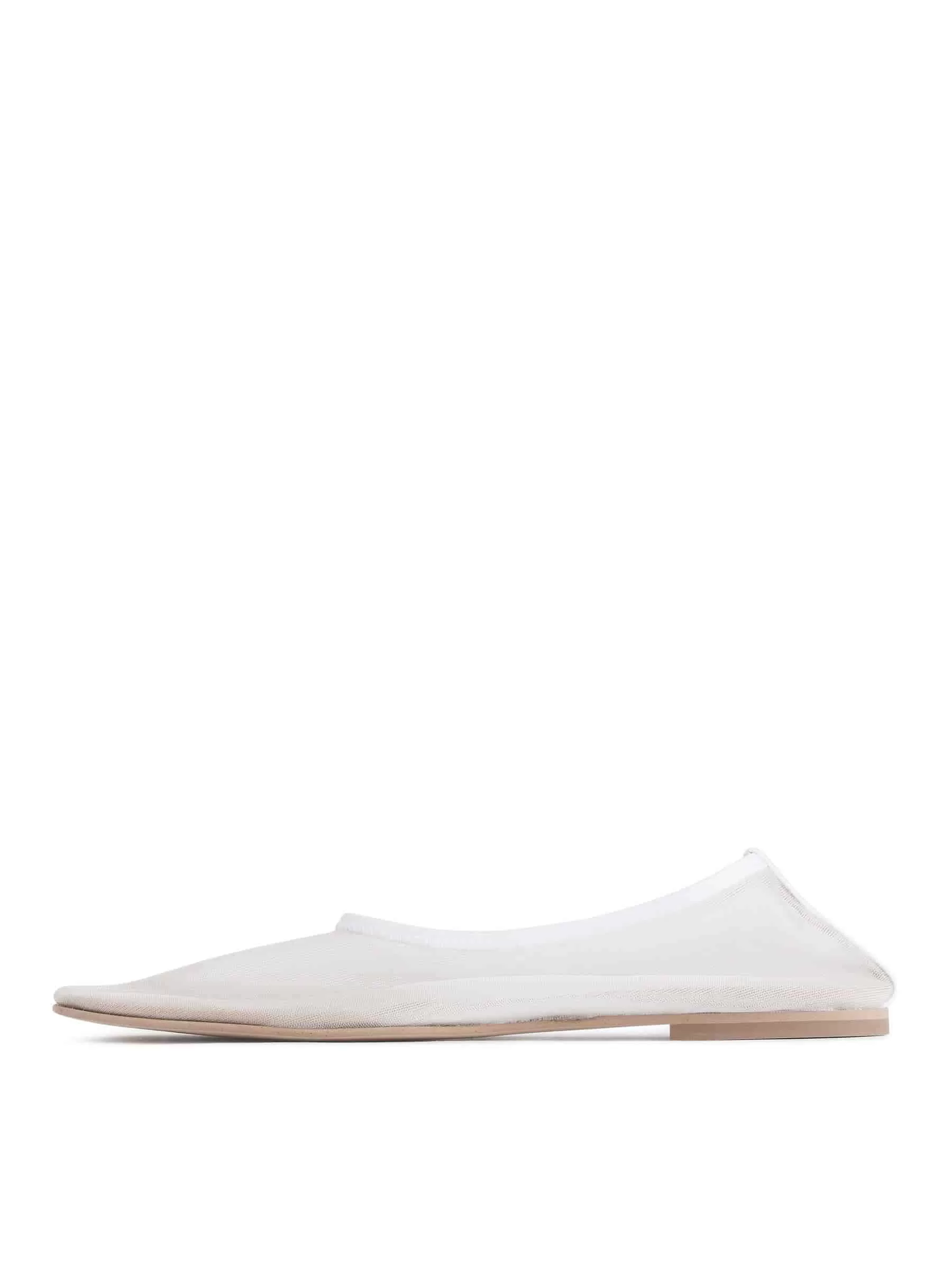 Flache Ballerinas aus feinem Mesh. Entworfen mit einer leicht quadratischen Spitze. Lederfutter. Gummi-Außensohle.