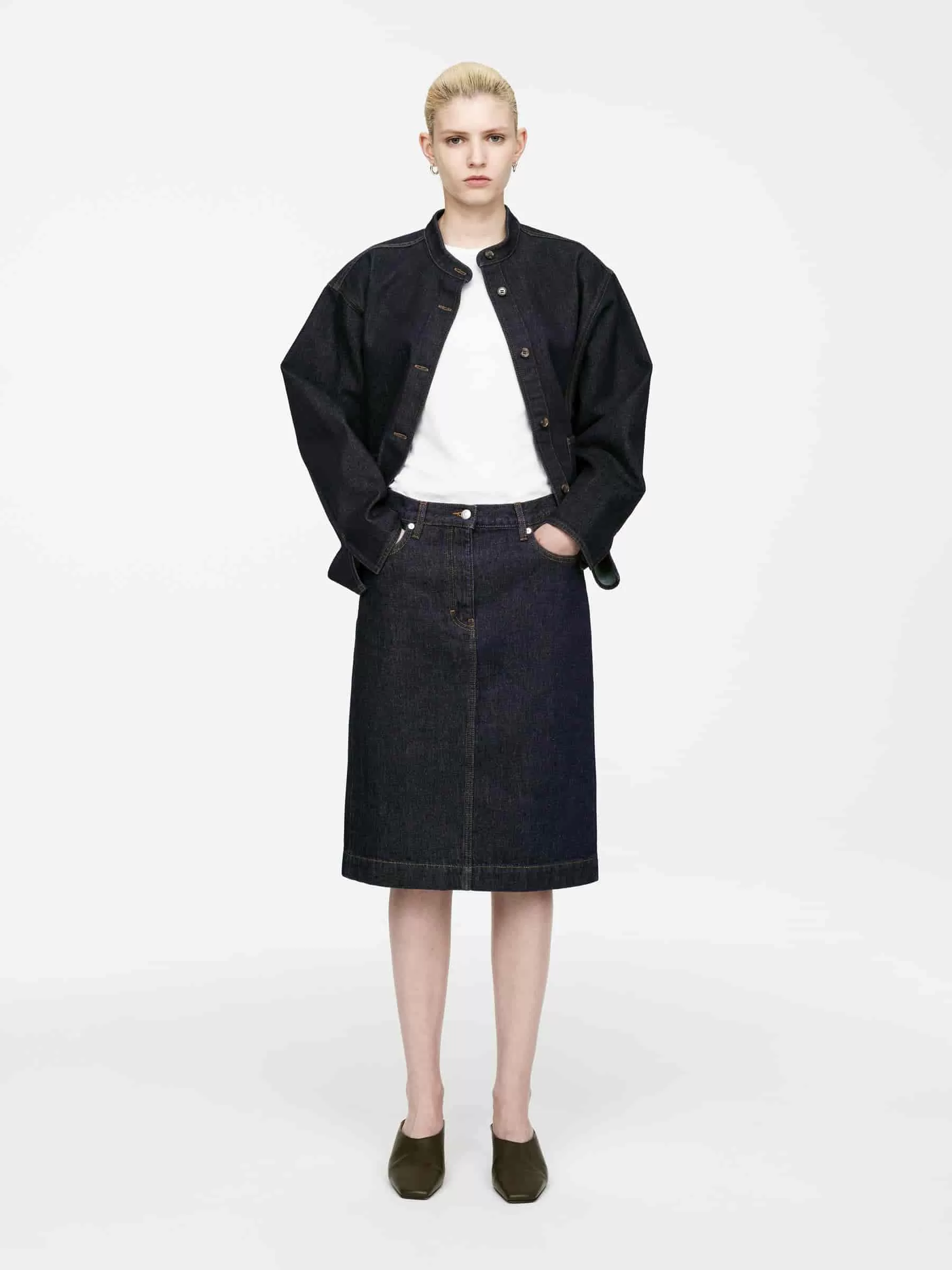 ARKE Damen Midi-Jeansrock Dunkelblau