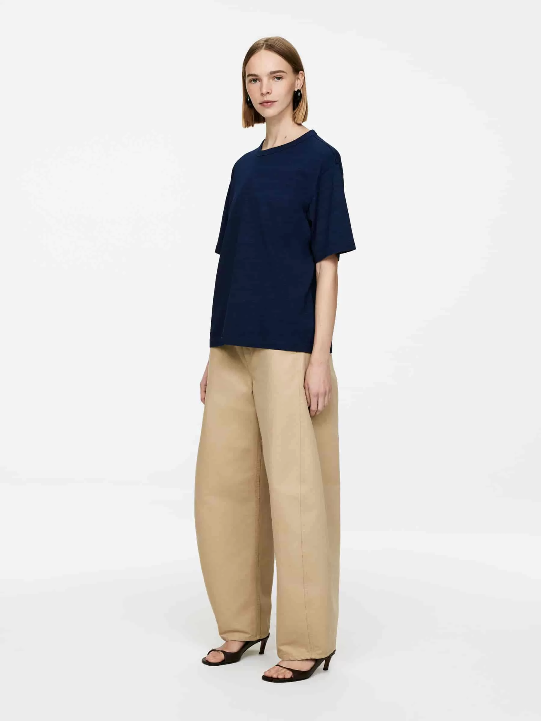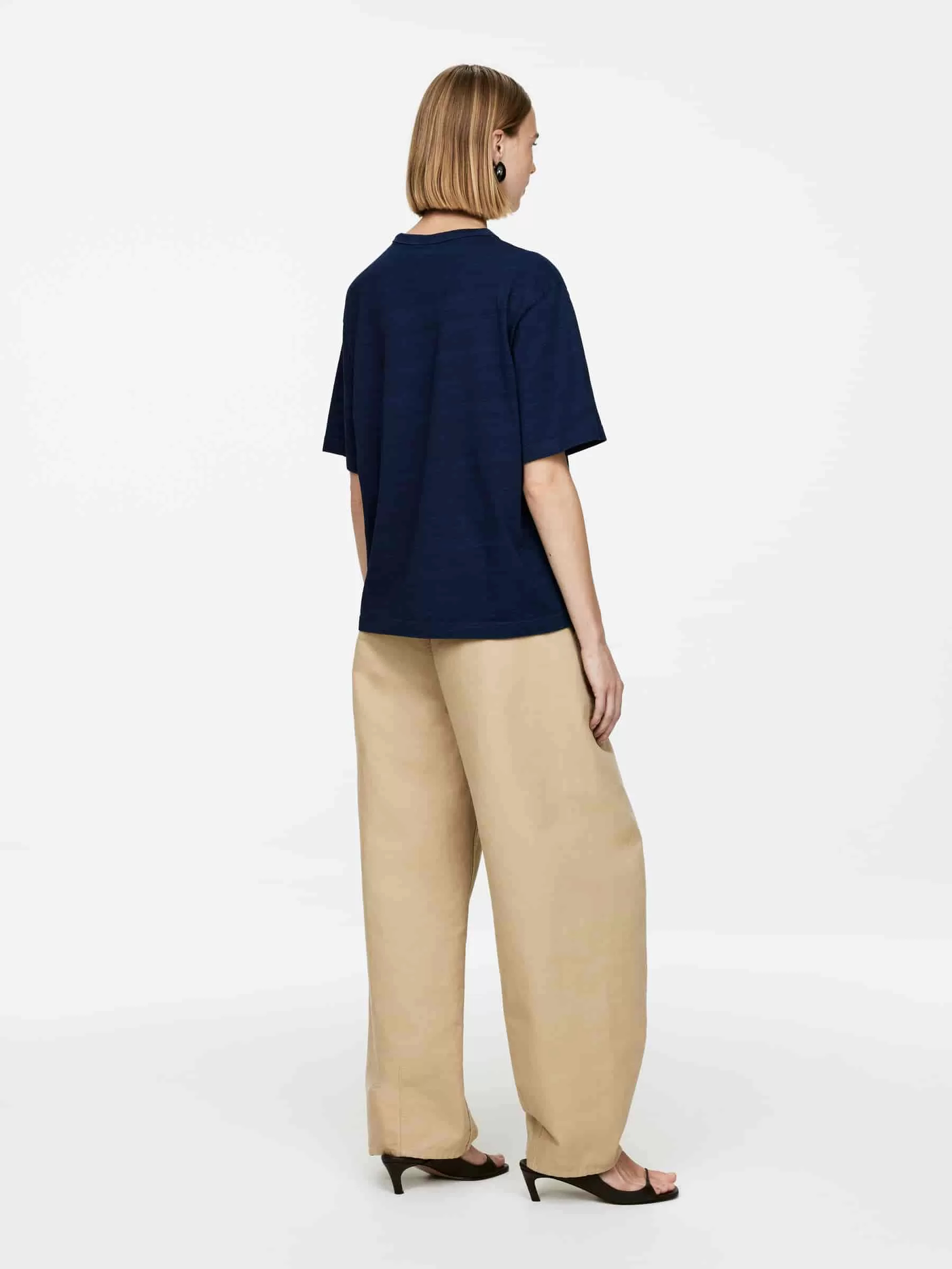 Kurzärmeliges T-Shirt aus mittelschwerer Baumwolle. Ein Rundhalsausschnitt für eine normale Passform.
