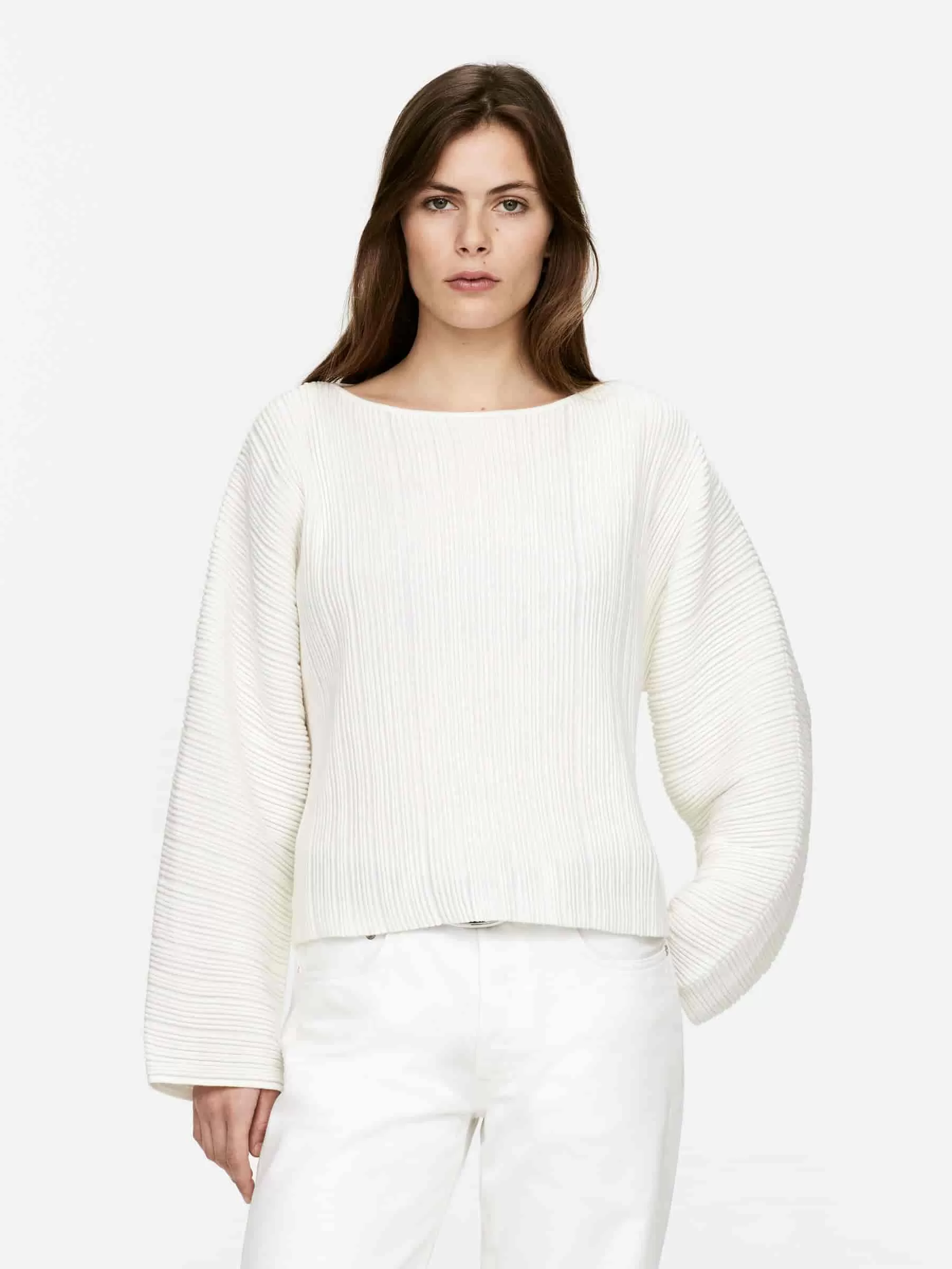 Stricktop aus Baumwolle mit Rippstruktur. Ein locker sitzender Stil mit Bindeband am Hals.
