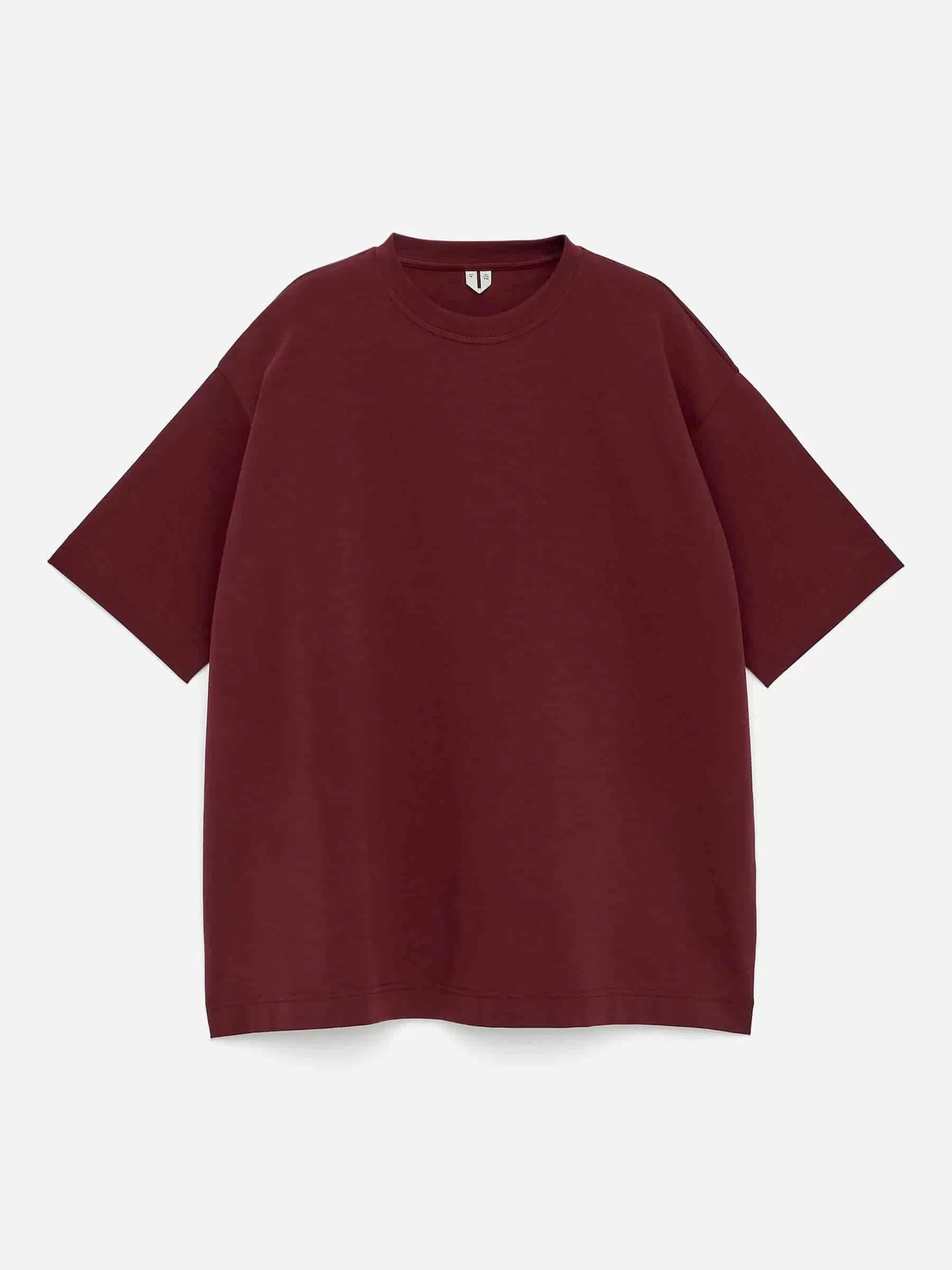 Übergroßes T-Shirt mit überschnittenen Schultern, gefertigt aus schwerer Interlock-Qualität mit einem robusten, aber weichen Griff.