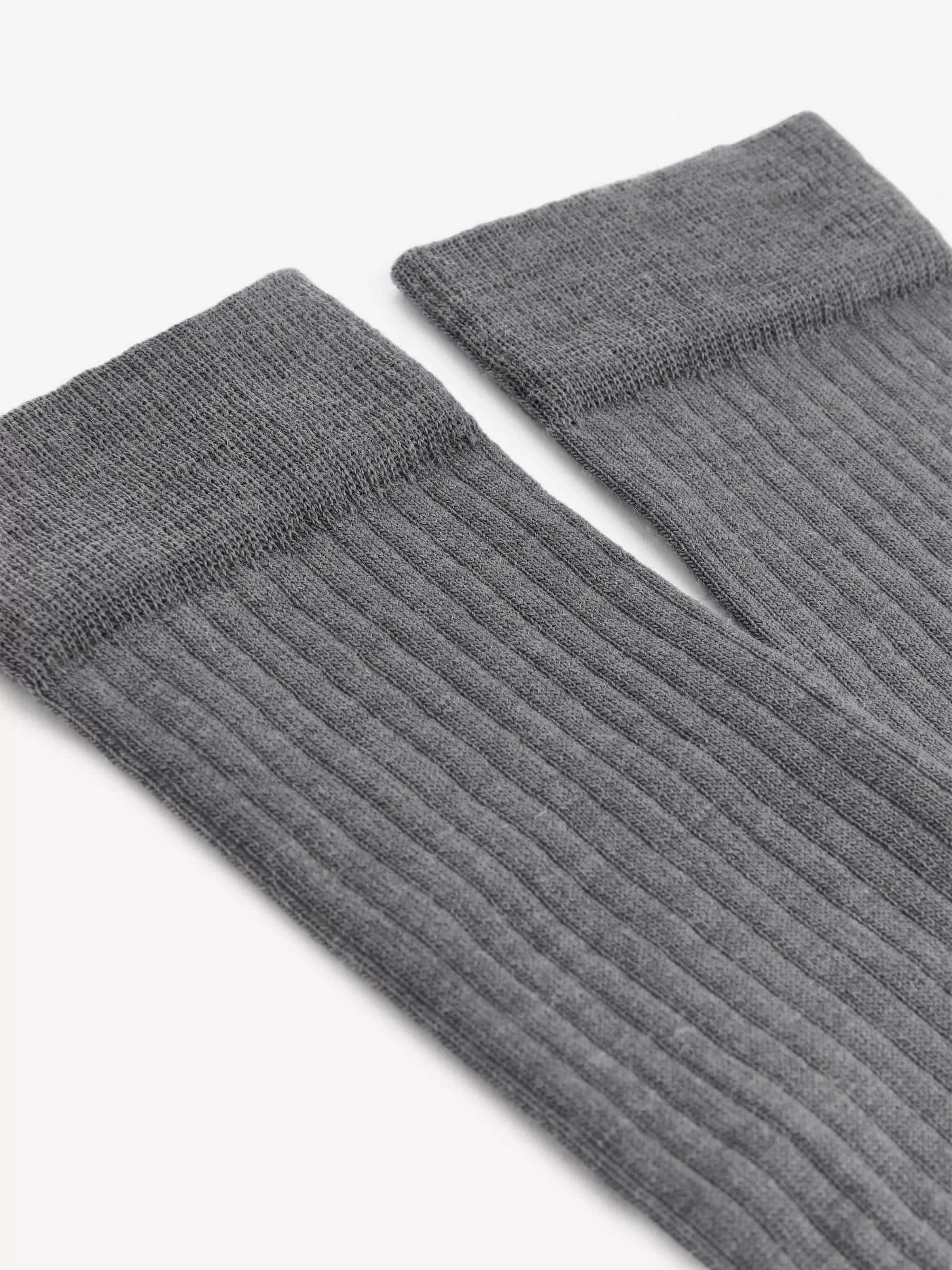 Gerippte Overknee-Socken aus einer Wollmischung. Die Socken enthalten 60 % RWS-Wolle, zertifiziert durch die Kontrollunion 822940. Produkte, die nach dem Responsible Wool Standard (RWS) zertifiziert sind, enthalten Wollfasern von Farmen, die unabhängig nach Tierschutz- und Landbewirtschaftungsanforderungen zertifiziert sind.