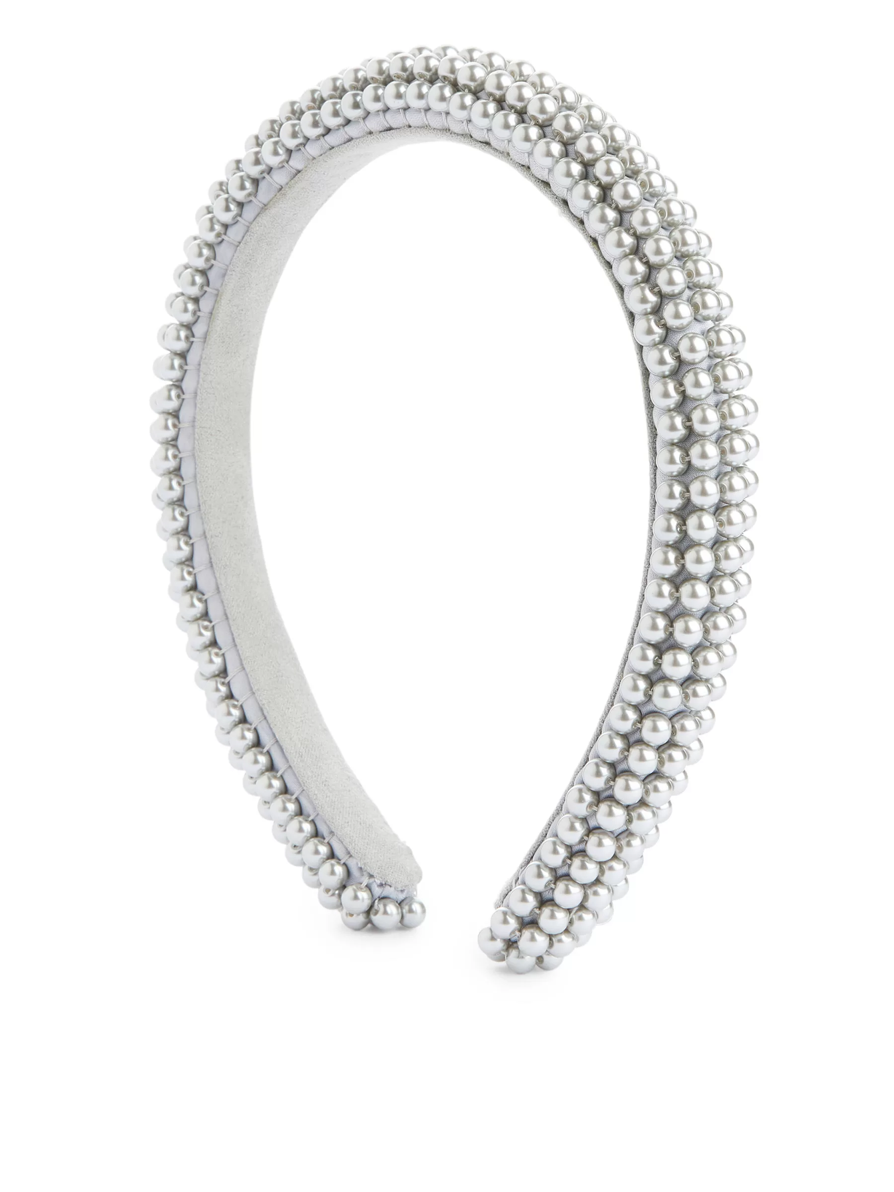 Gepolstertes Alice-Band, bedeckt mit Glasperlen.