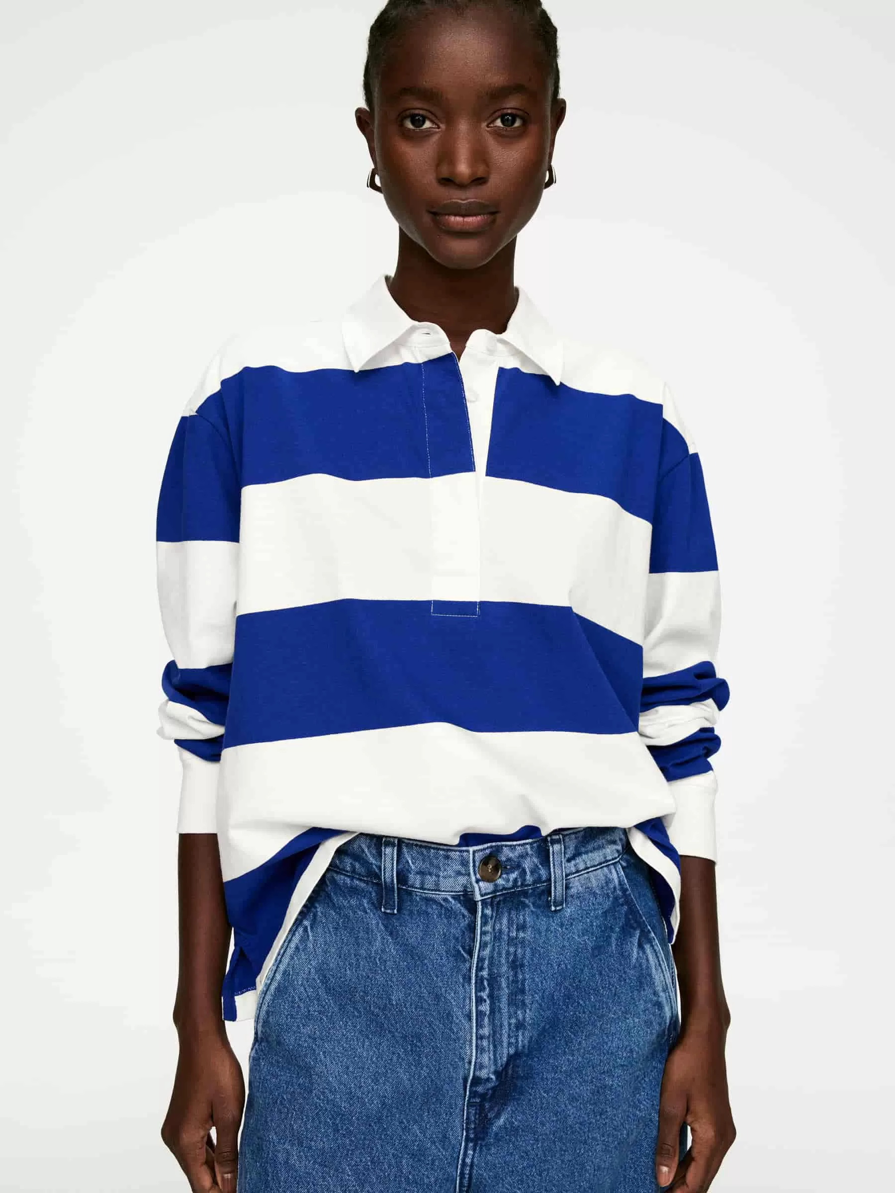 ARKE Damen Poloshirt aus Baumwolle Blau/Gebrochenes Weiß