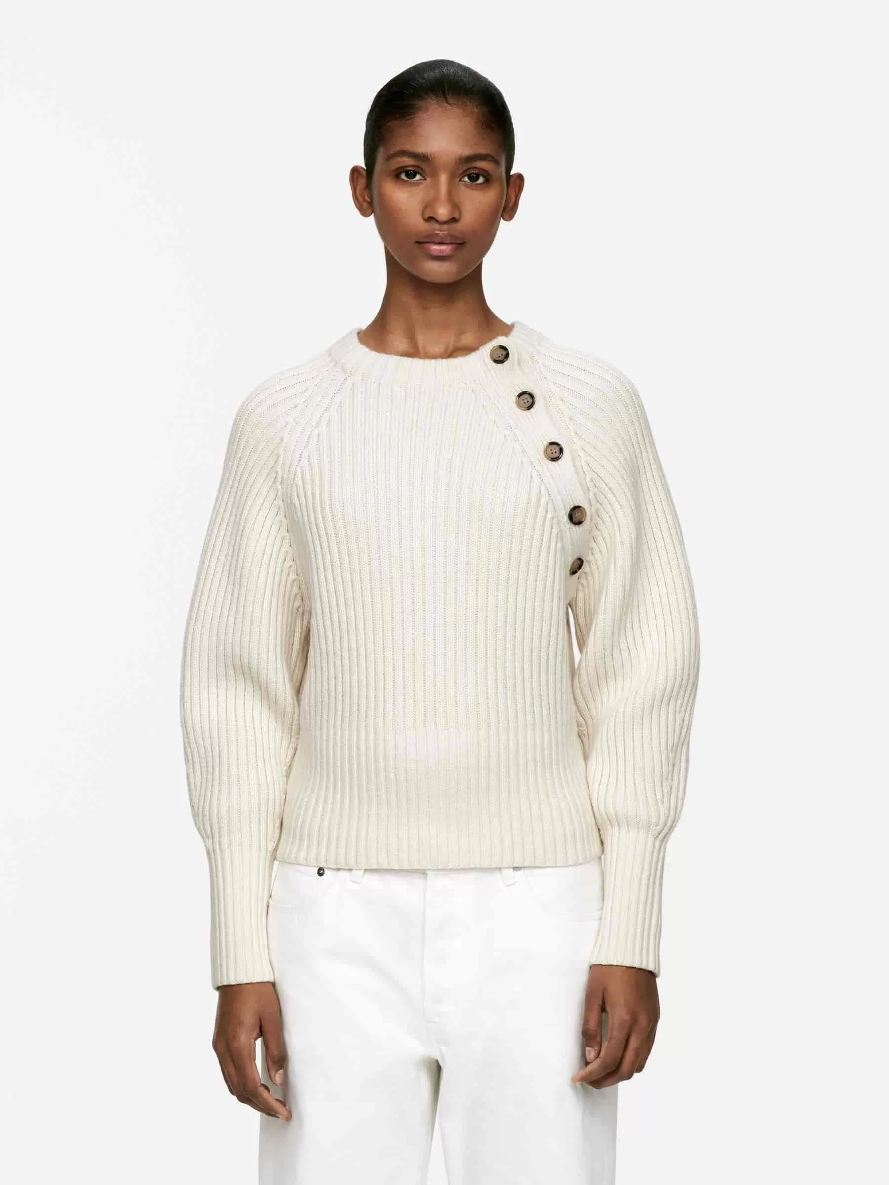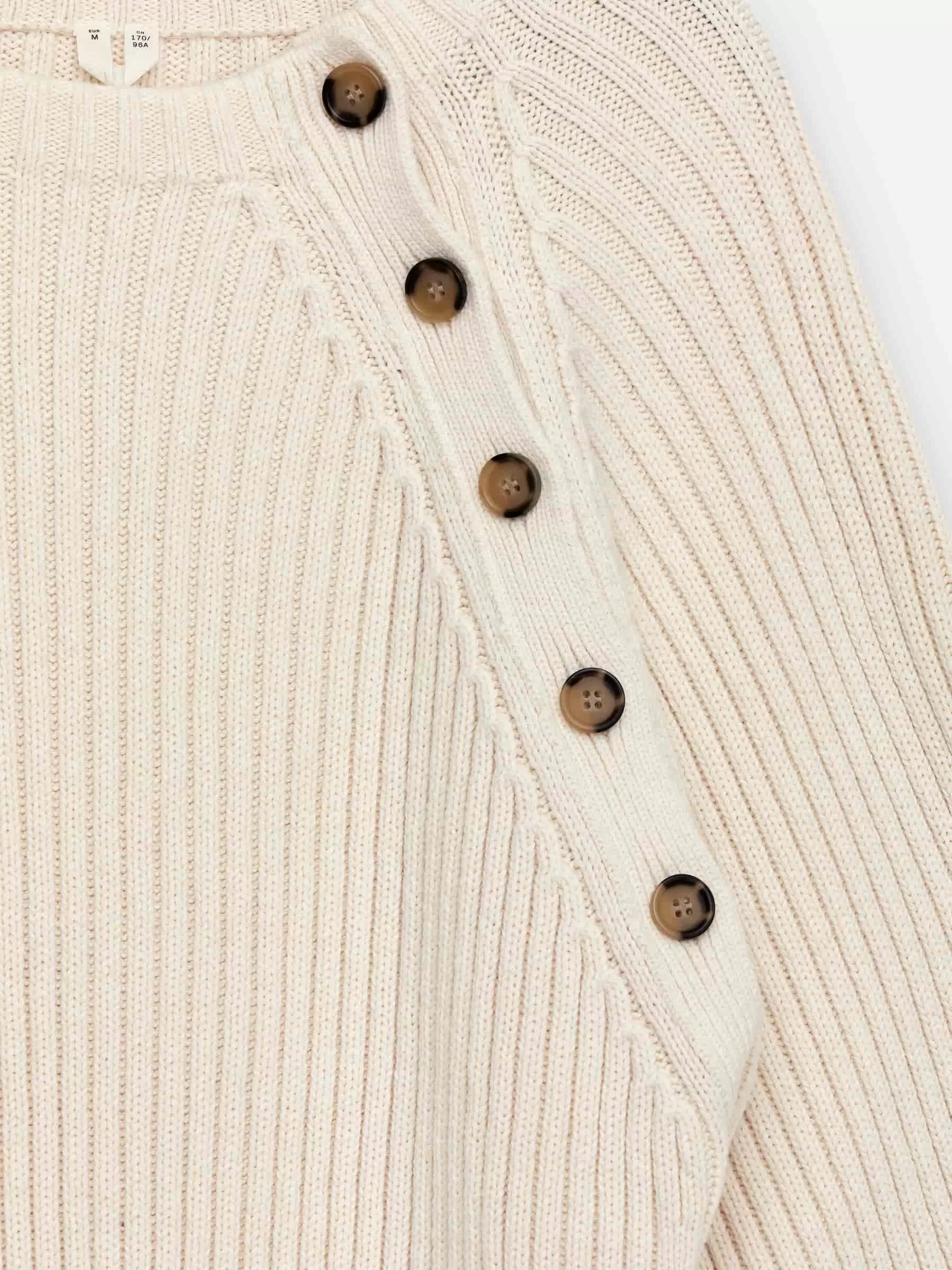 Strickpullover aus einer Mischung aus Baumwolle und Wolle. Mit Raglanärmeln und Knöpfen auf der linken Seite. Der Pullover enthält 25 % RWS-Wolle (TE-00047206). Produkte, die nach dem Responsible Wool Standard (RWS) zertifiziert sind, enthalten Wollfasern von Farmen, die unabhängig nach Tierschutz- und Landbewirtschaftungsanforderungen zertifiziert sind.