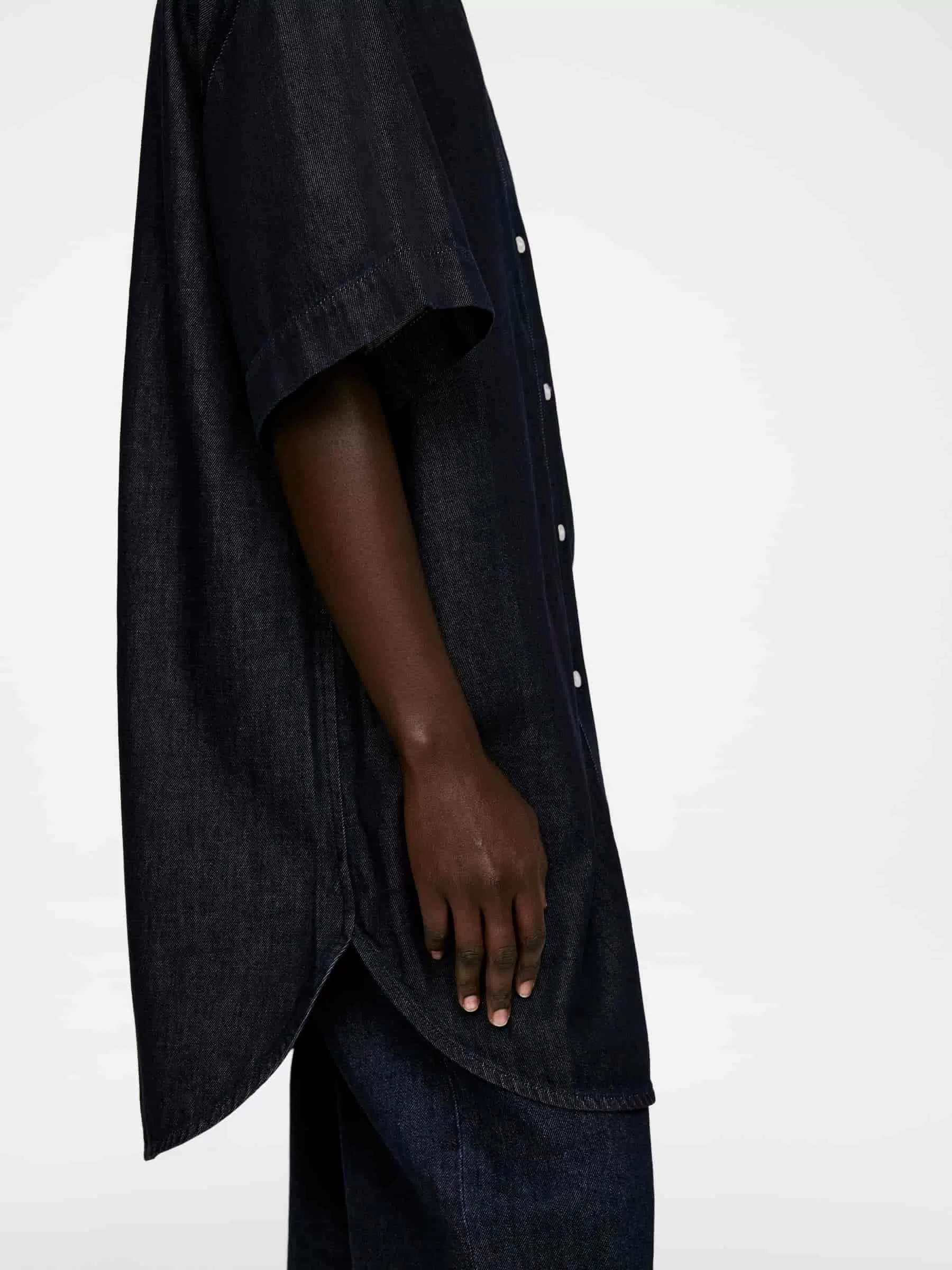ARKE Damen Rohes Jeanshemd Dunkelblau