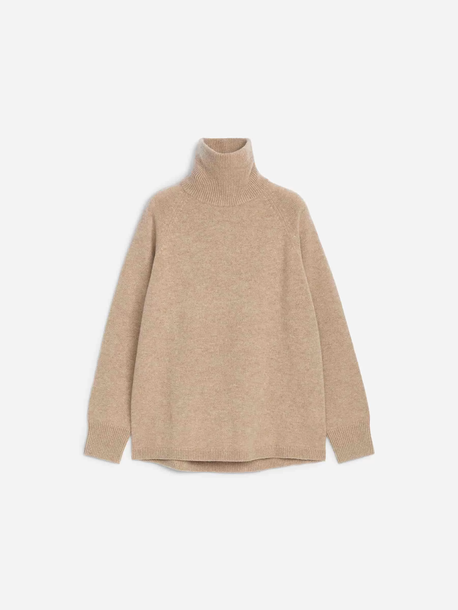 Rollkragenpullover aus Kaschmir und einem Anteil Merinowolle für zusätzliche Festigkeit. Mit Raglanärmeln und gerippten Abschlüssen.