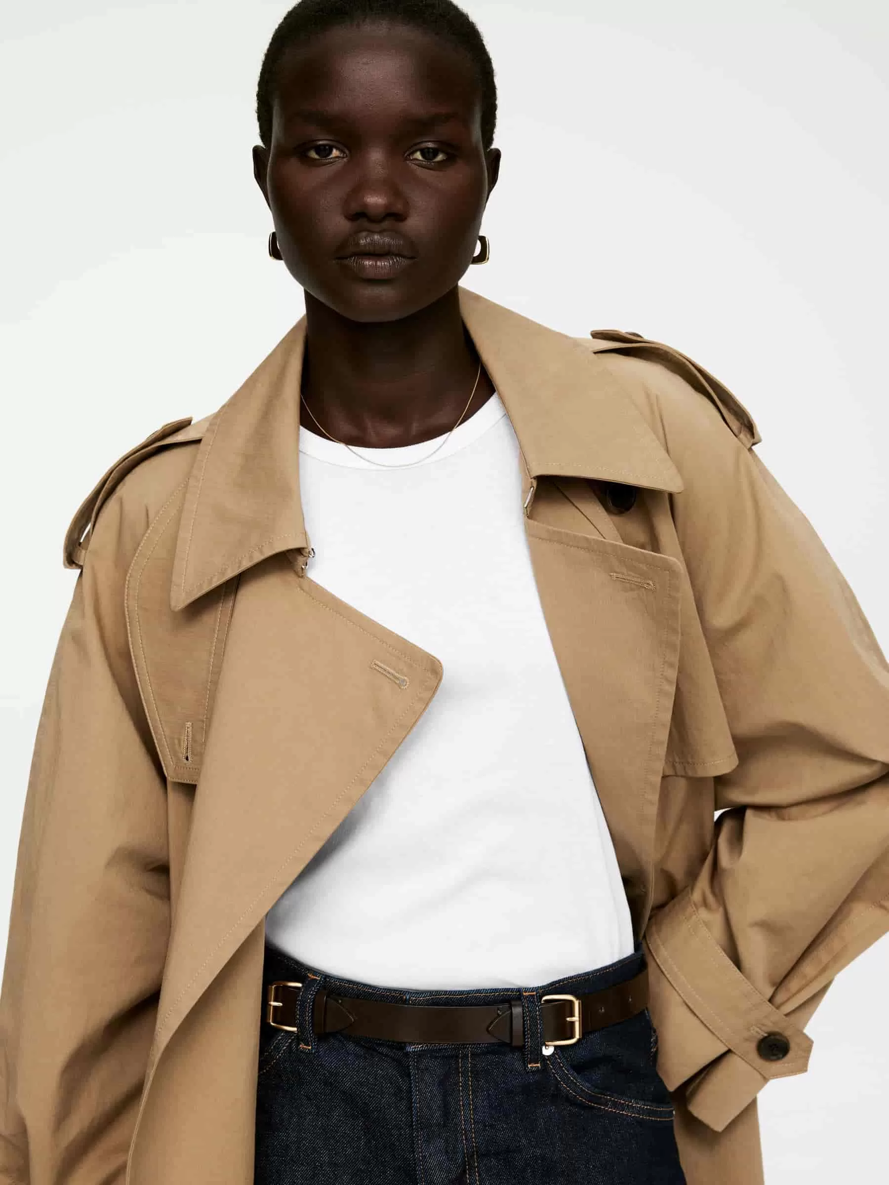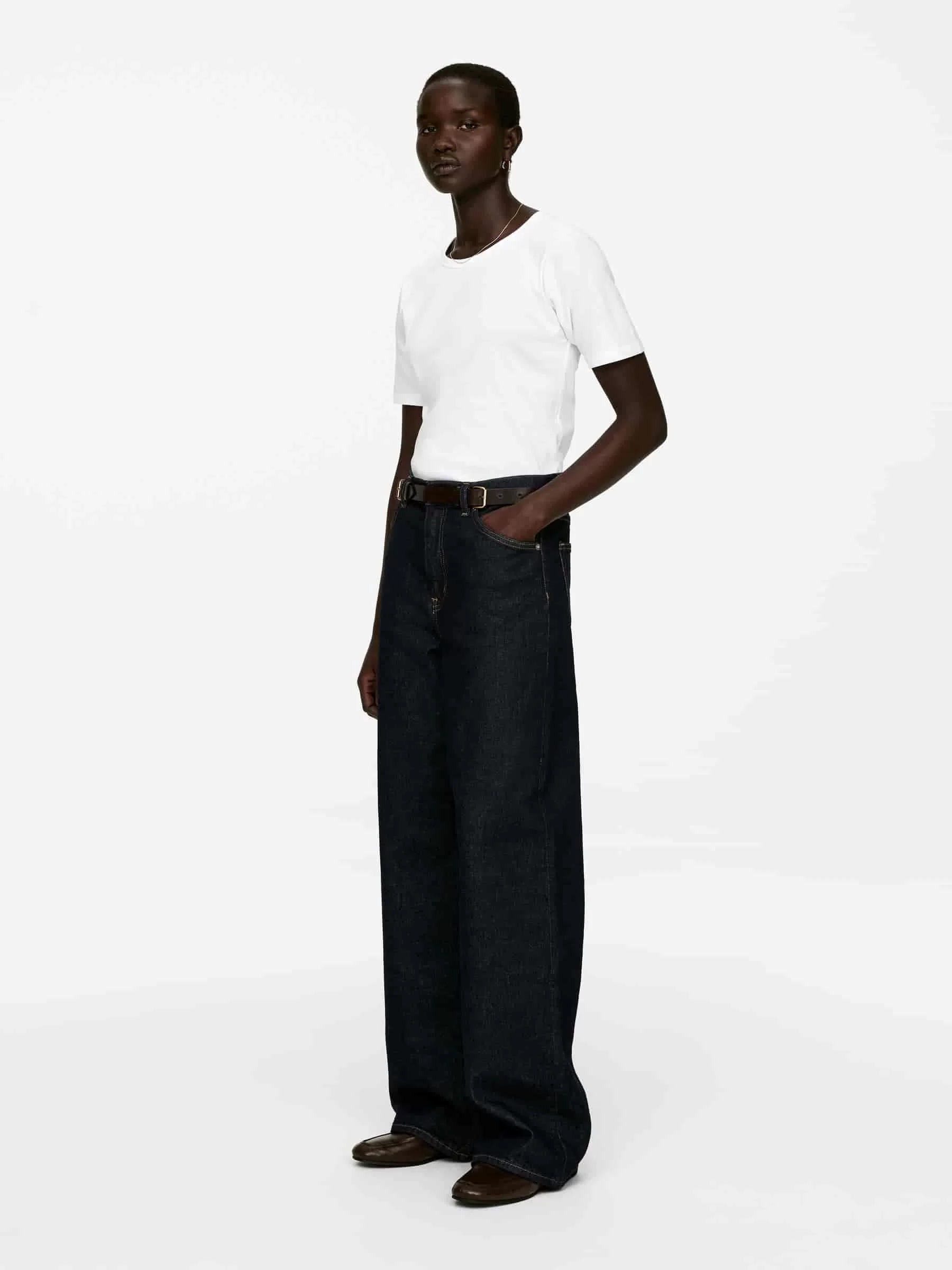 ARKE Damen Schmales Ripp-T-Shirt Weiß